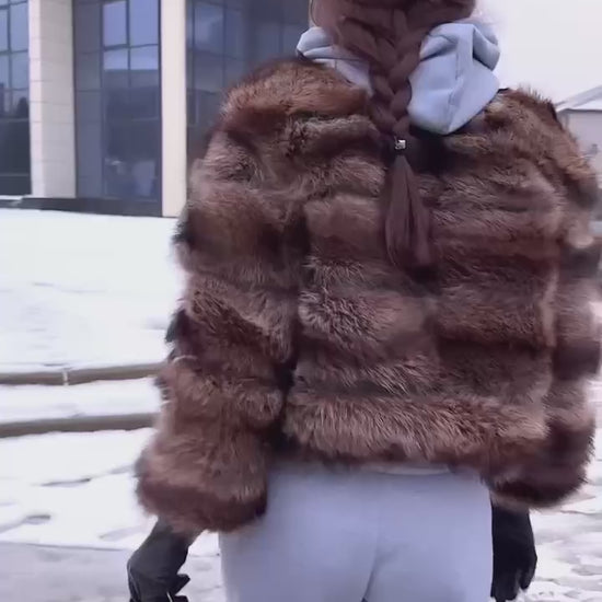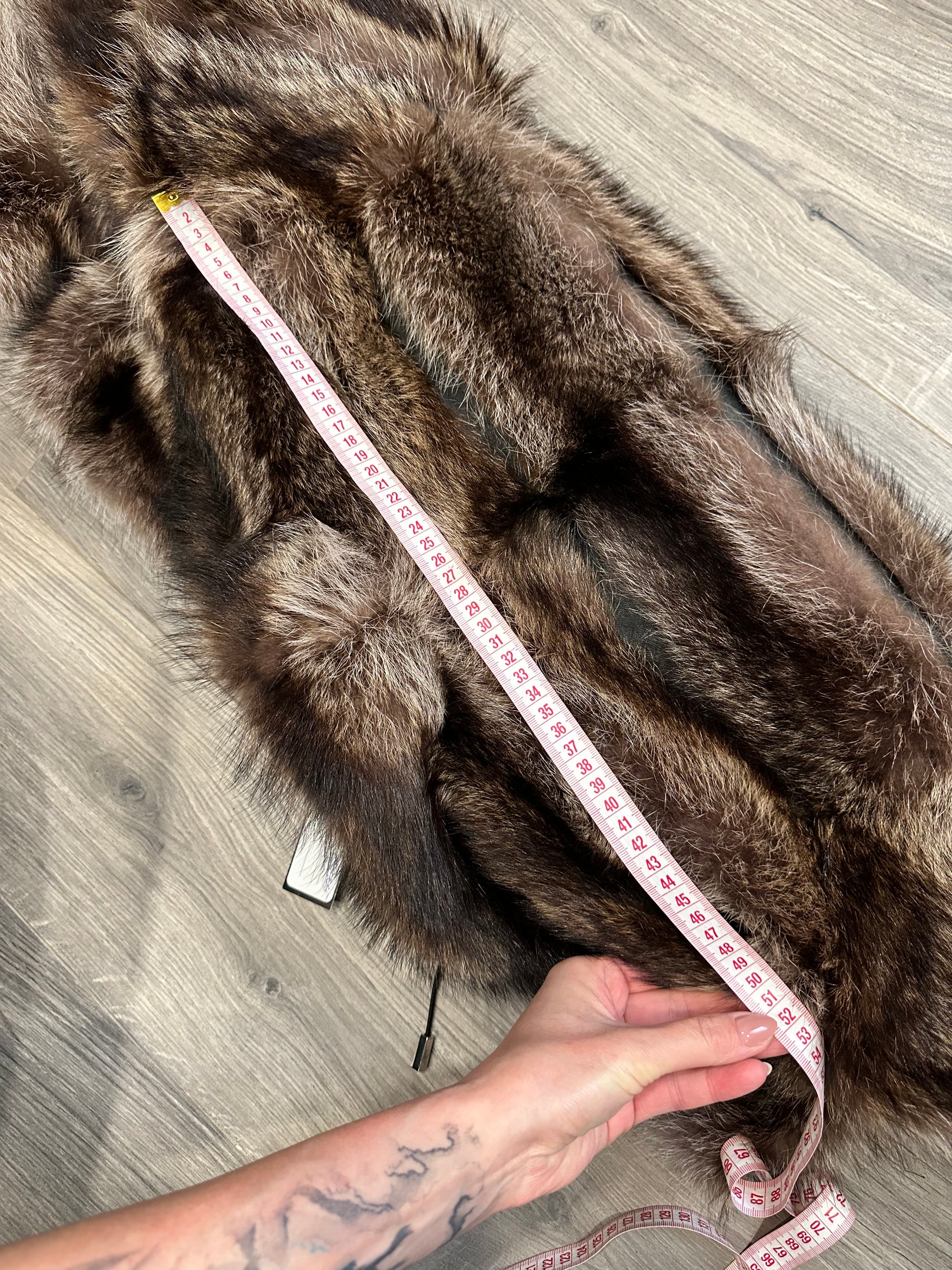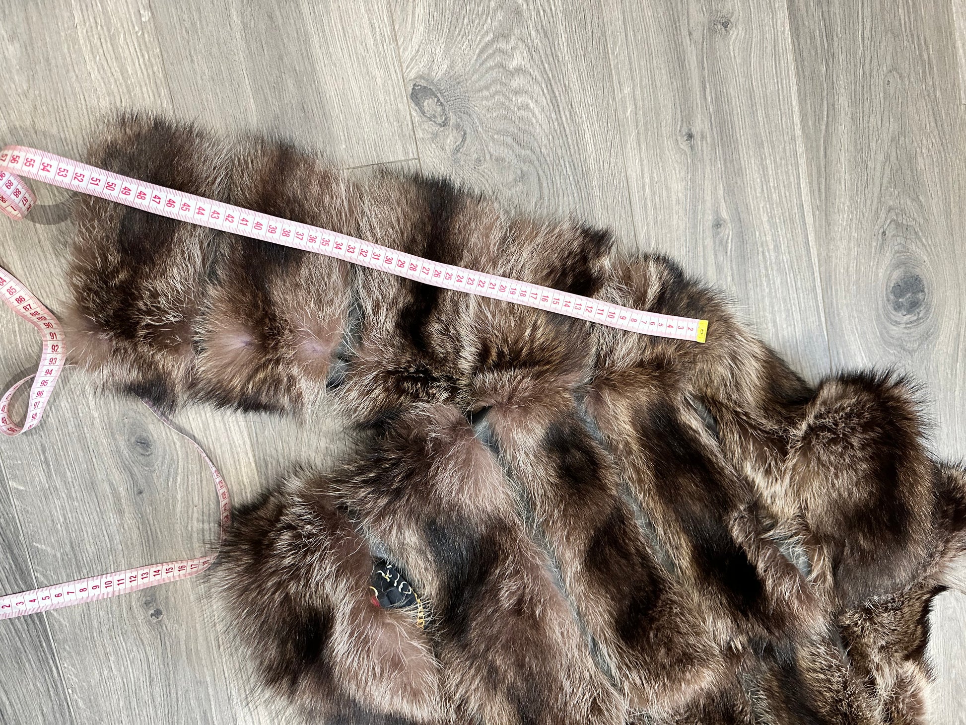 📞 +1 (609) 540-3576SIZE XLWomen's natural raccoon fur coat size XL. Chic short fur coat for every day, warm, comfortable, new collection. Between fur - inserts from genuine black leather. The natural color of the fur, the skins are laid horizontally. Fastens with hooks. There are 2 pockets. wide high fluffy collar, can be worn as a stand-up or turn-down. Natural viscose lining with a beautiful pattern. Ukrainian manufacturer. fur - thick, natural color, shiny, warm.