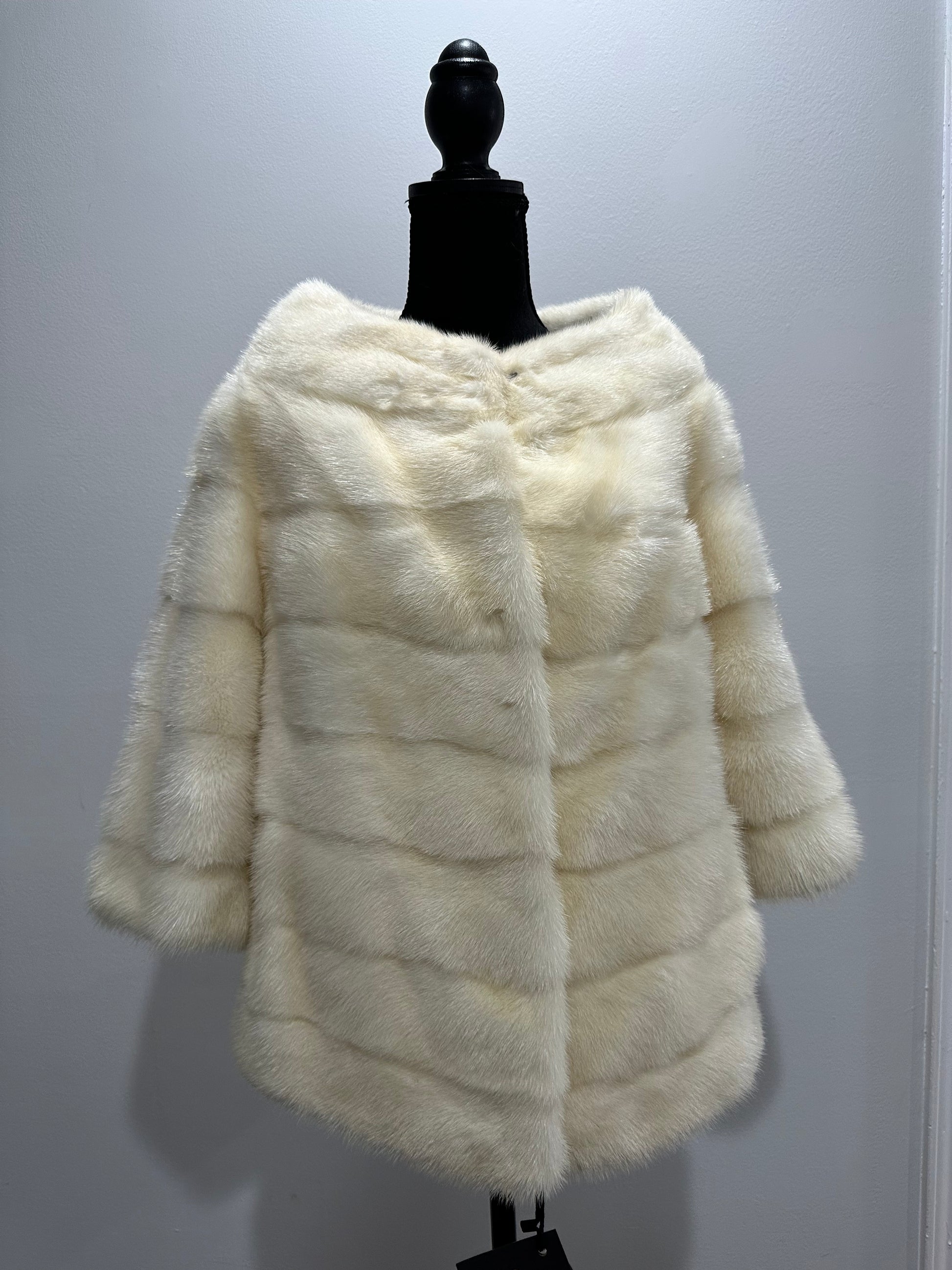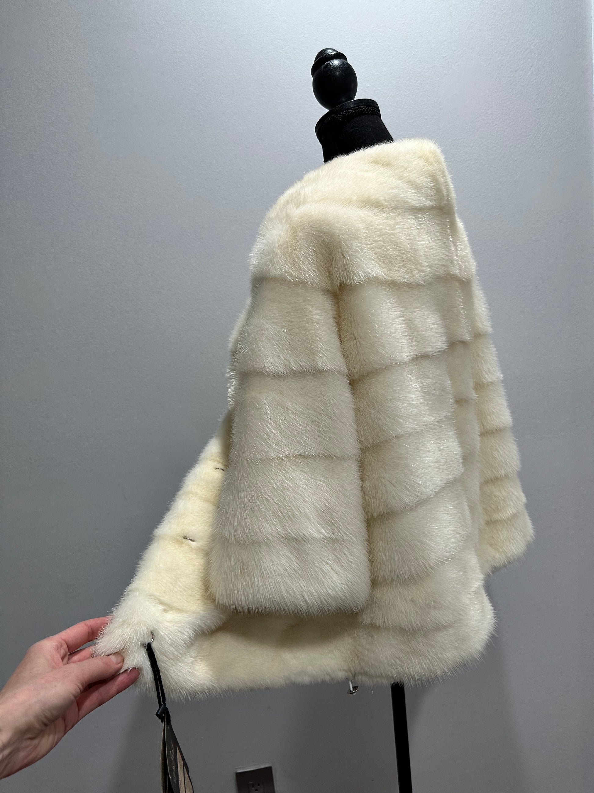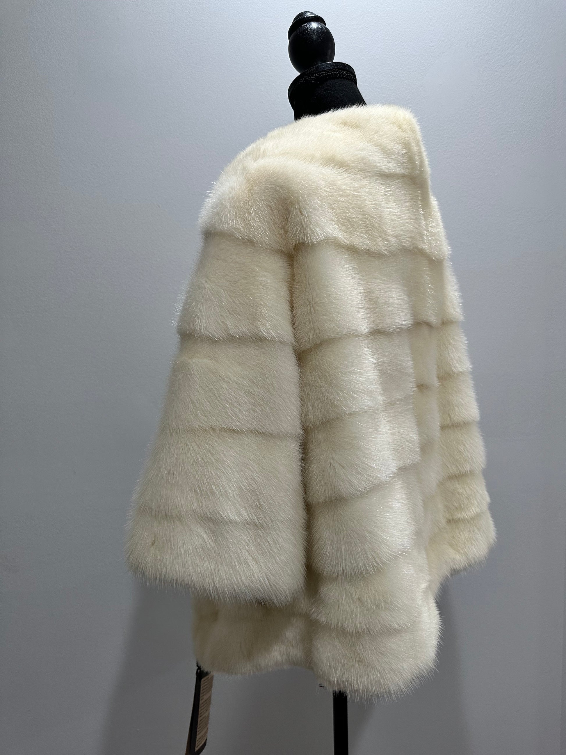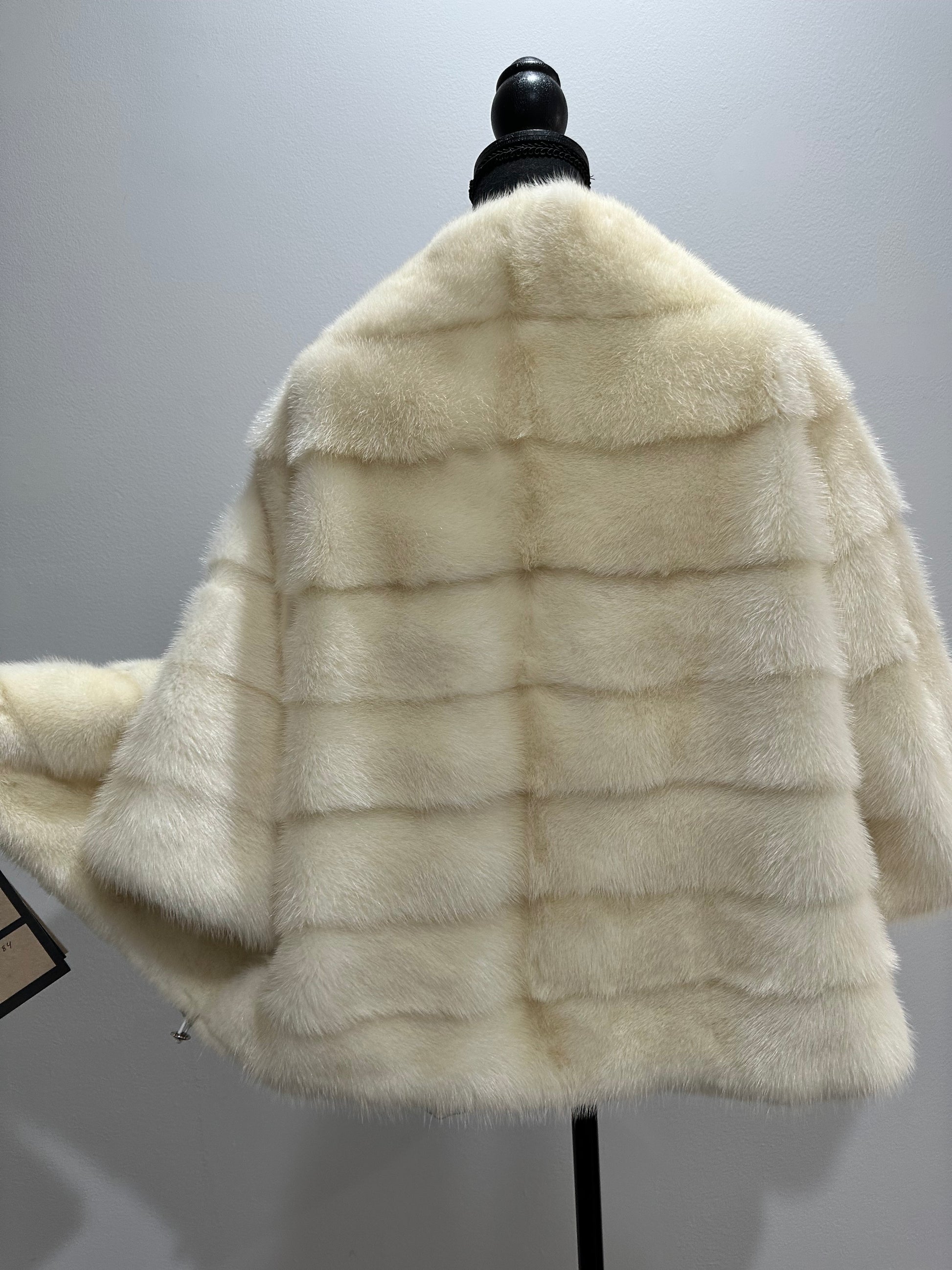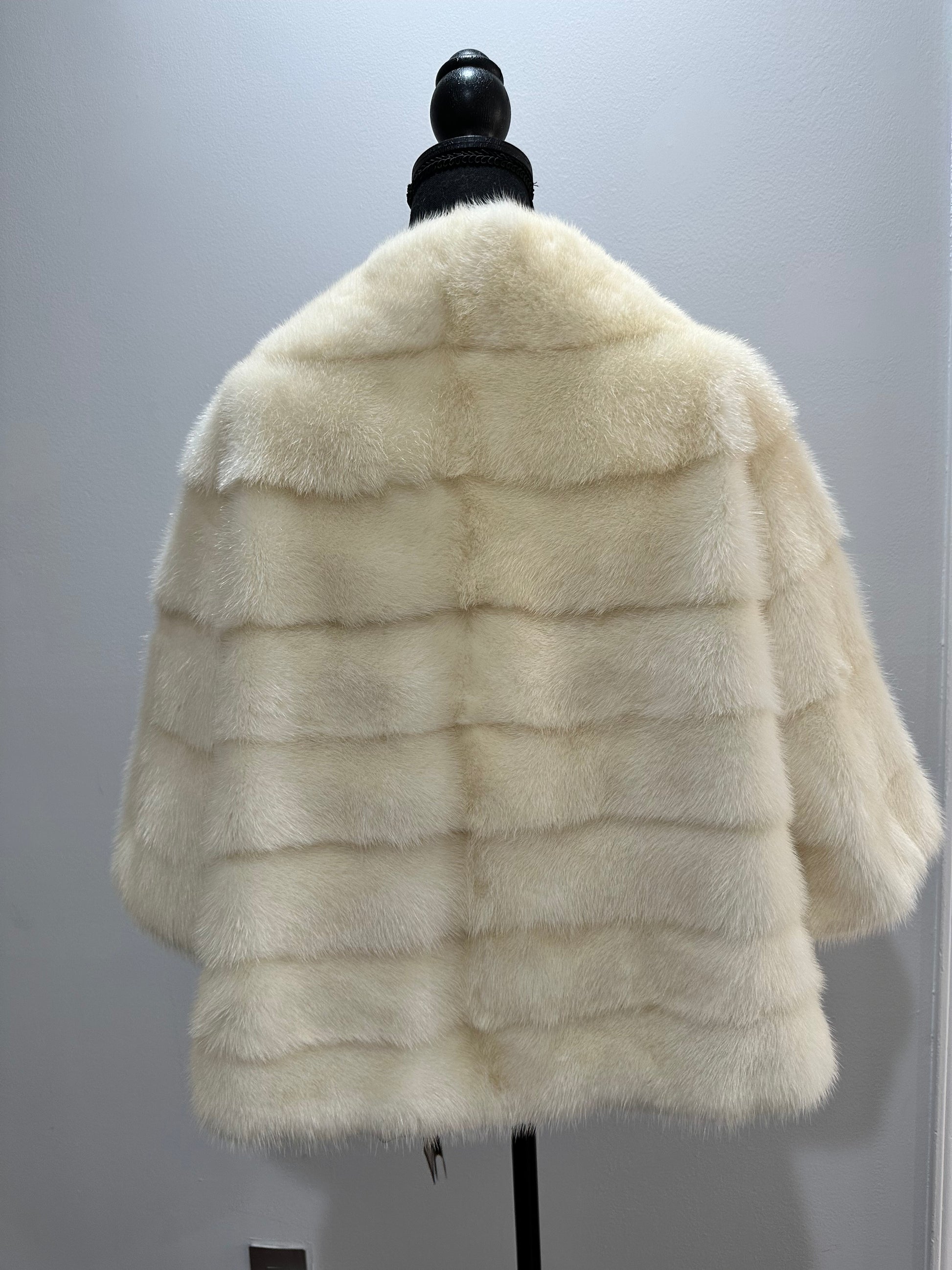 BOMBER MINK REAL FUR WEDDING coat Jacket CREAM color size M women 1201084