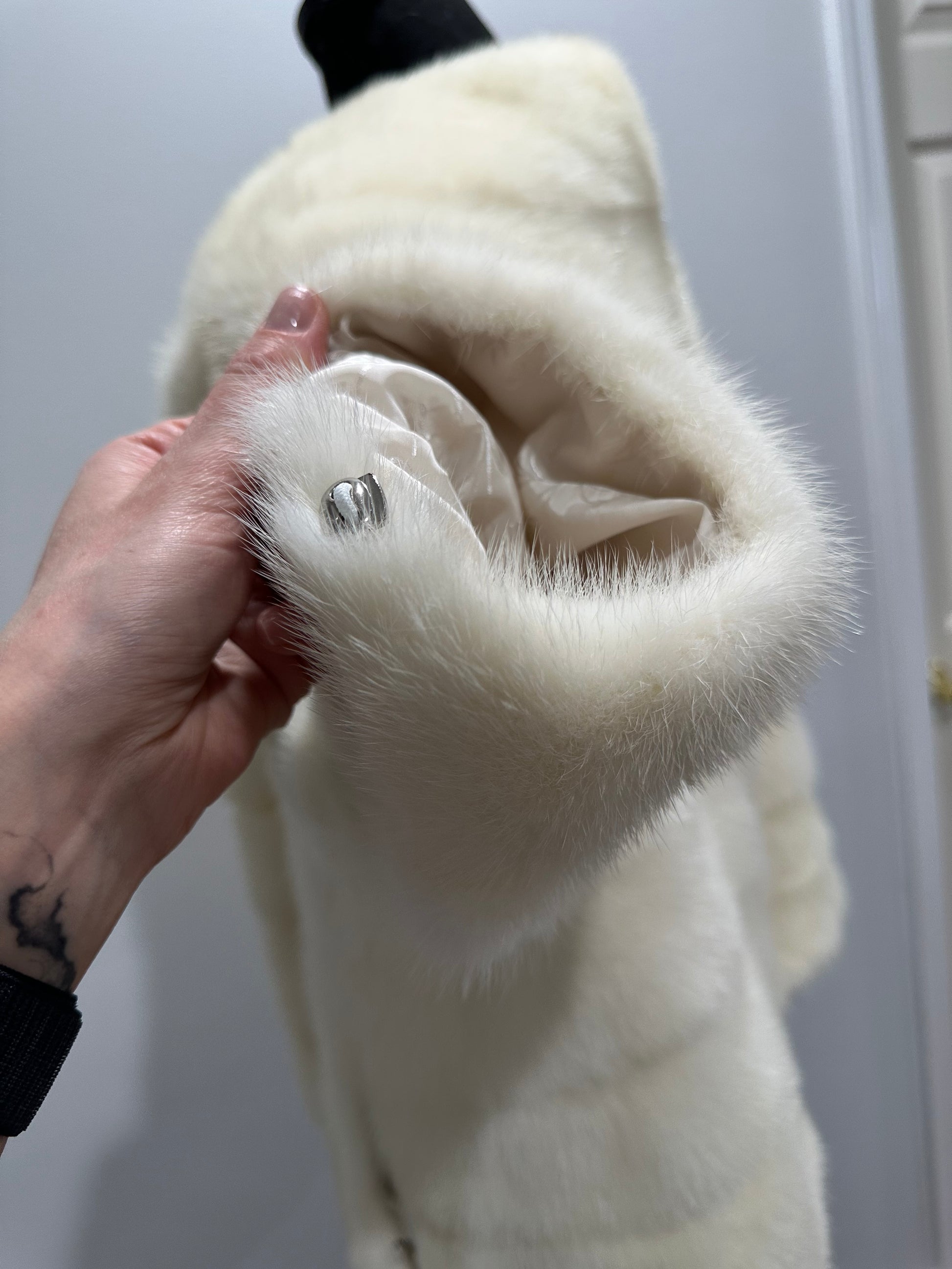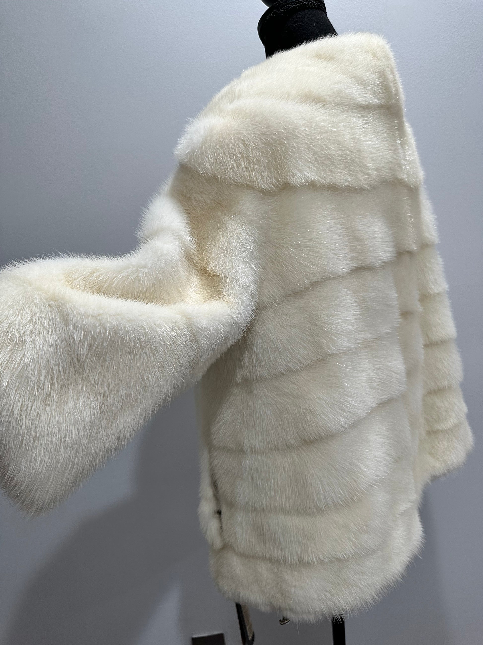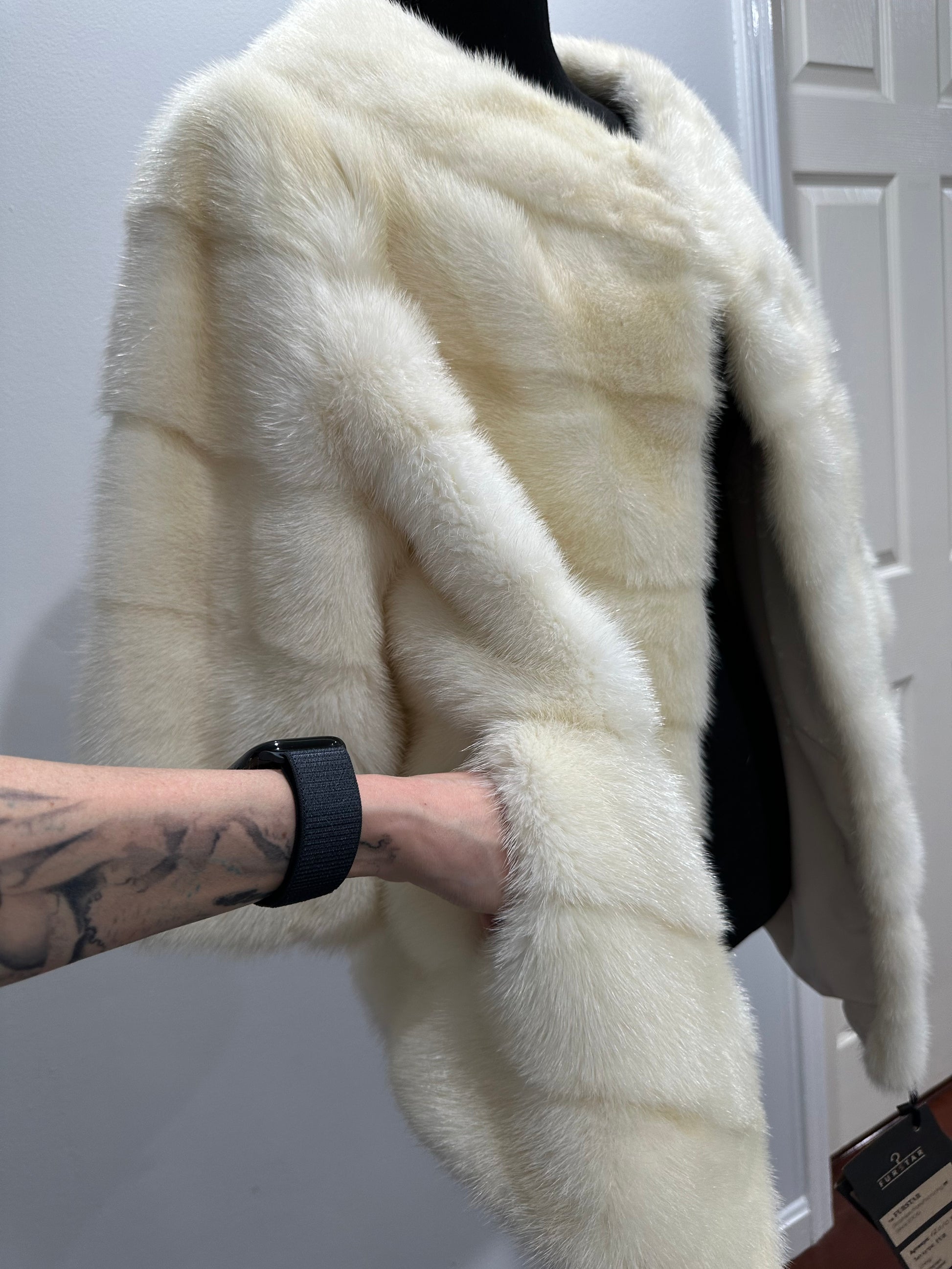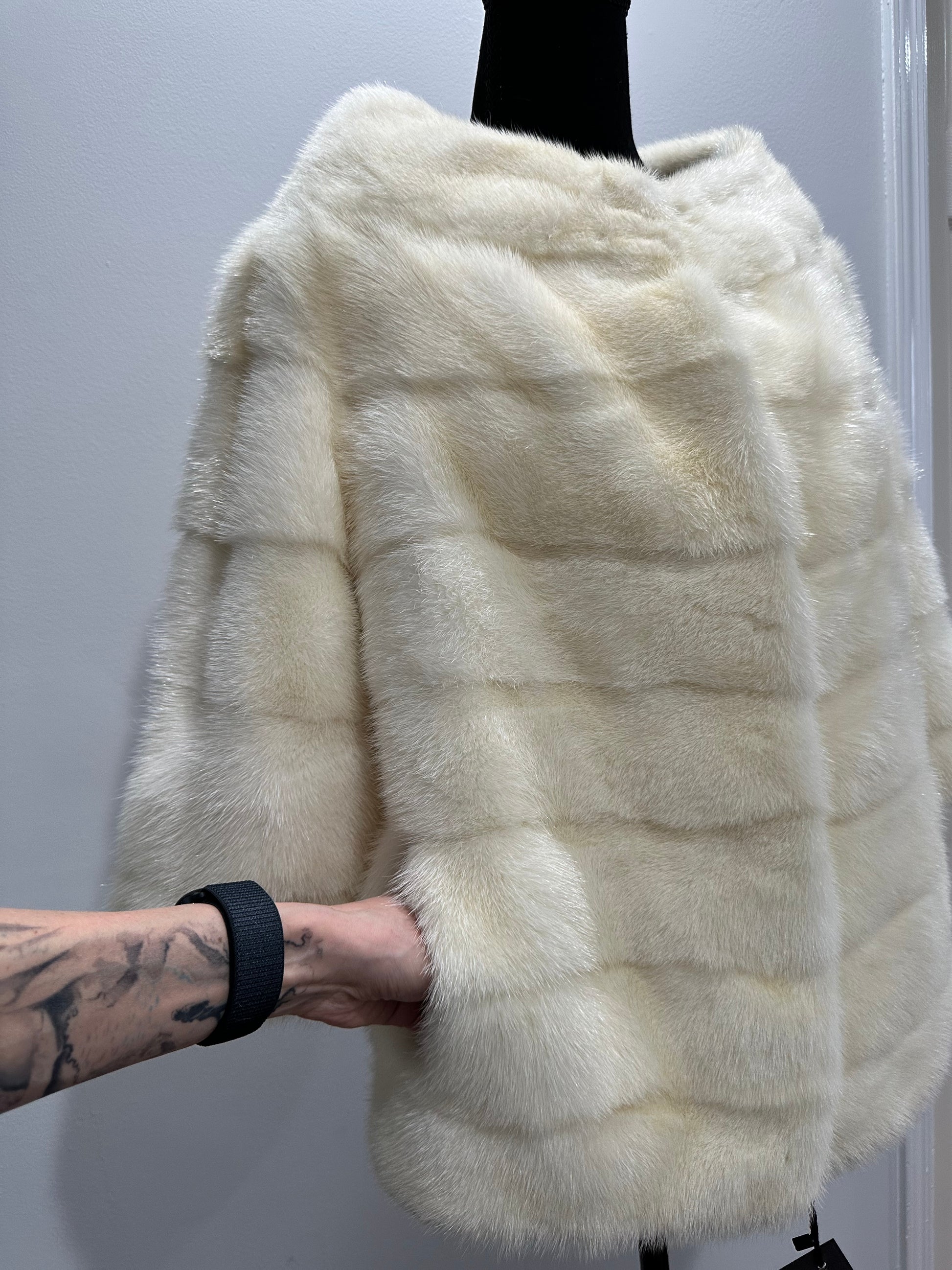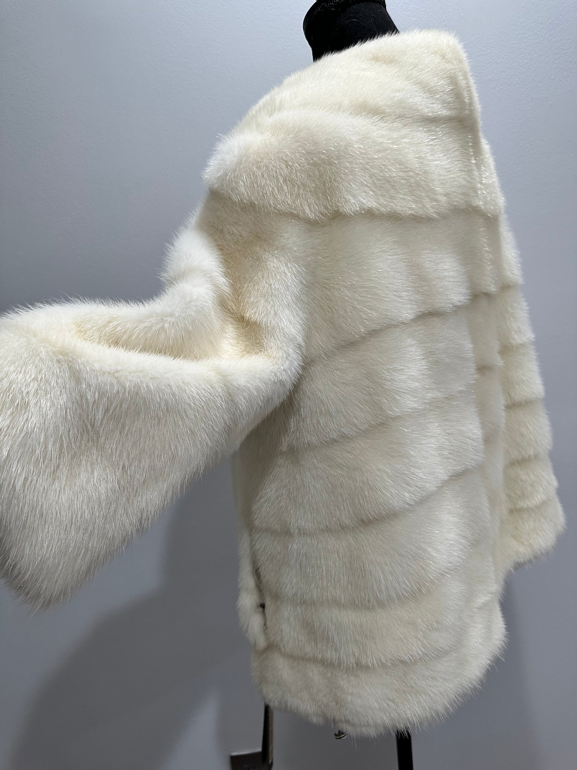 BOMBER MINK REAL FUR WEDDING coat Jacket CREAM color size M women 1201084