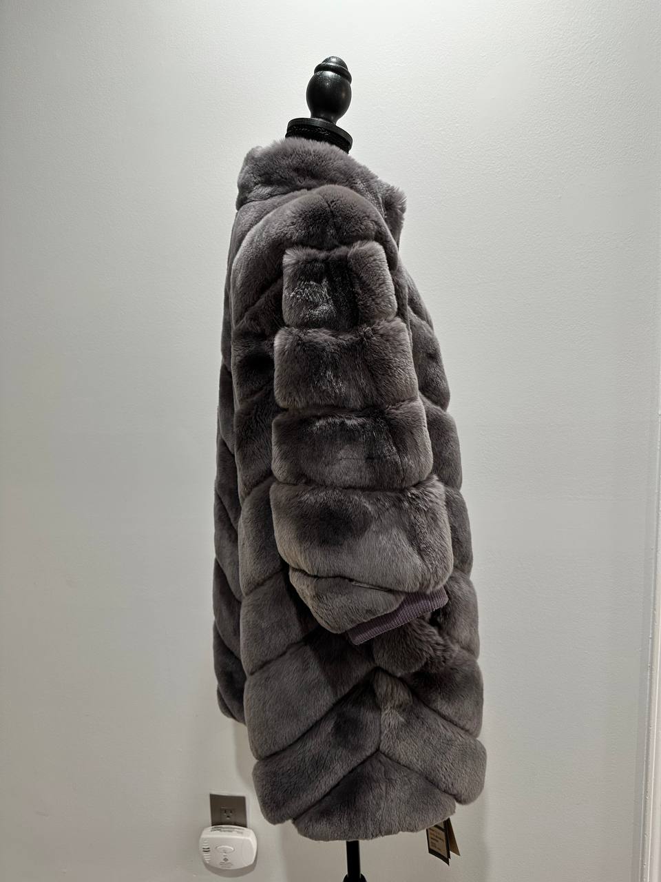 chinchilla rex rabbit GENUINE REAL FUR coat Jacket ONE SIZE size women 1201115