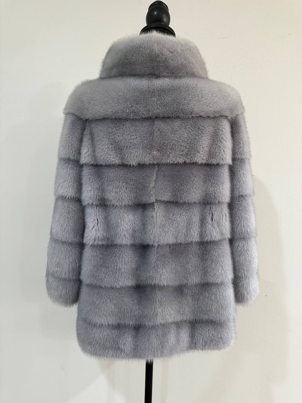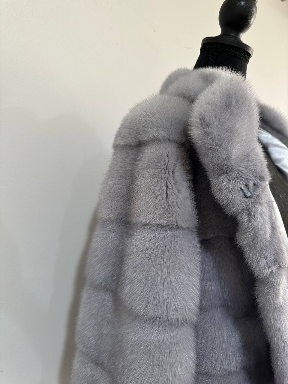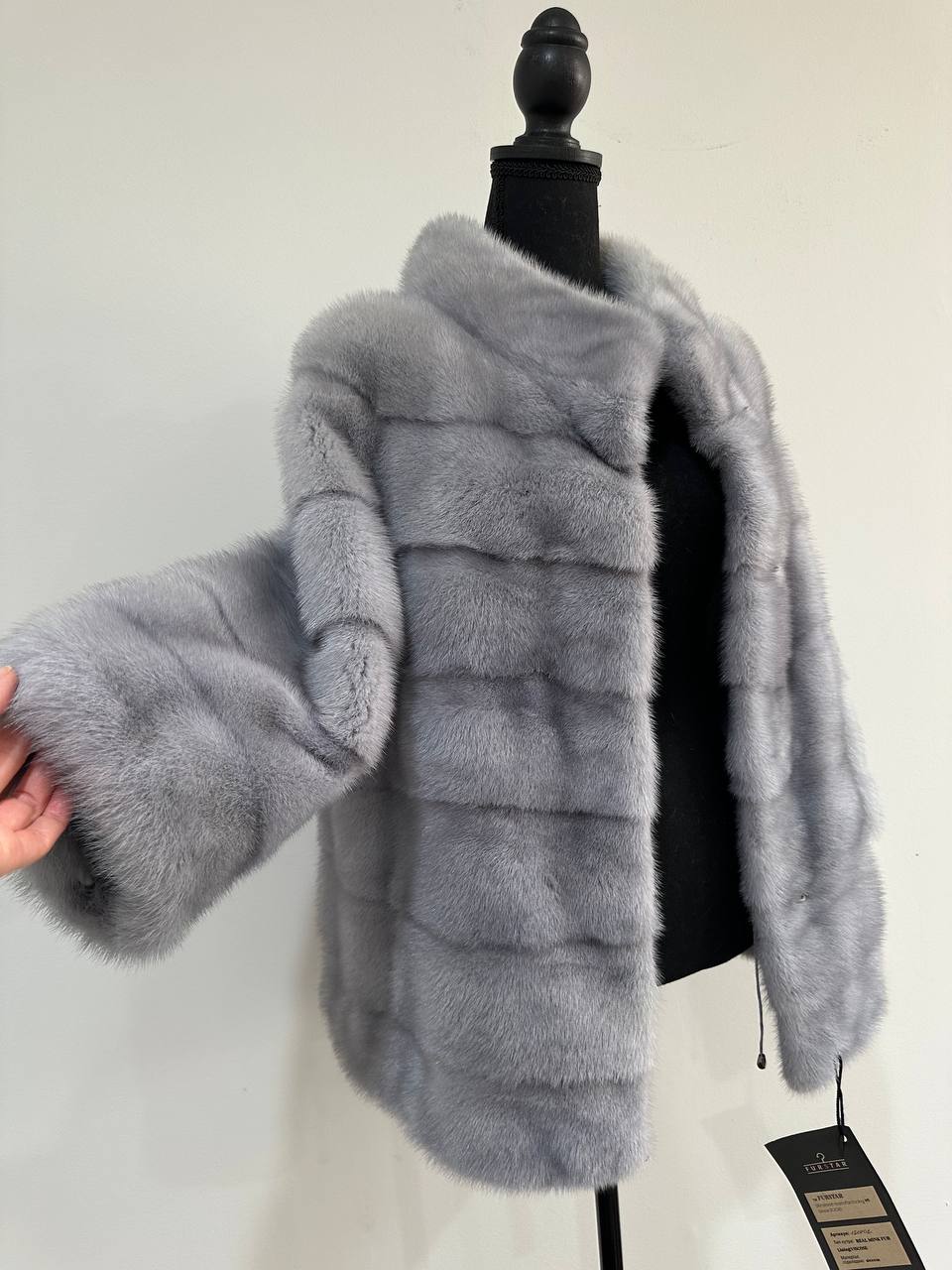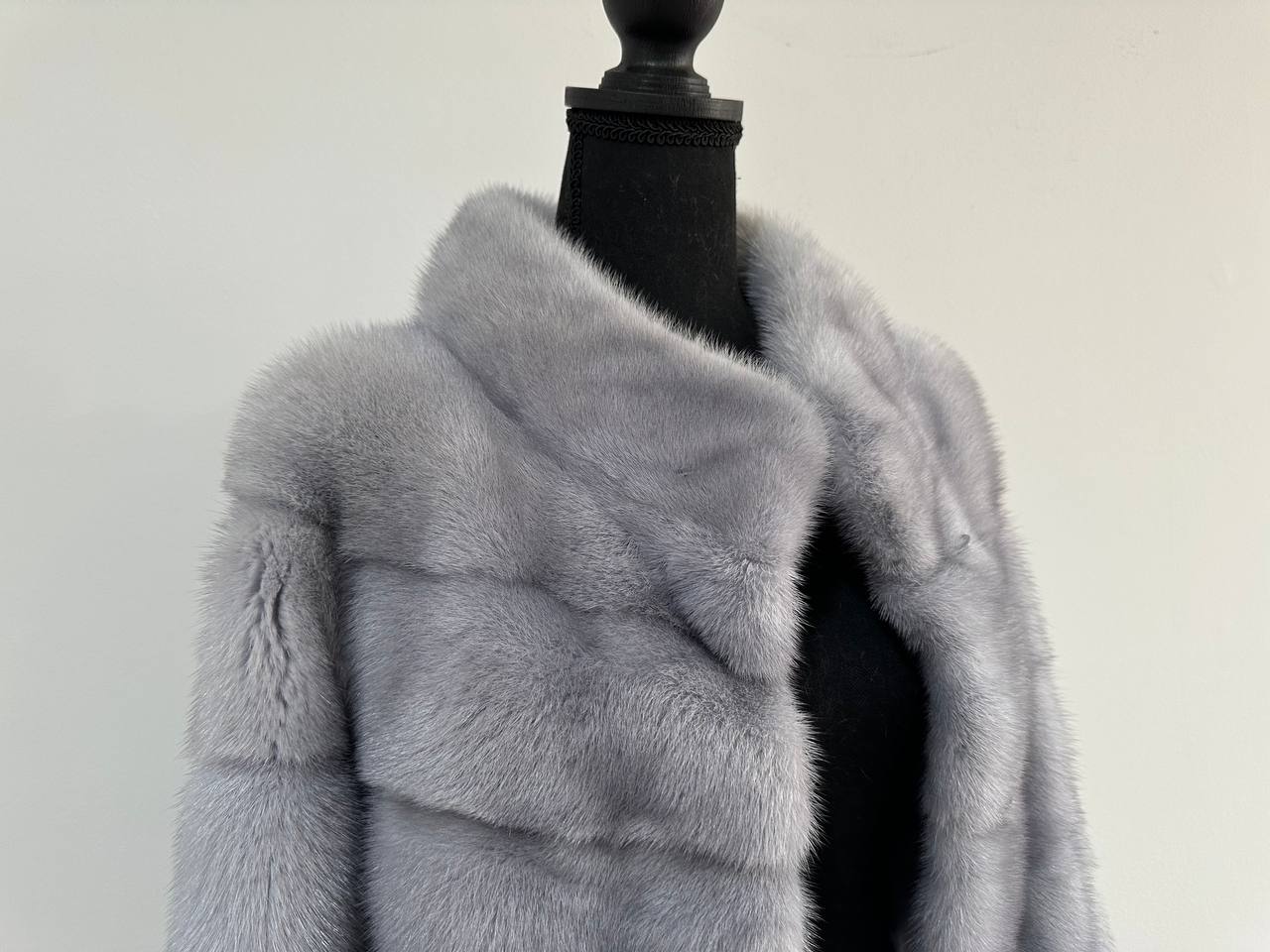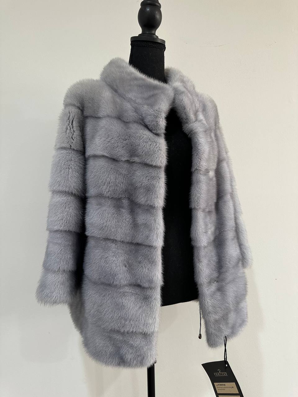 Women's mink coat Finnish mink natural color gray. The queen among minks is the Finnish mink - the thickest fur, downy, shiny, solid plates laid horizontally. The model is straight, fitted with an internal drawstring at the waist. Stand up collar. There are 2 pockets. Manufacturer - Ukrainian FURSTAR BRAND. The mink color is gray with darkened backs, one of the rarest shades. Viscose lining, sewn hem (handmade). Fastens with hooks.