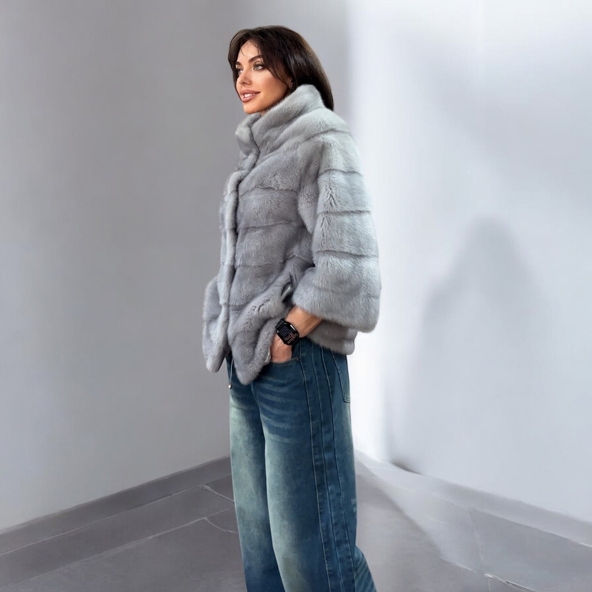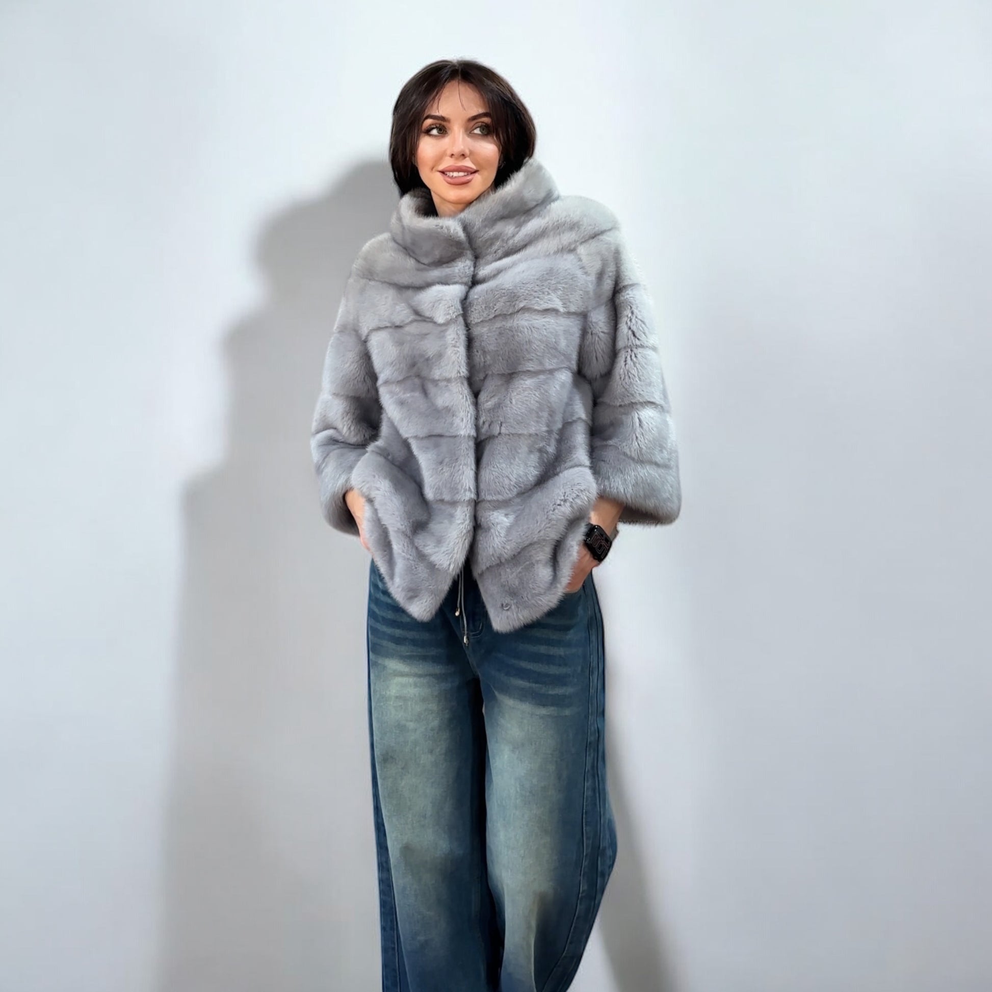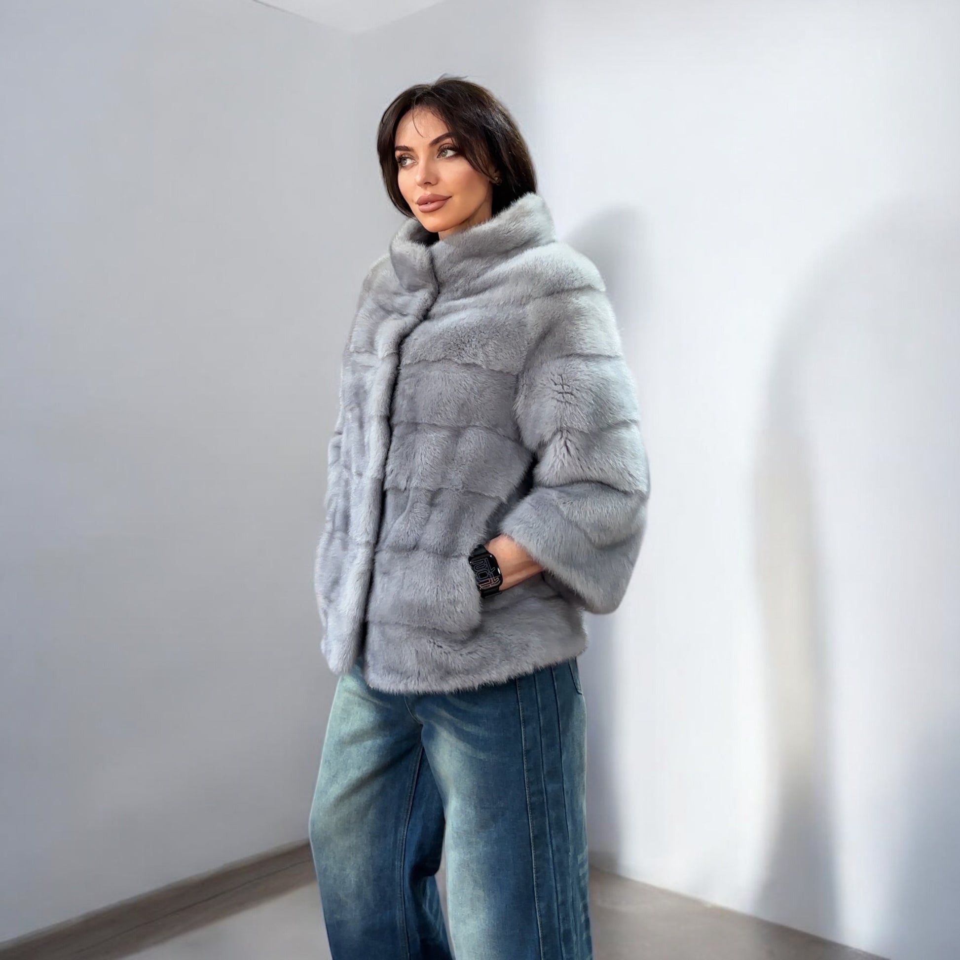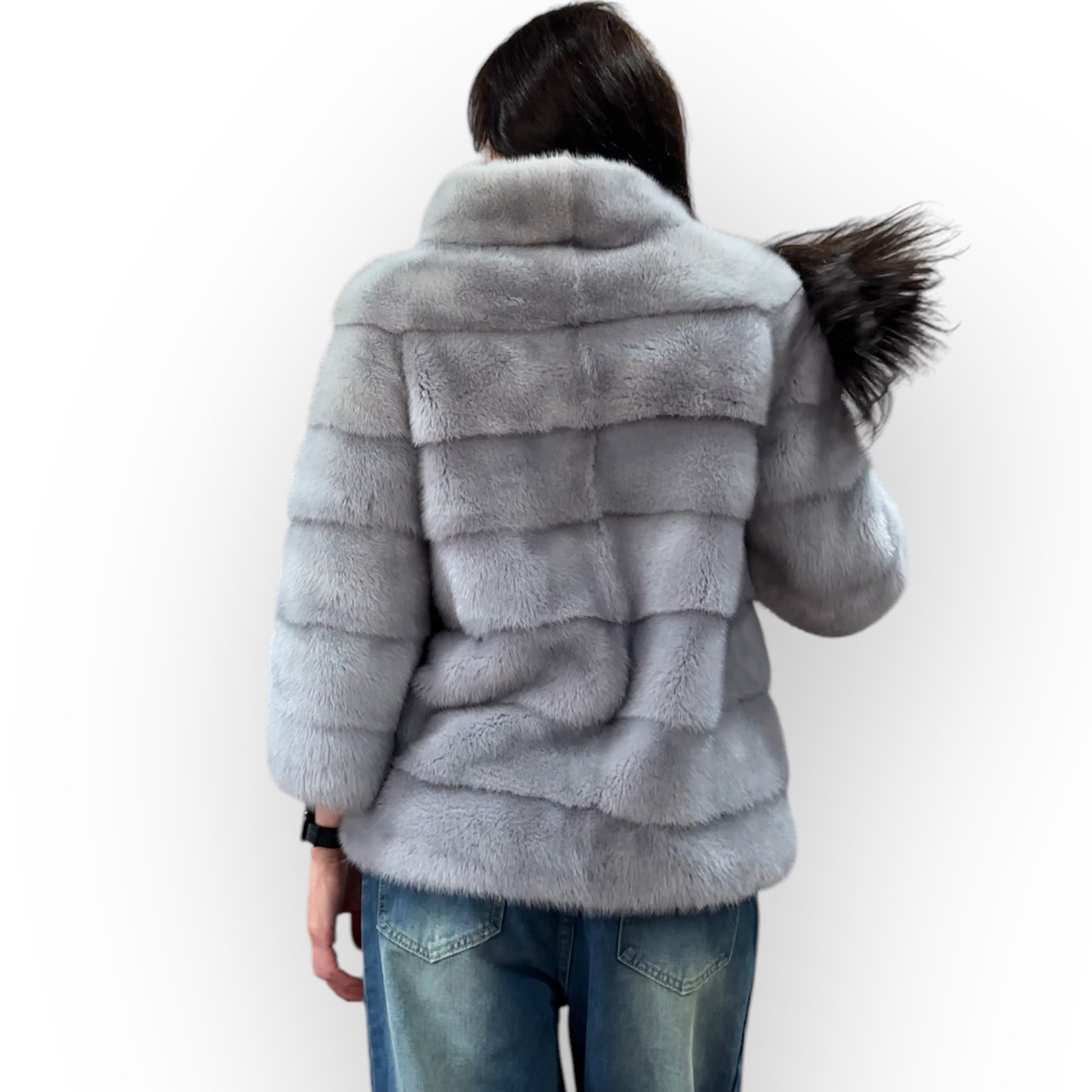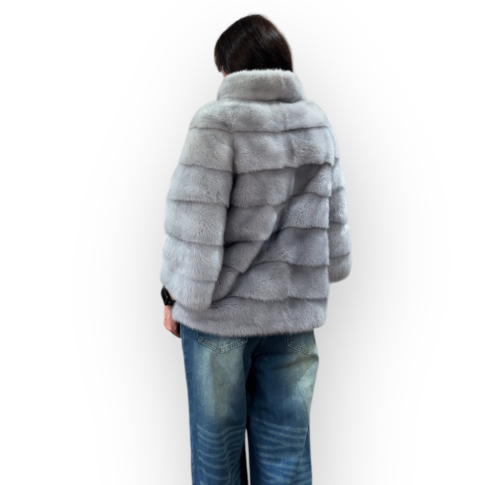 GENUINE MINK NEW REAL FUR coat Jacket GREY color SUPER size S women 1201102