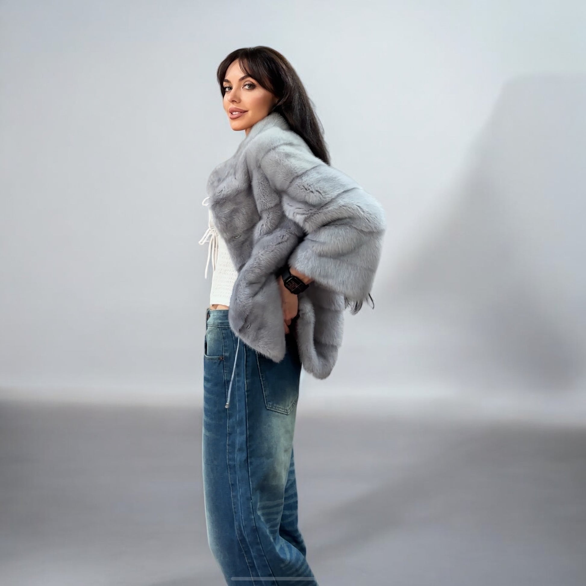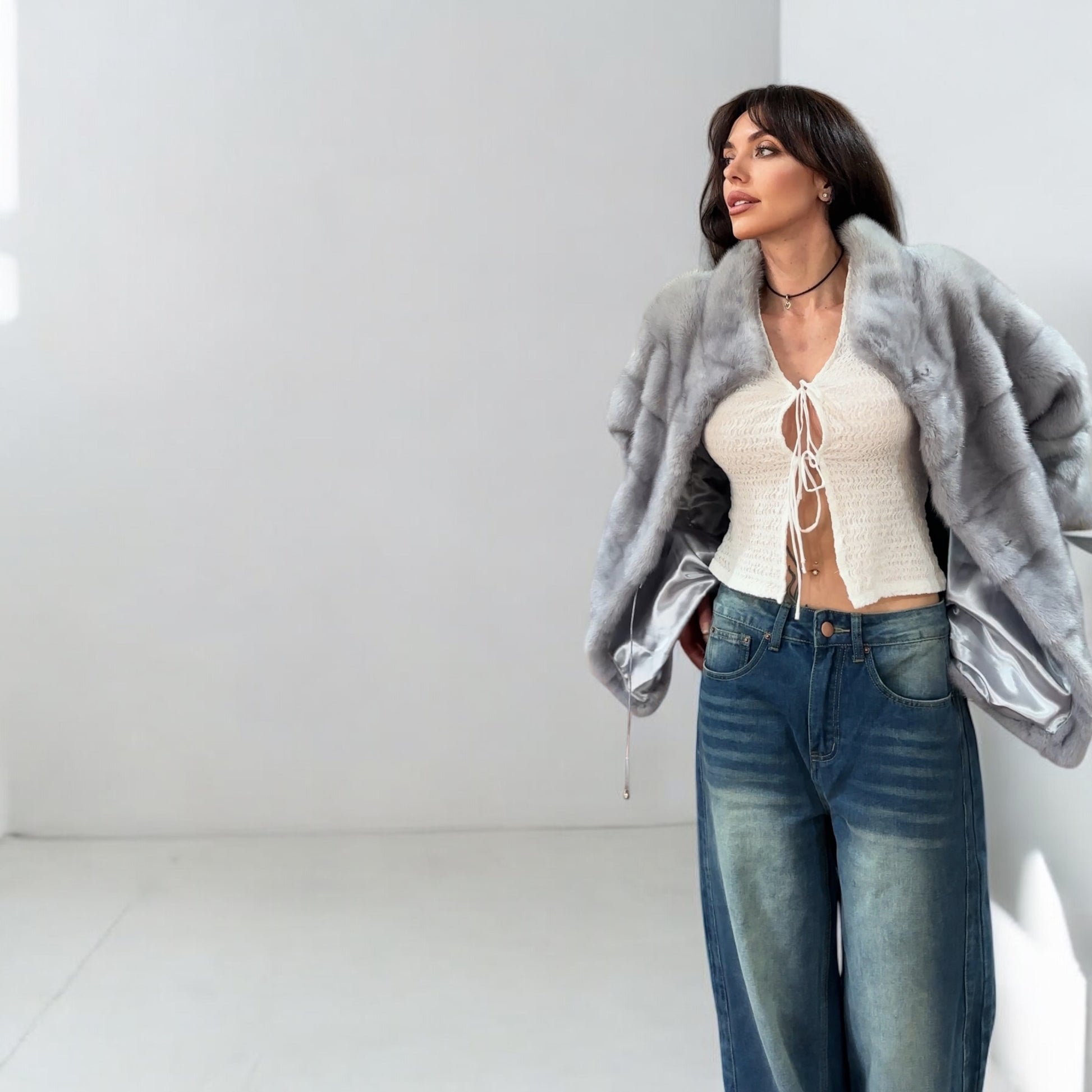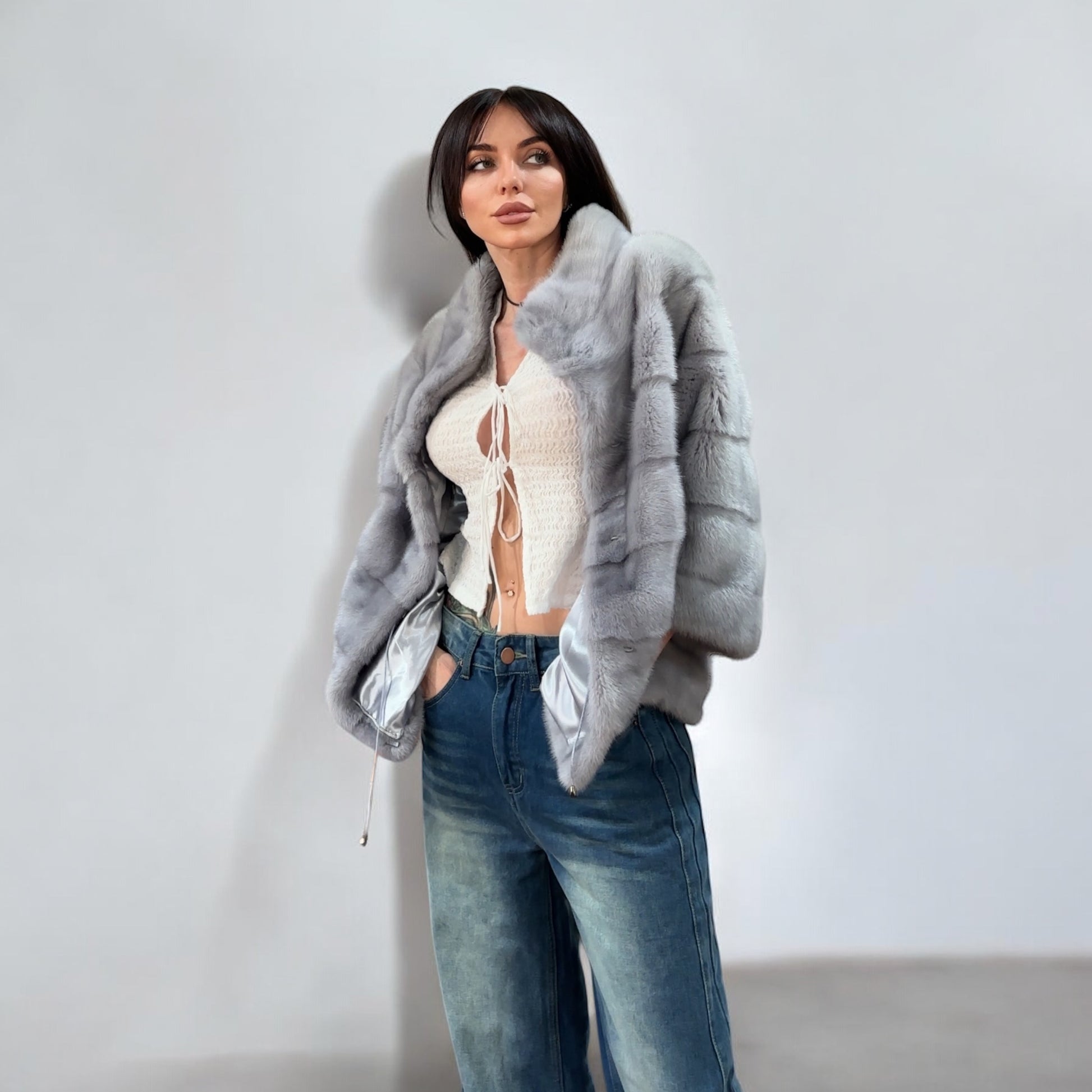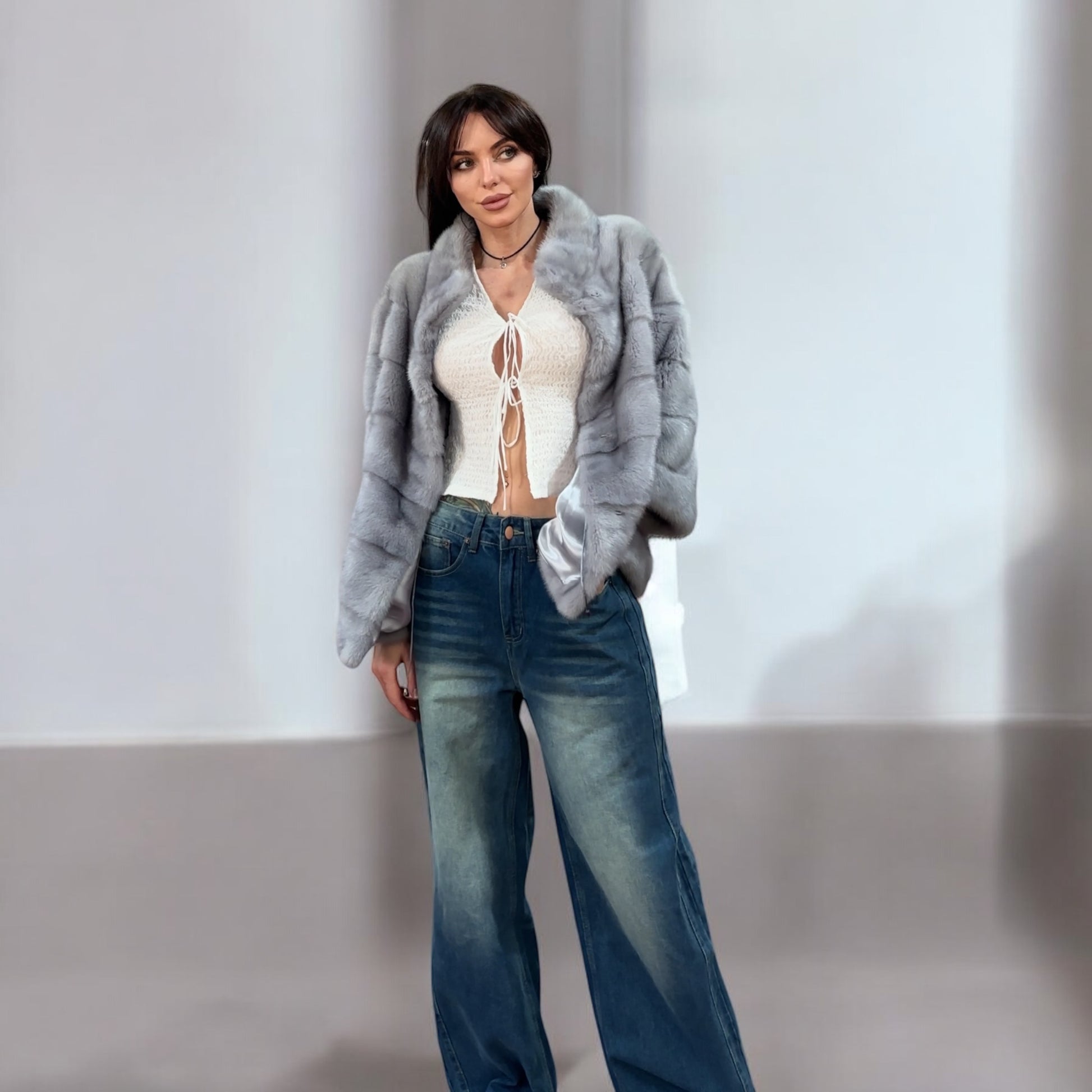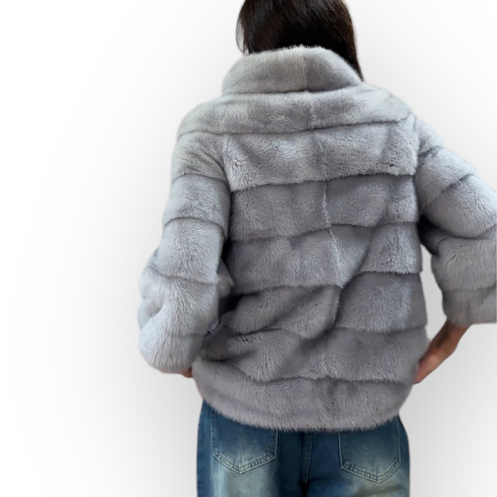 GENUINE MINK NEW REAL FUR coat Jacket GREY color SUPER size S women 1201102