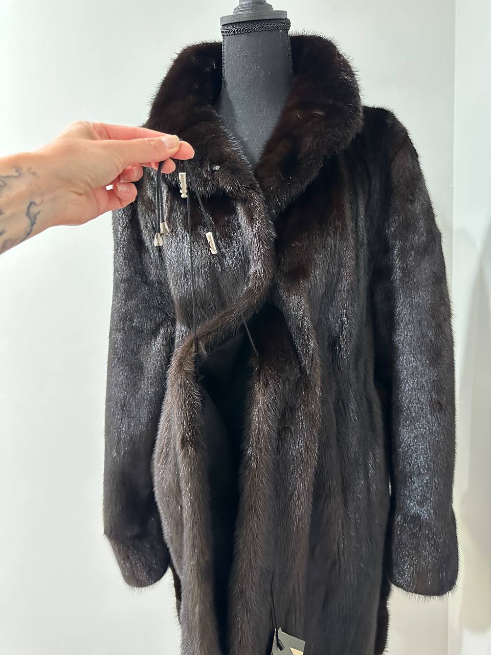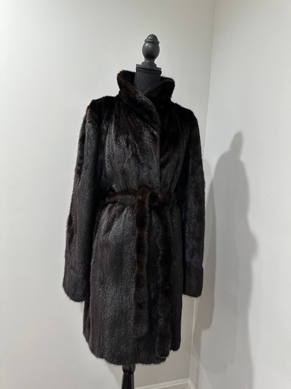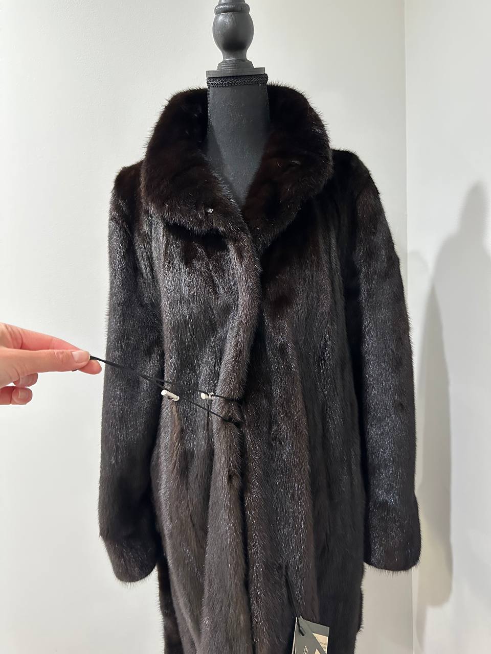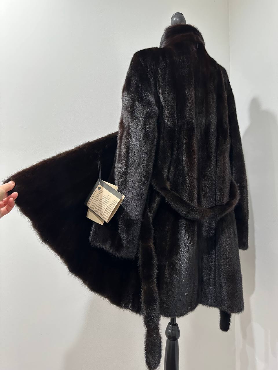 genuine real mink fur coat jacket 1109898 size L new dark brown color