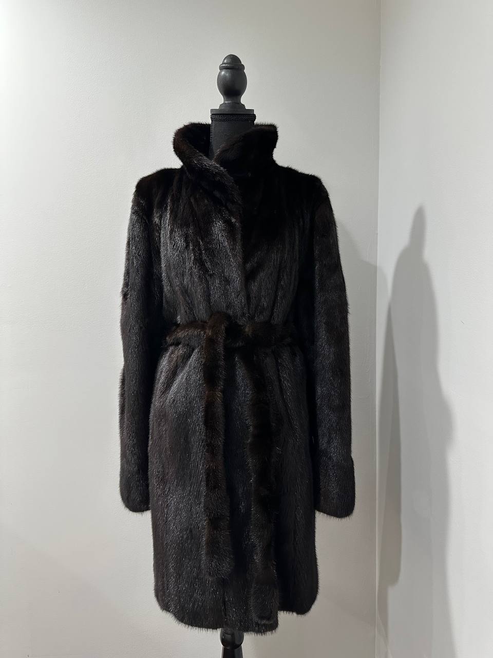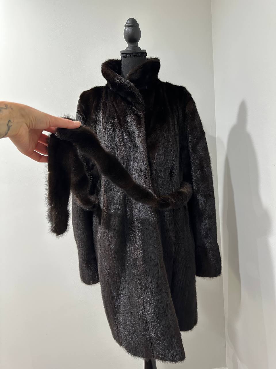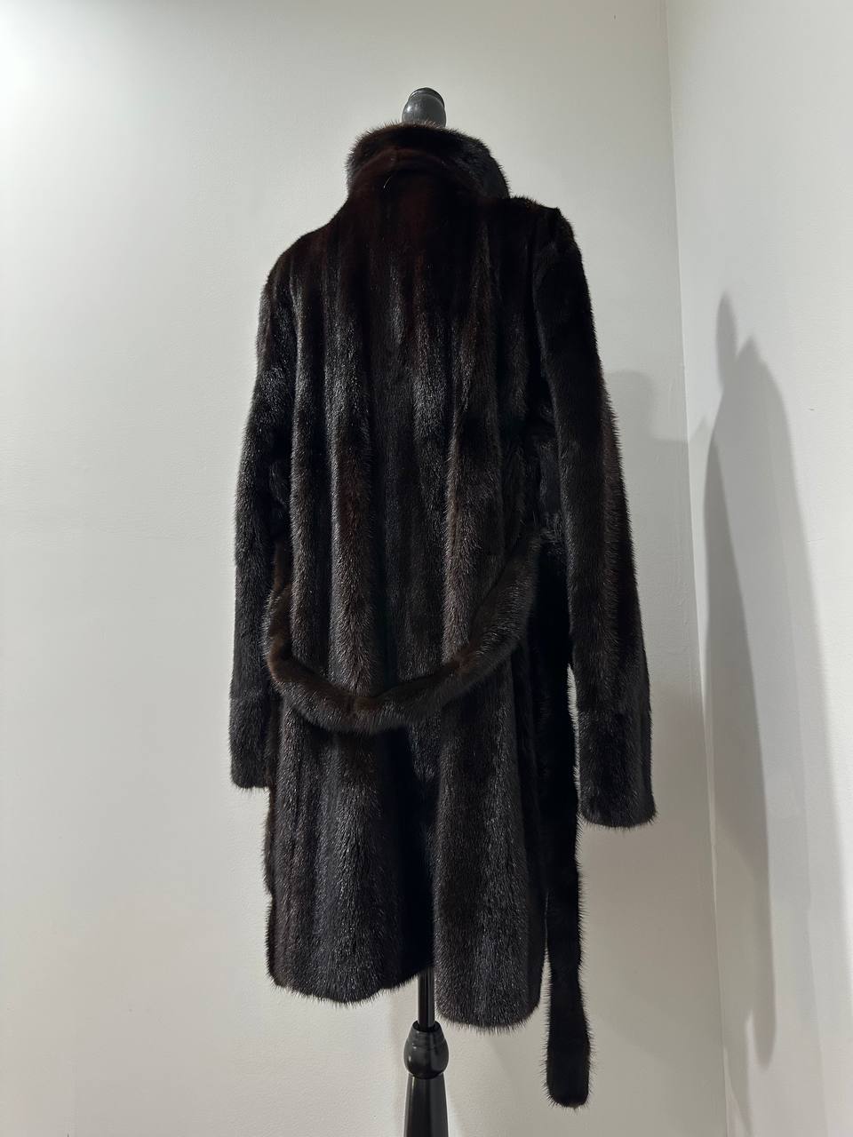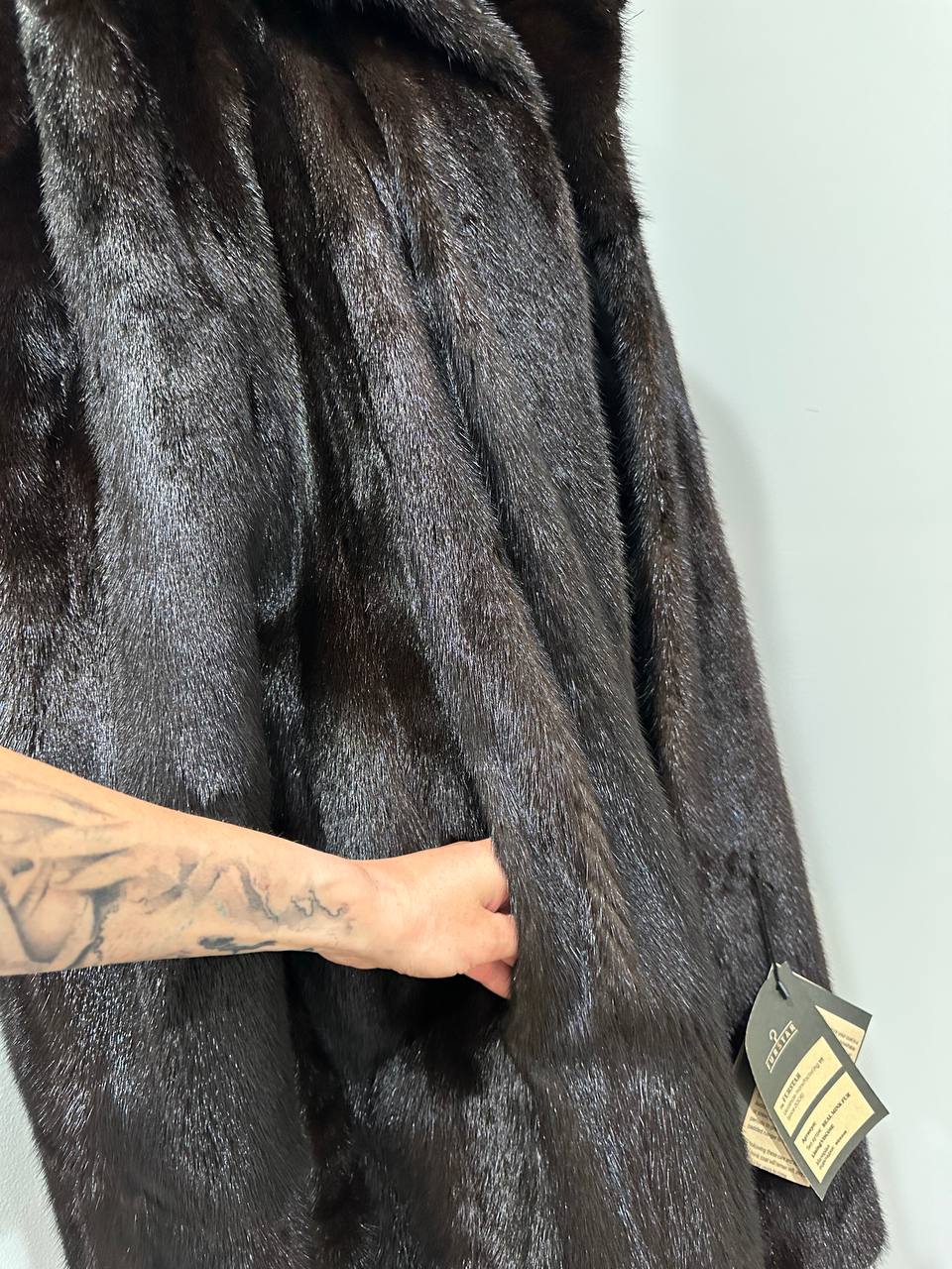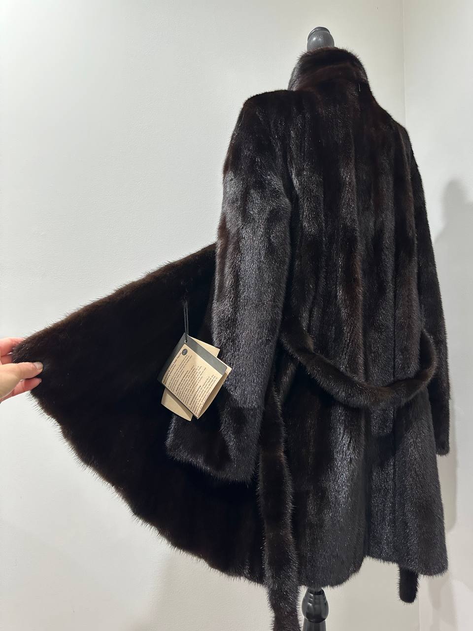 genuine real mink fur coat jacket 1109898 size L new dark brown color