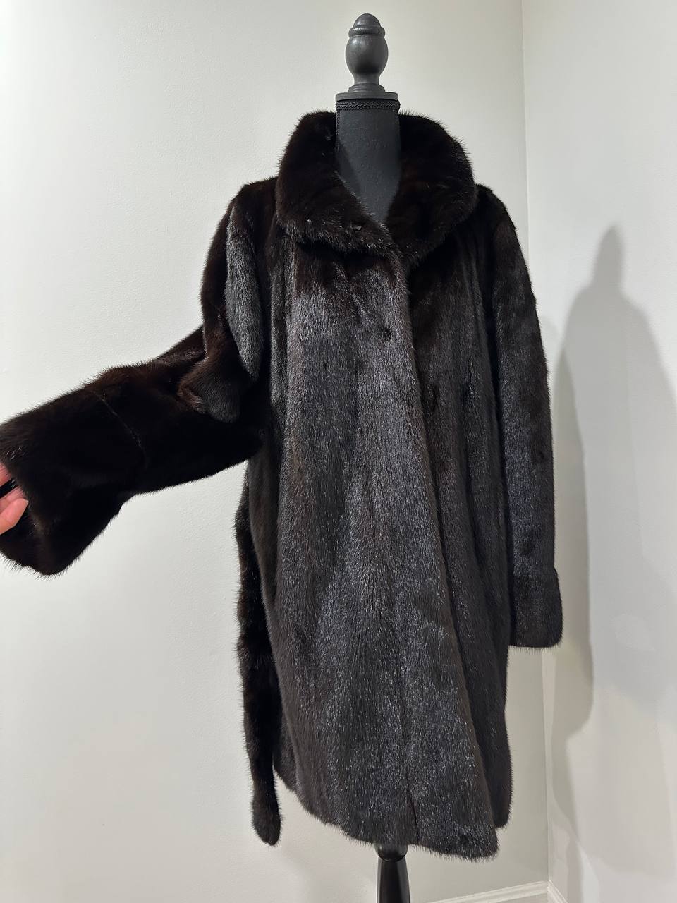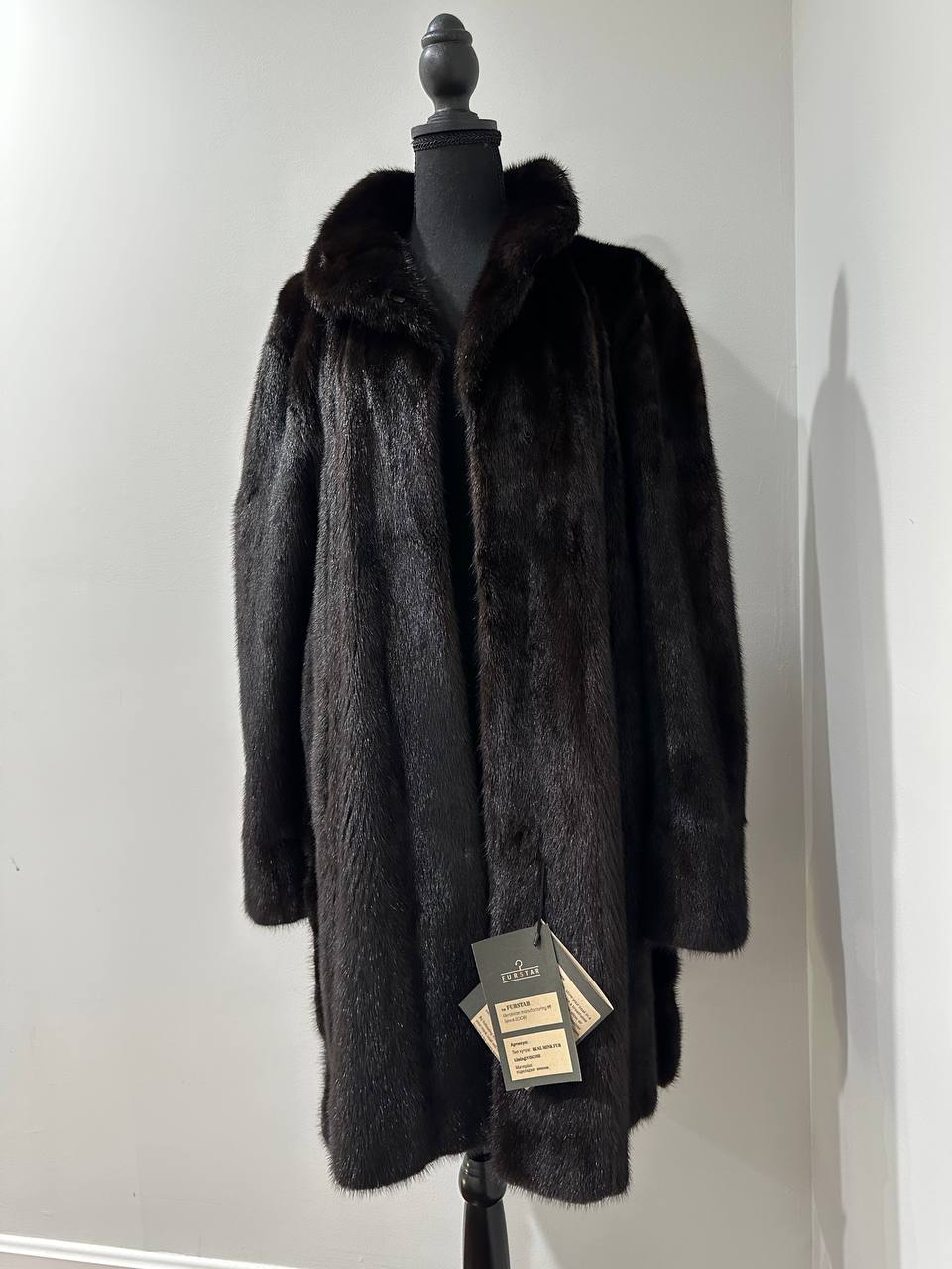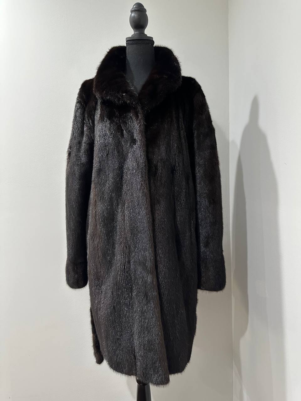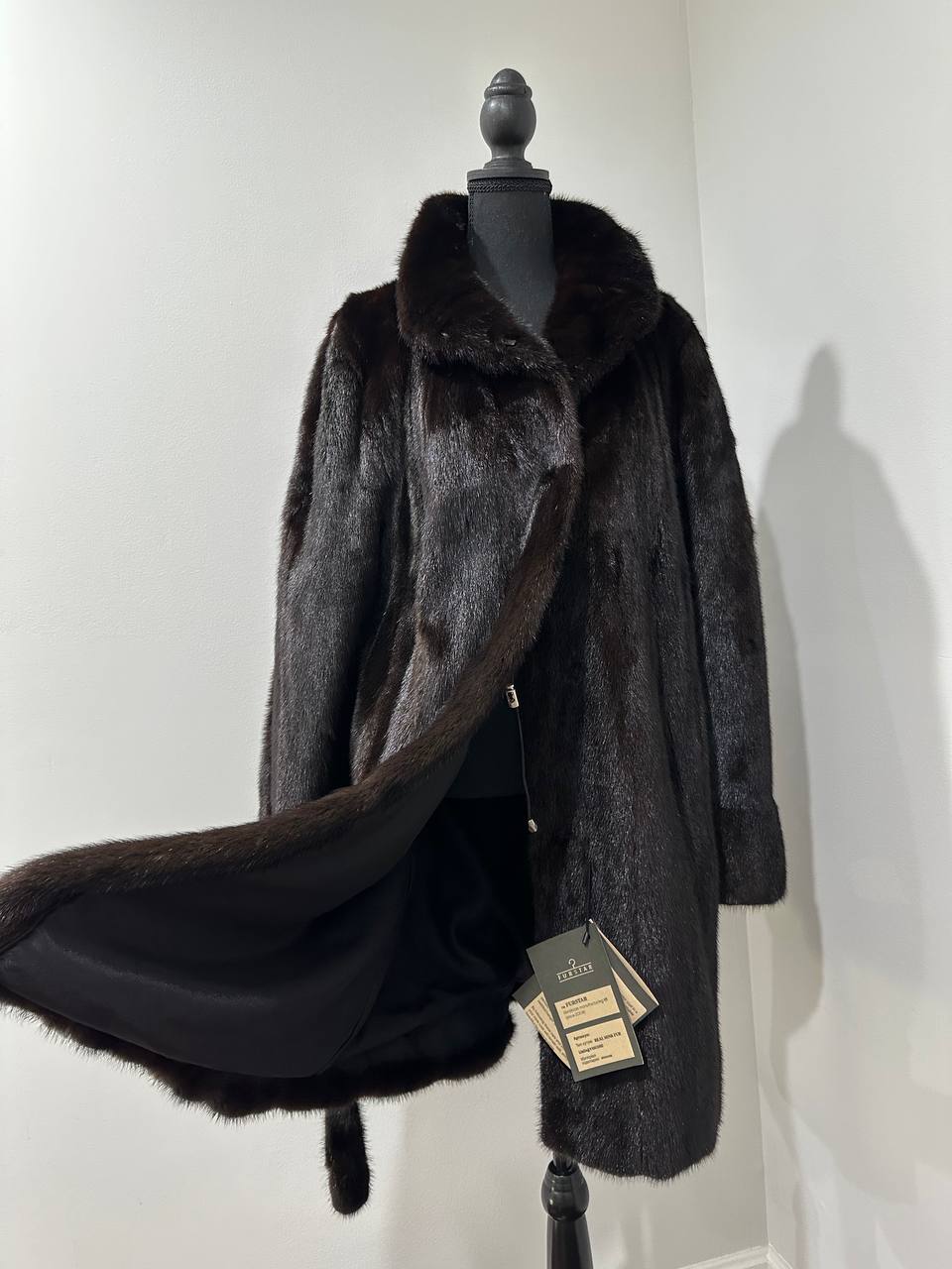 genuine real mink fur coat jacket 1109898 size L new dark brown color