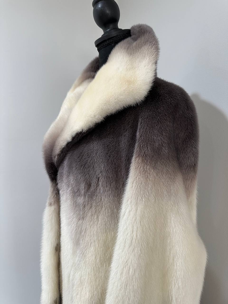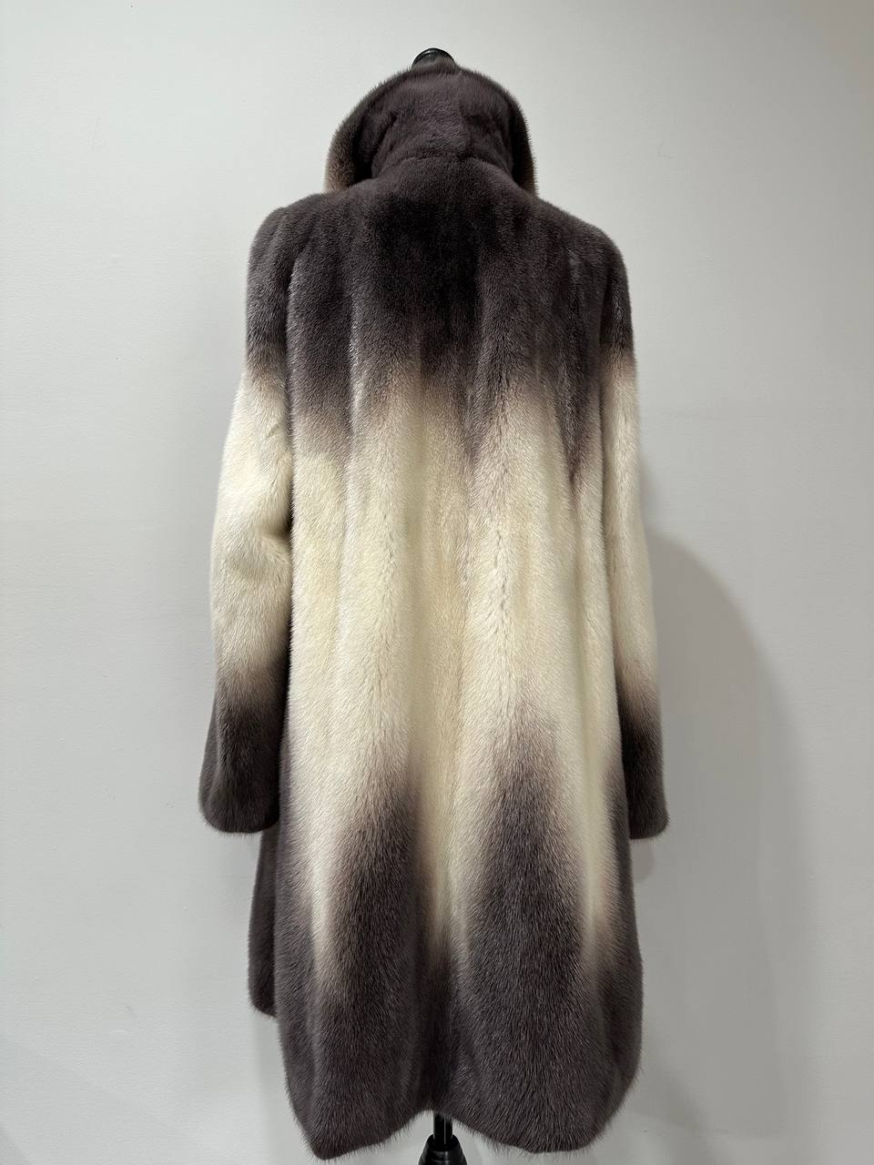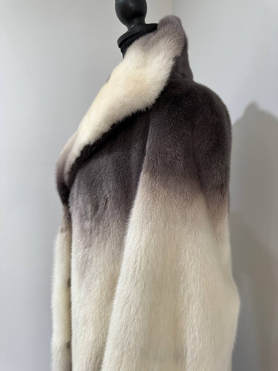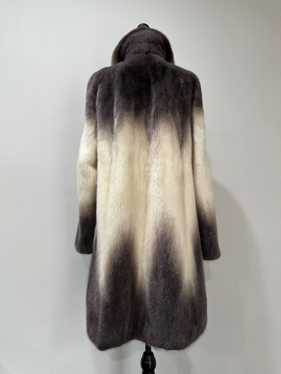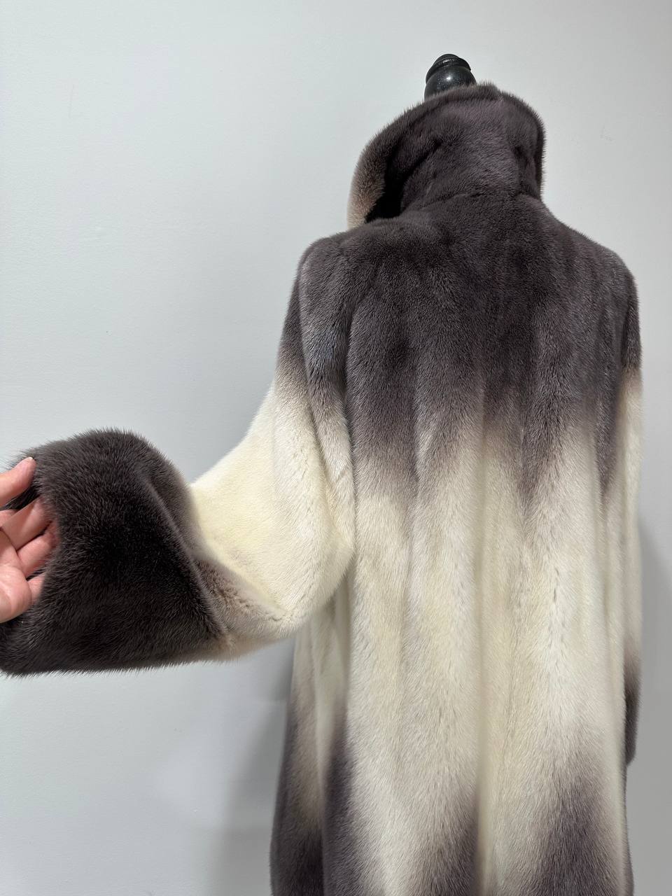 Luxury Natural Mink Fur Coat Gradient 1201142 M Shades Snow Cream Smoky Charcoal