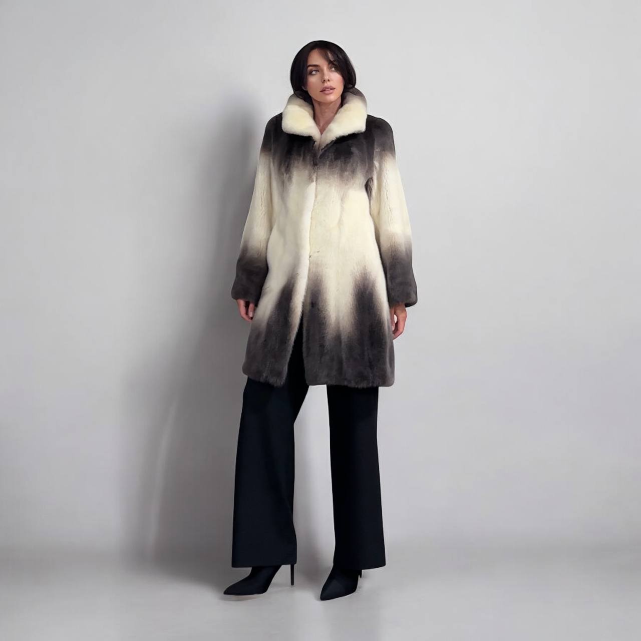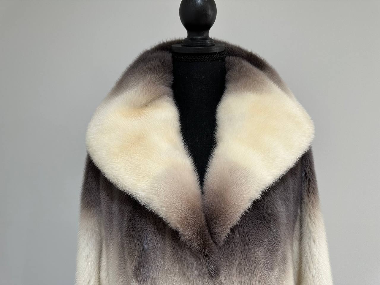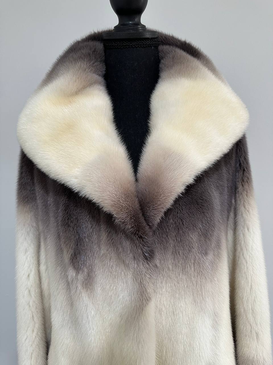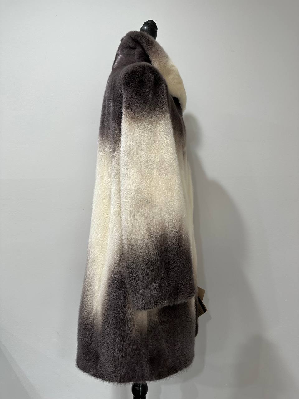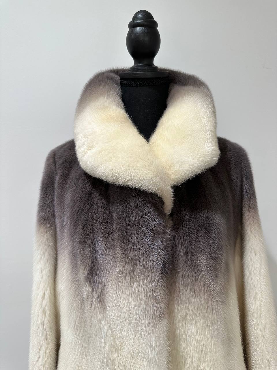 Luxury Natural Mink Fur Coat Gradient 1201142 M Shades Snow Cream Smoky Charcoal