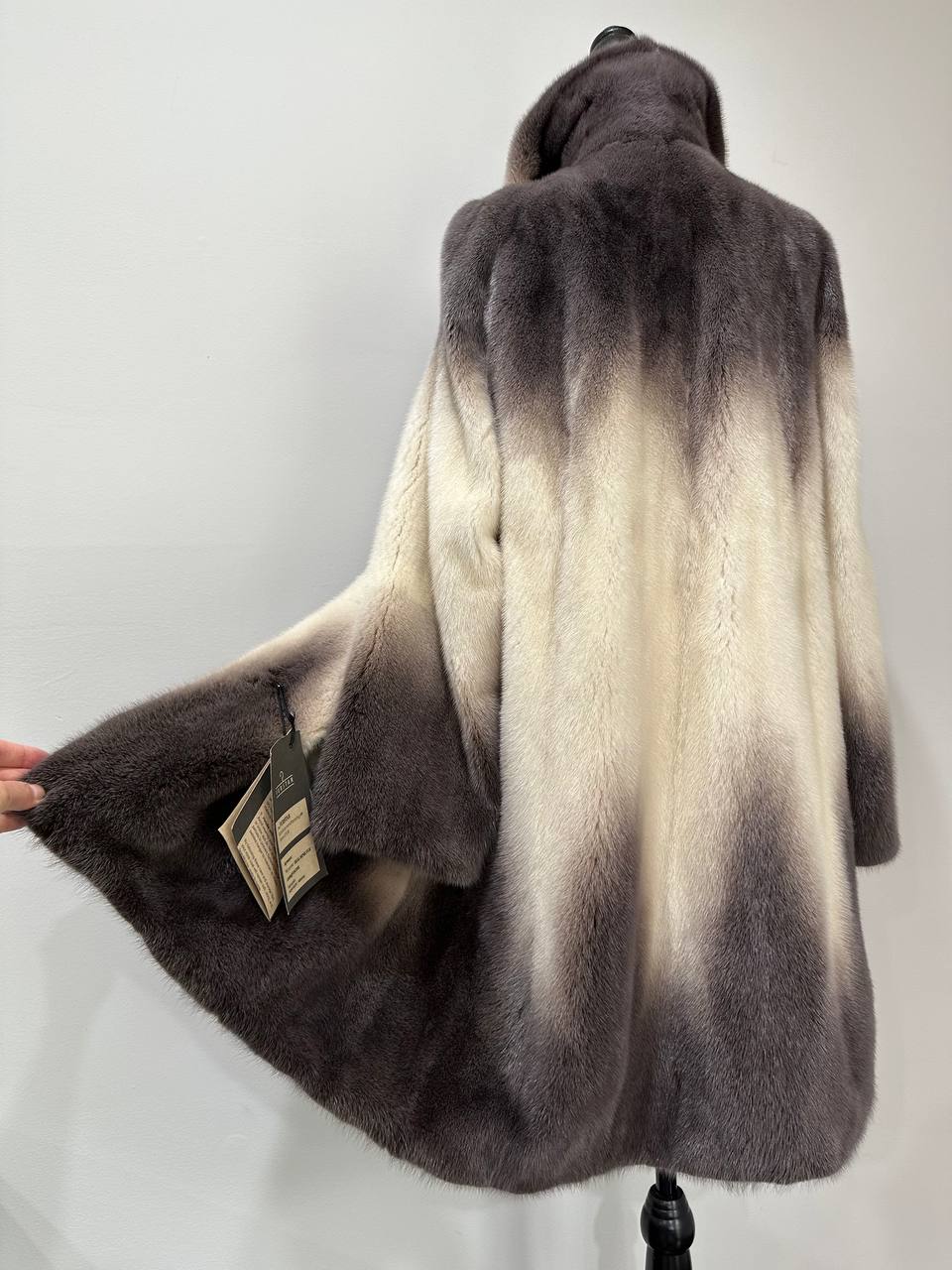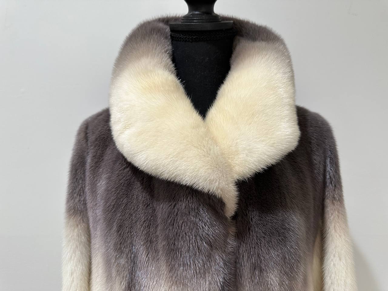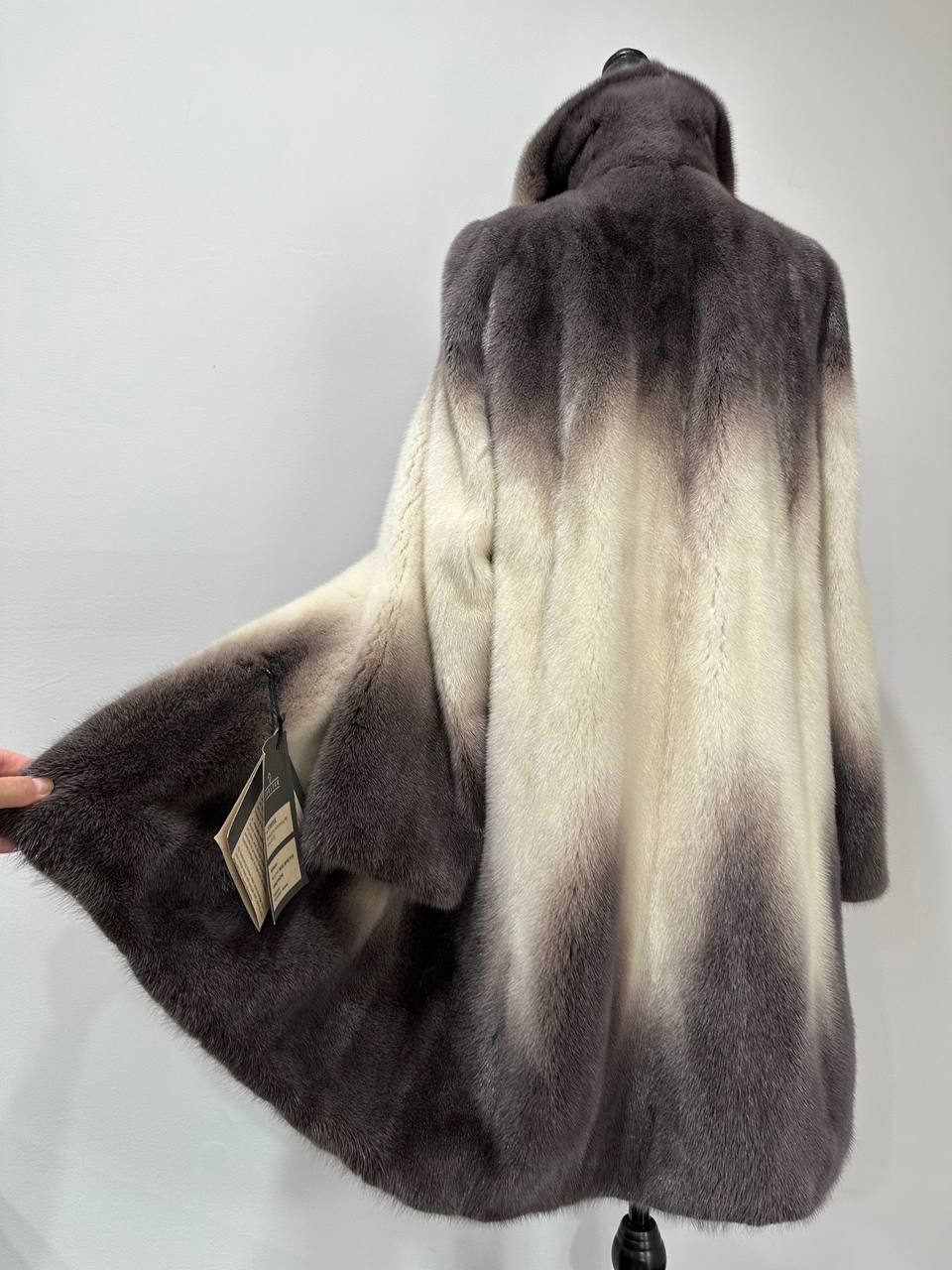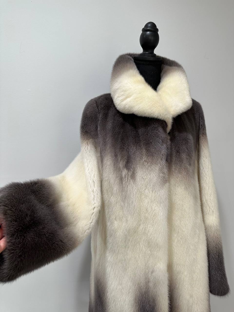 Luxury Natural Mink Fur Coat Gradient 1201142 M Shades Snow Cream Smoky Charcoal