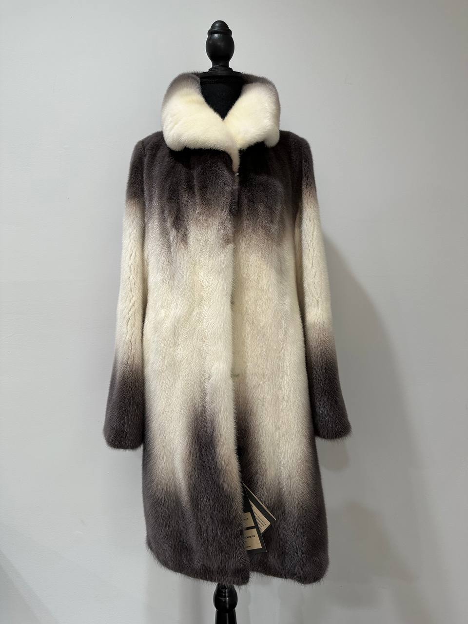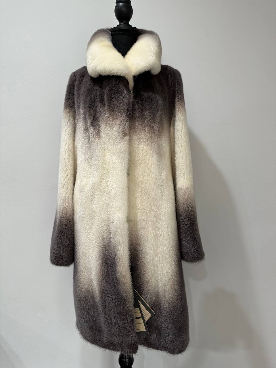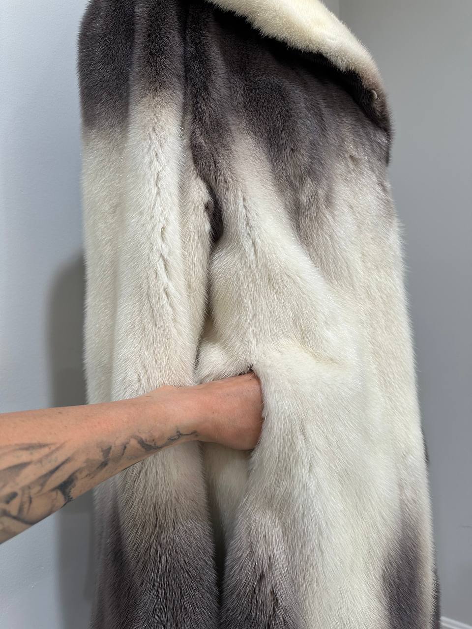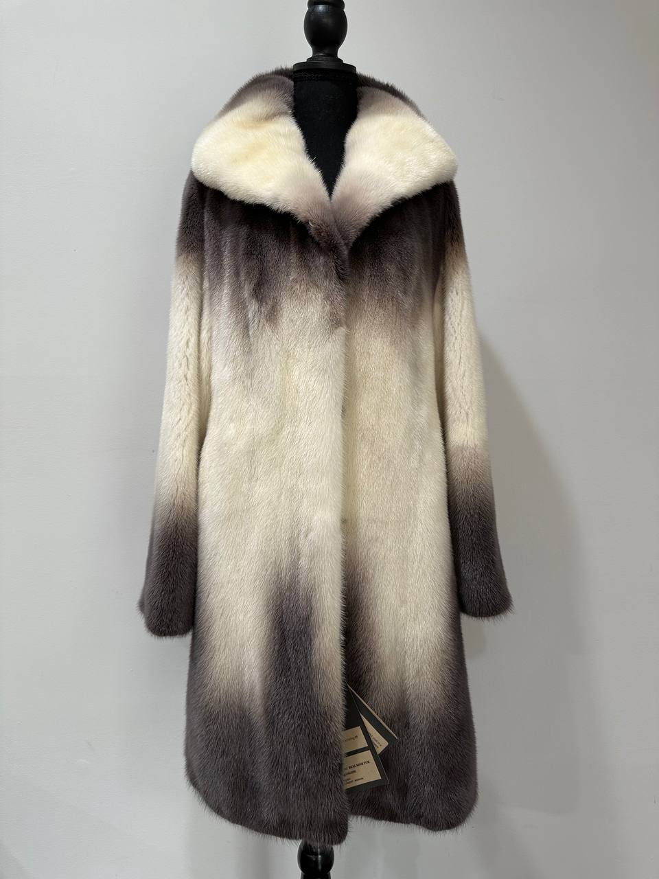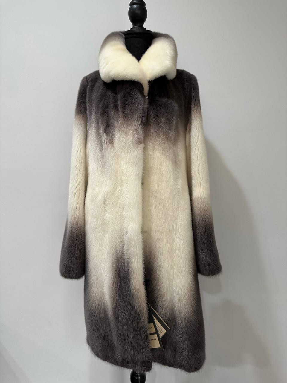 Luxury Natural Mink Fur Coat Gradient 1201142 M Shades Snow Cream Smoky Charcoal