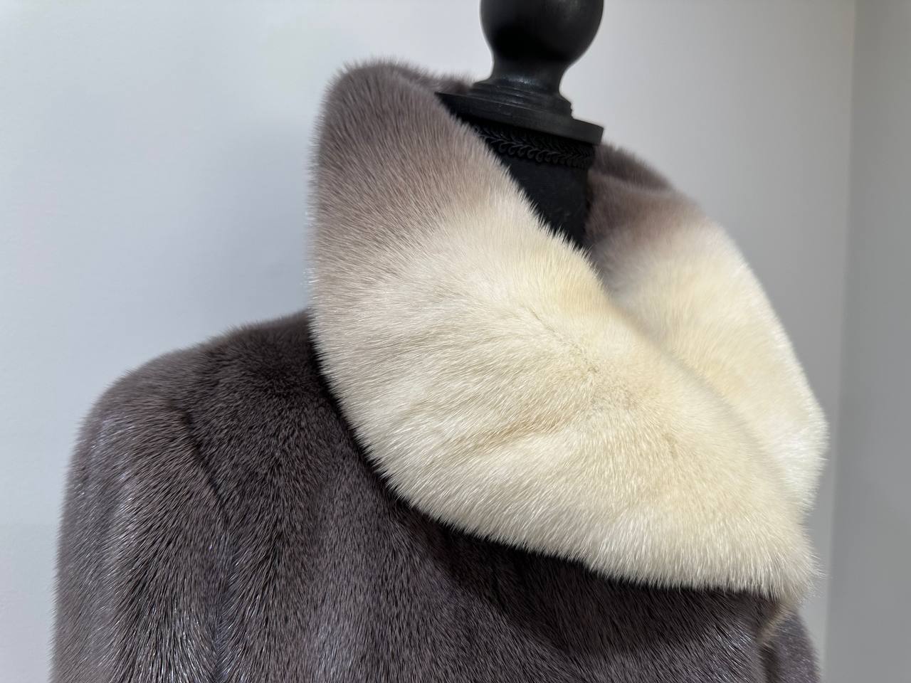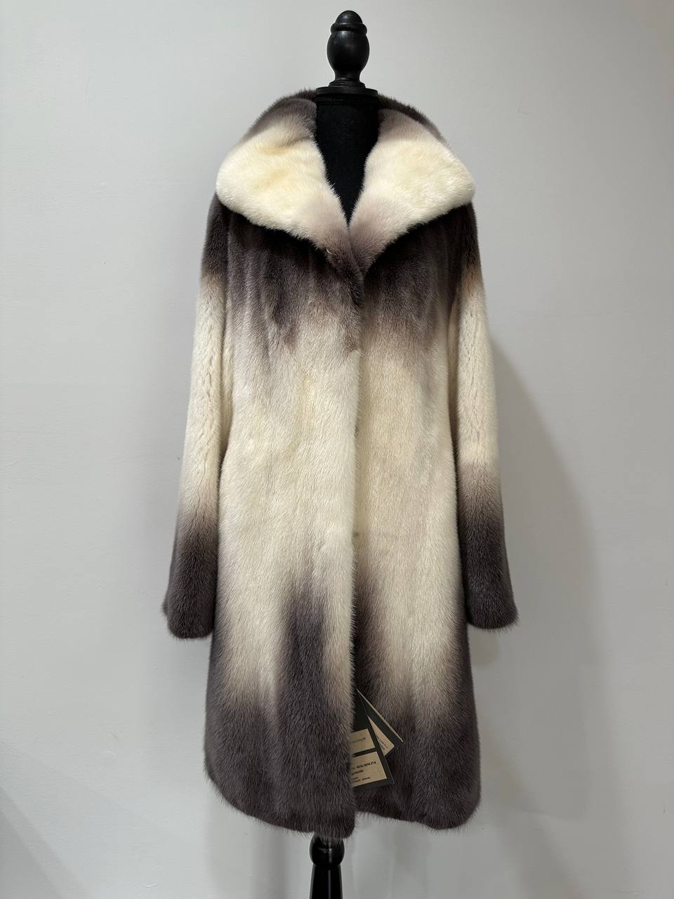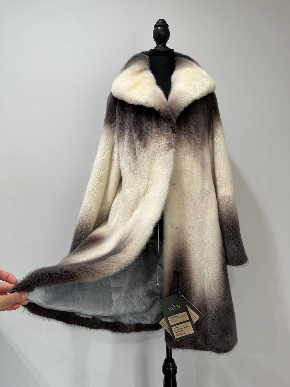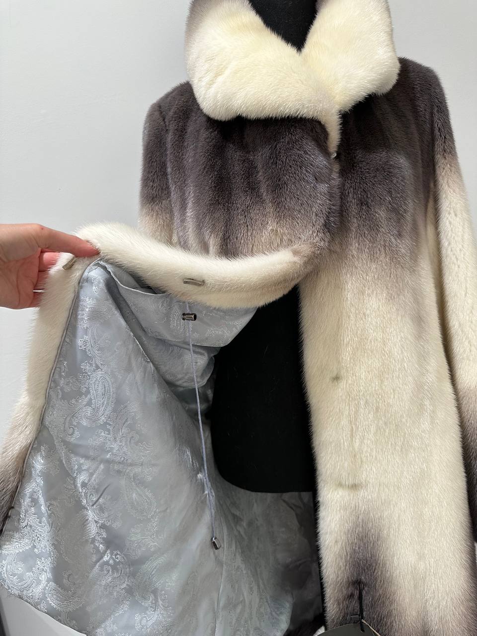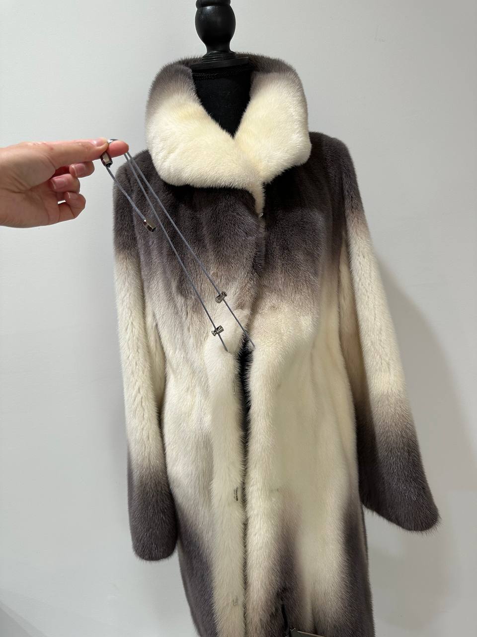 Luxury Natural Mink Fur Coat Gradient 1201142 M Shades Snow Cream Smoky Charcoal
