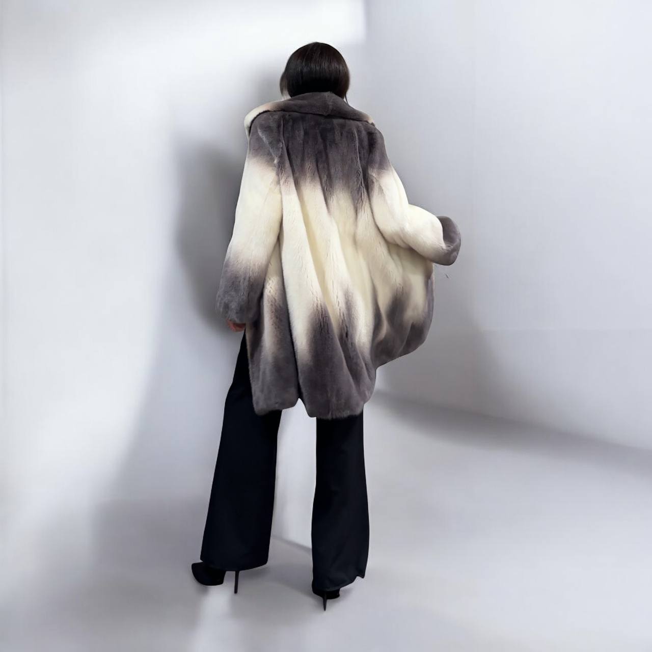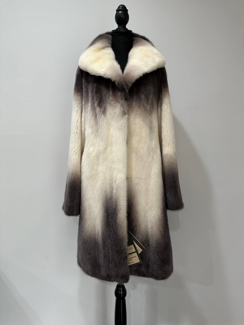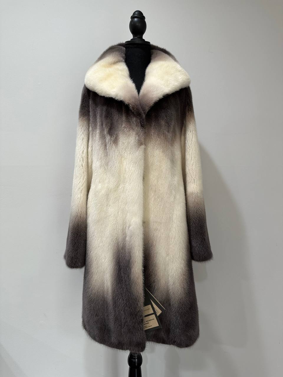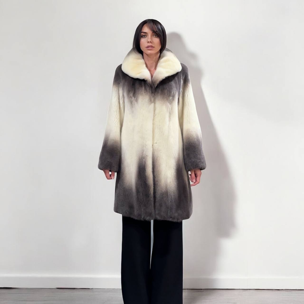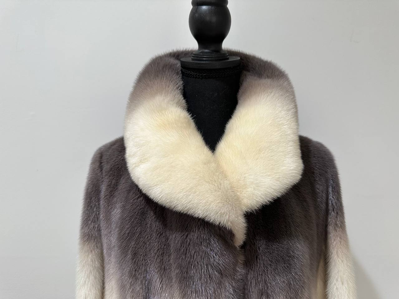 Luxury Natural Mink Fur Coat Gradient 1201142 M Shades Snow Cream Smoky Charcoal