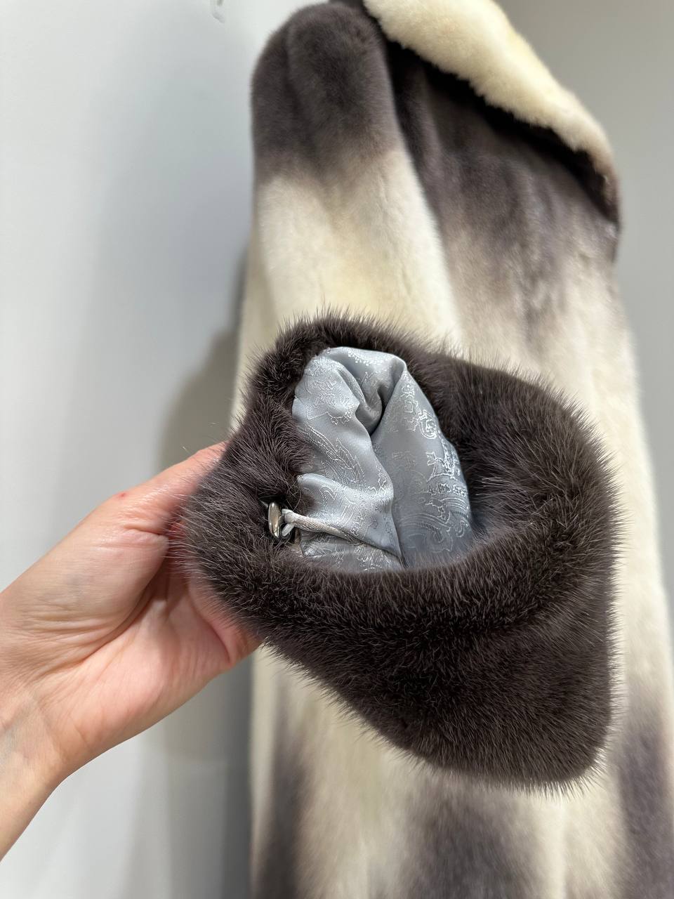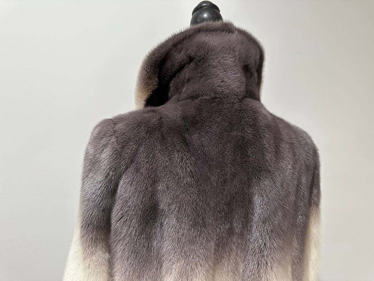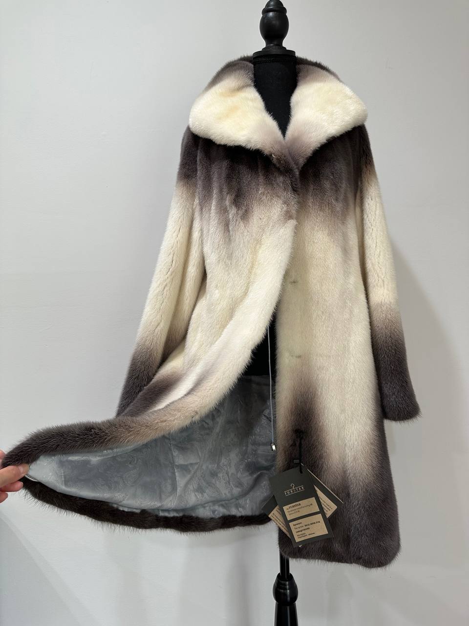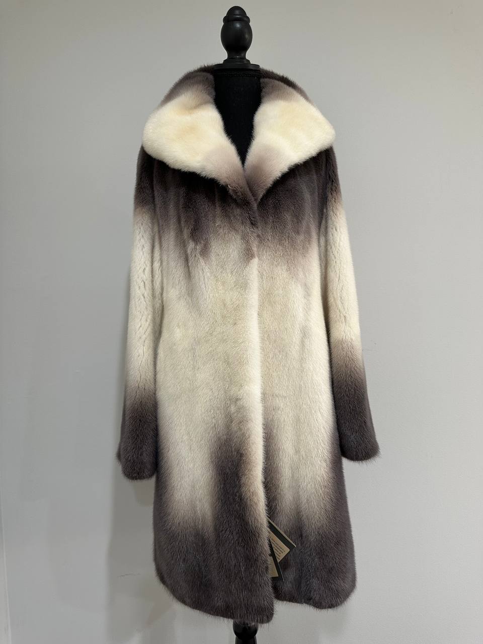 Luxury Natural Mink Fur Coat Gradient 1201142 M Shades Snow Cream Smoky Charcoal