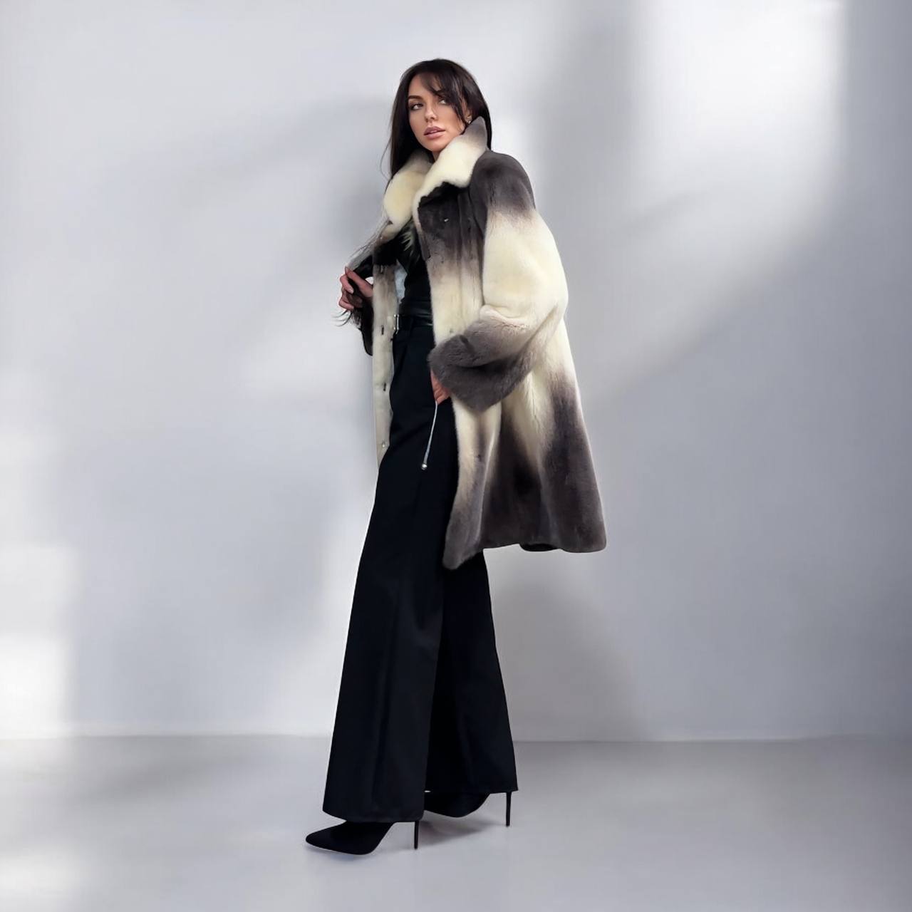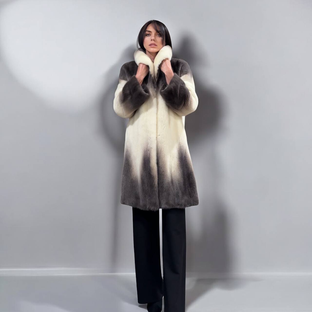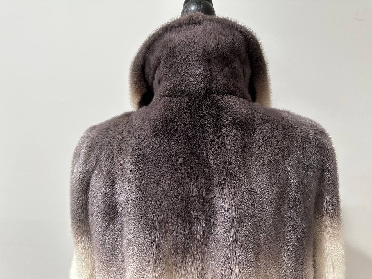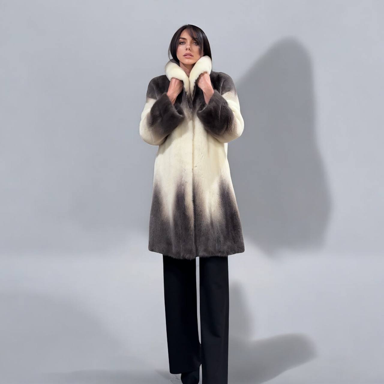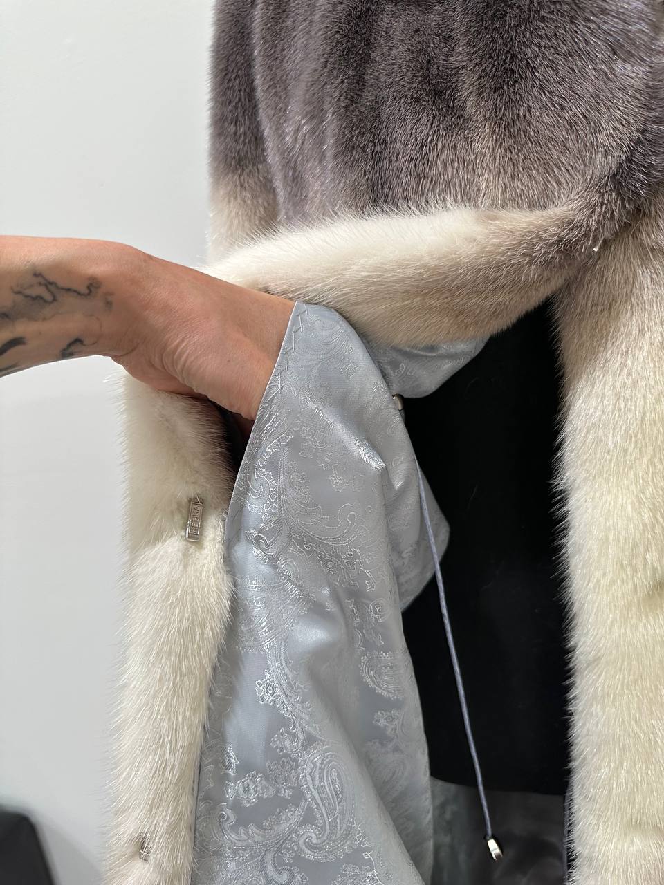 Luxury Natural Mink Fur Coat Gradient 1201142 M Shades Snow Cream Smoky Charcoal