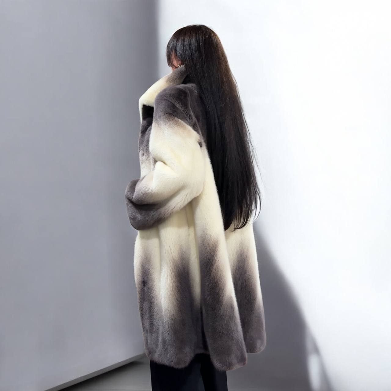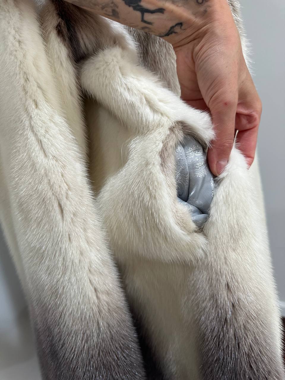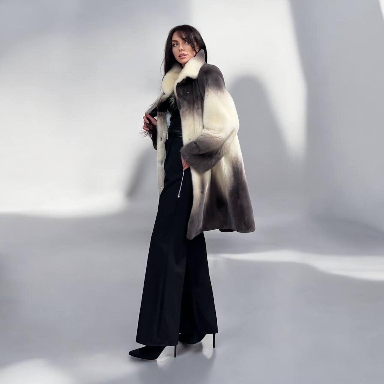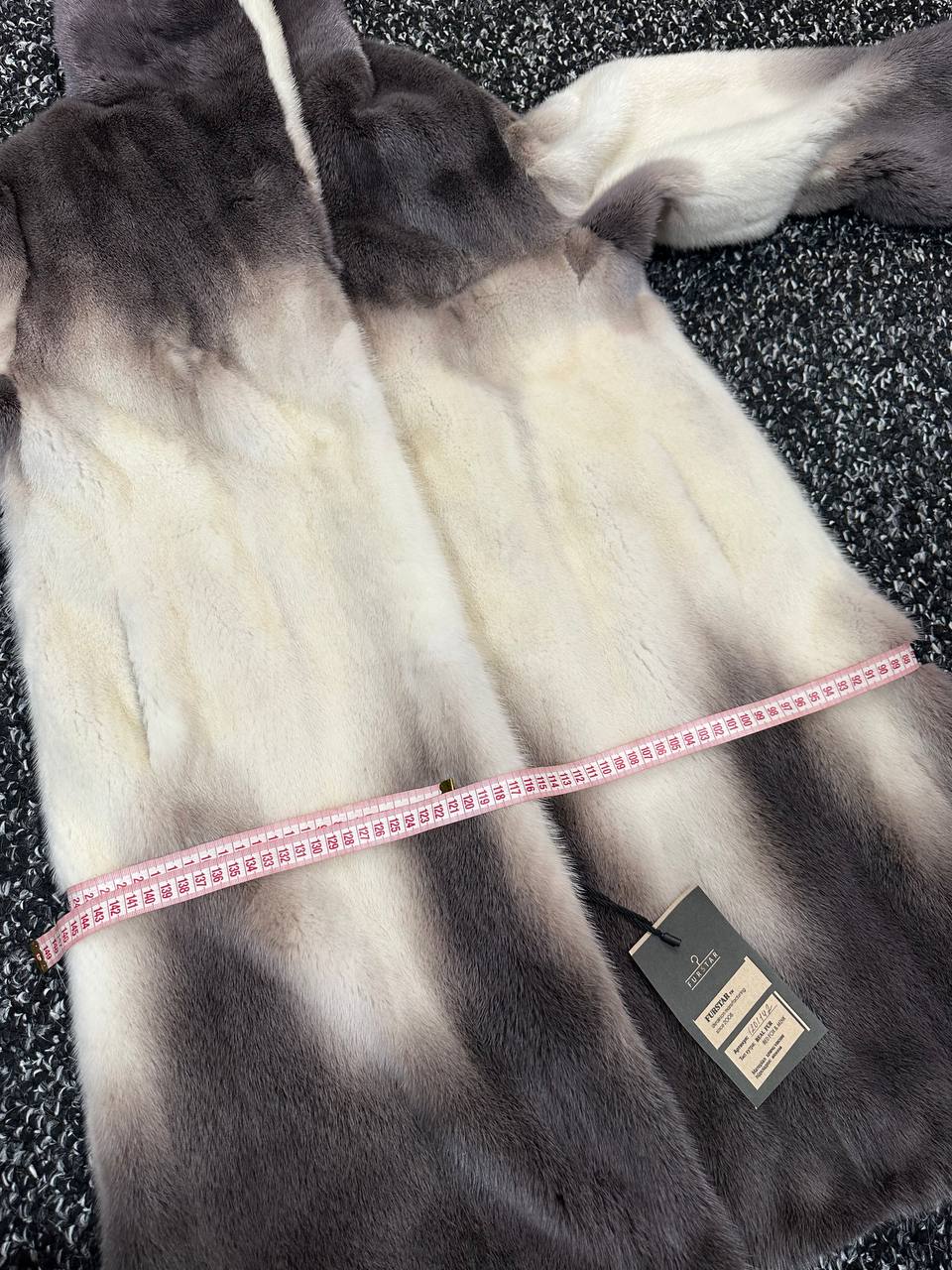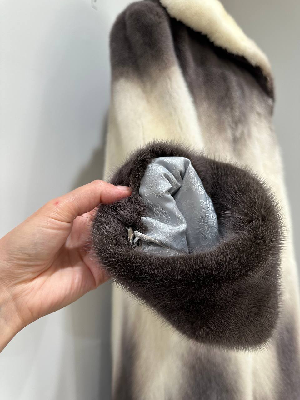 Luxury Natural Mink Fur Coat Gradient 1201142 M Shades Snow Cream Smoky Charcoal