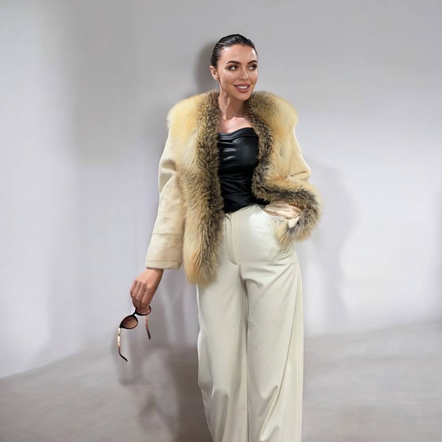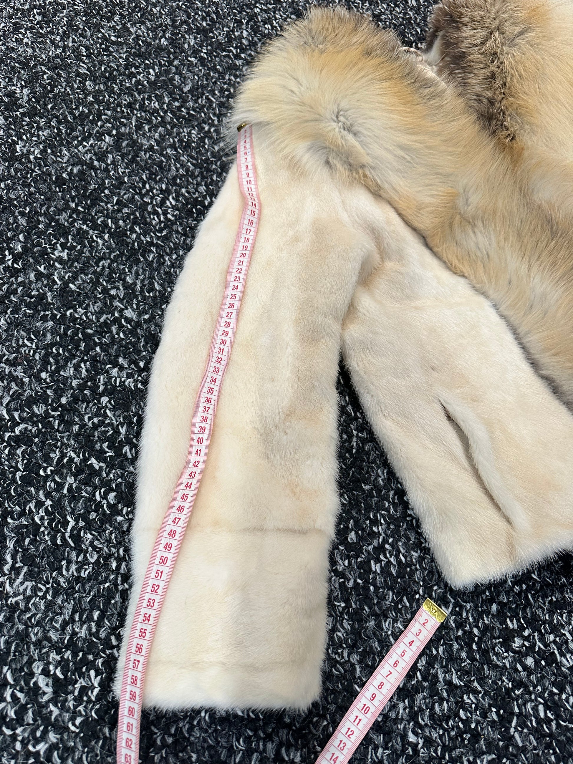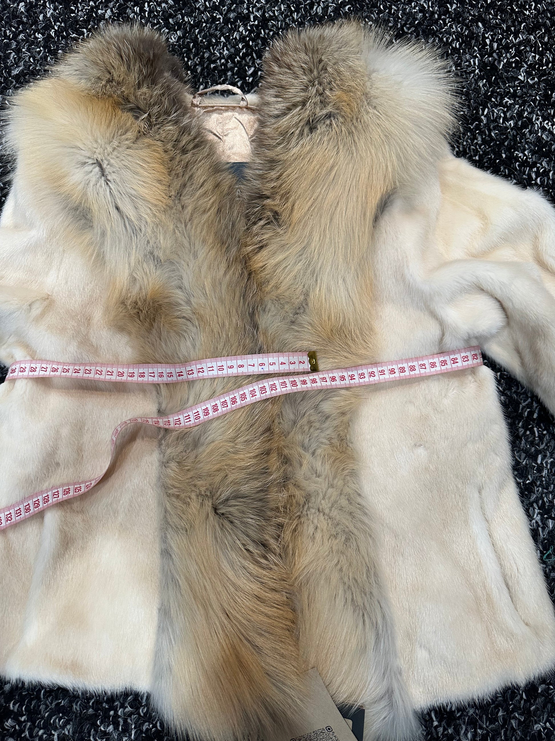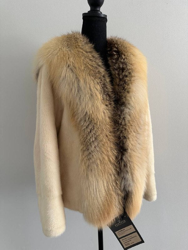 Luxury Womens Real 100% Mink FUR CREAM FOX genuine coat 1201110 size S NEW JACKET