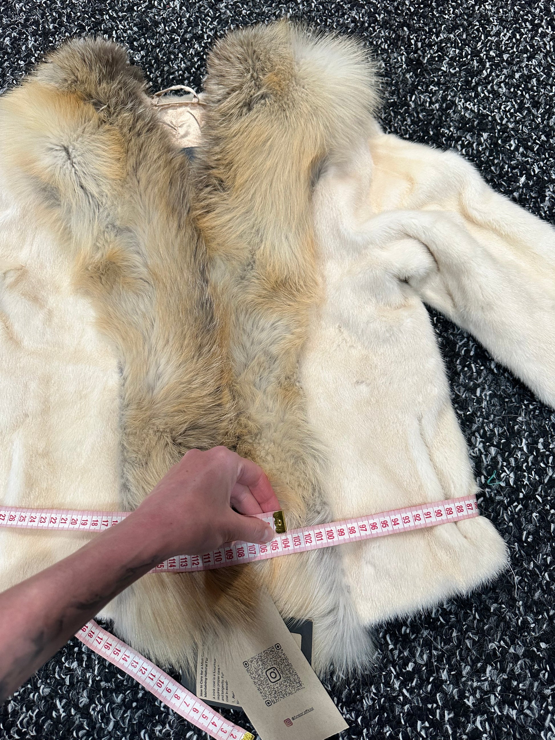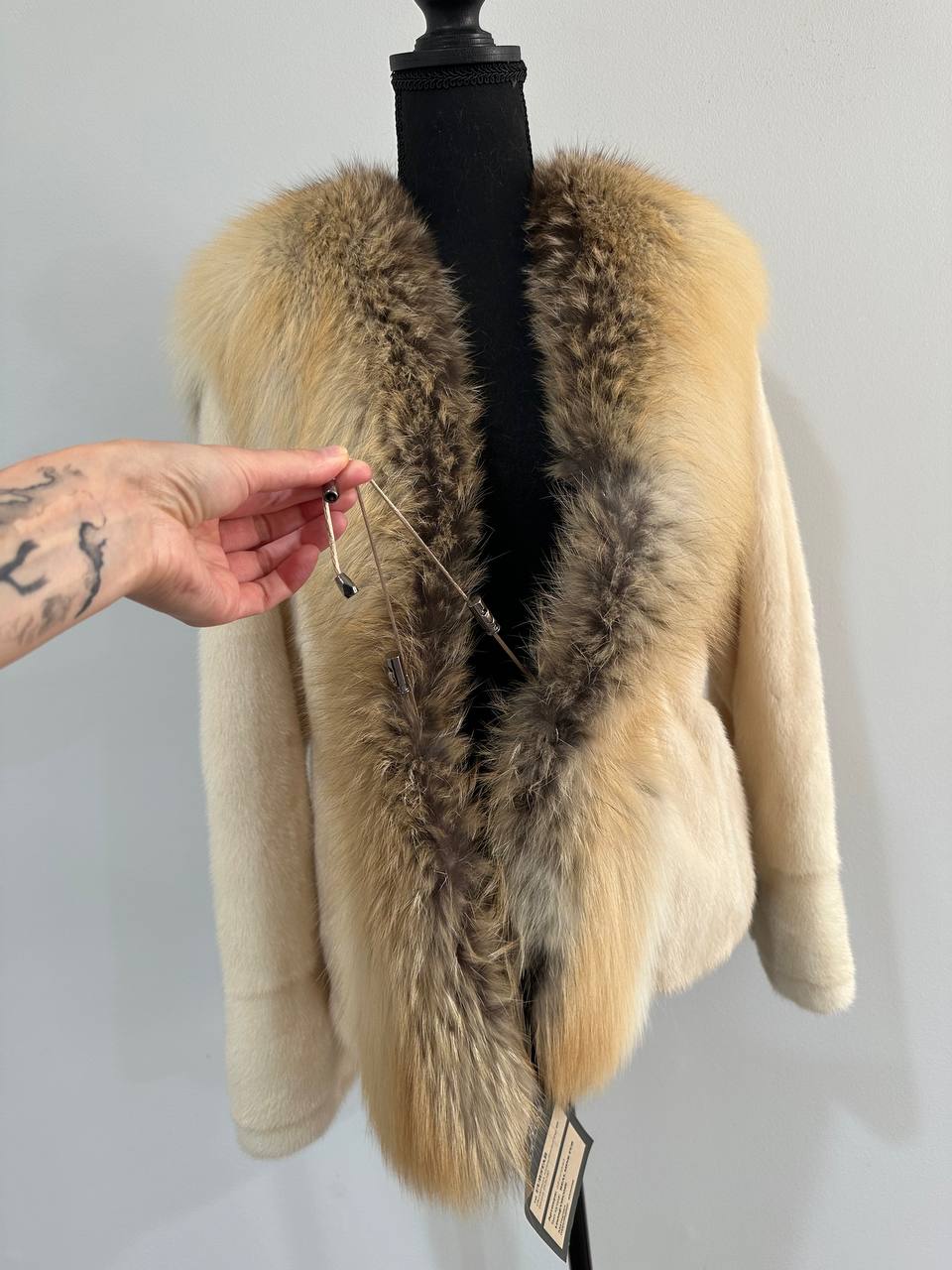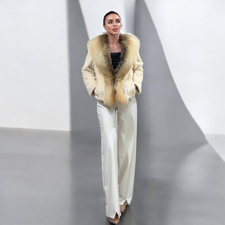 Luxury Womens Real 100% Mink FUR CREAM FOX genuine coat 1201110 size S NEW JACKET