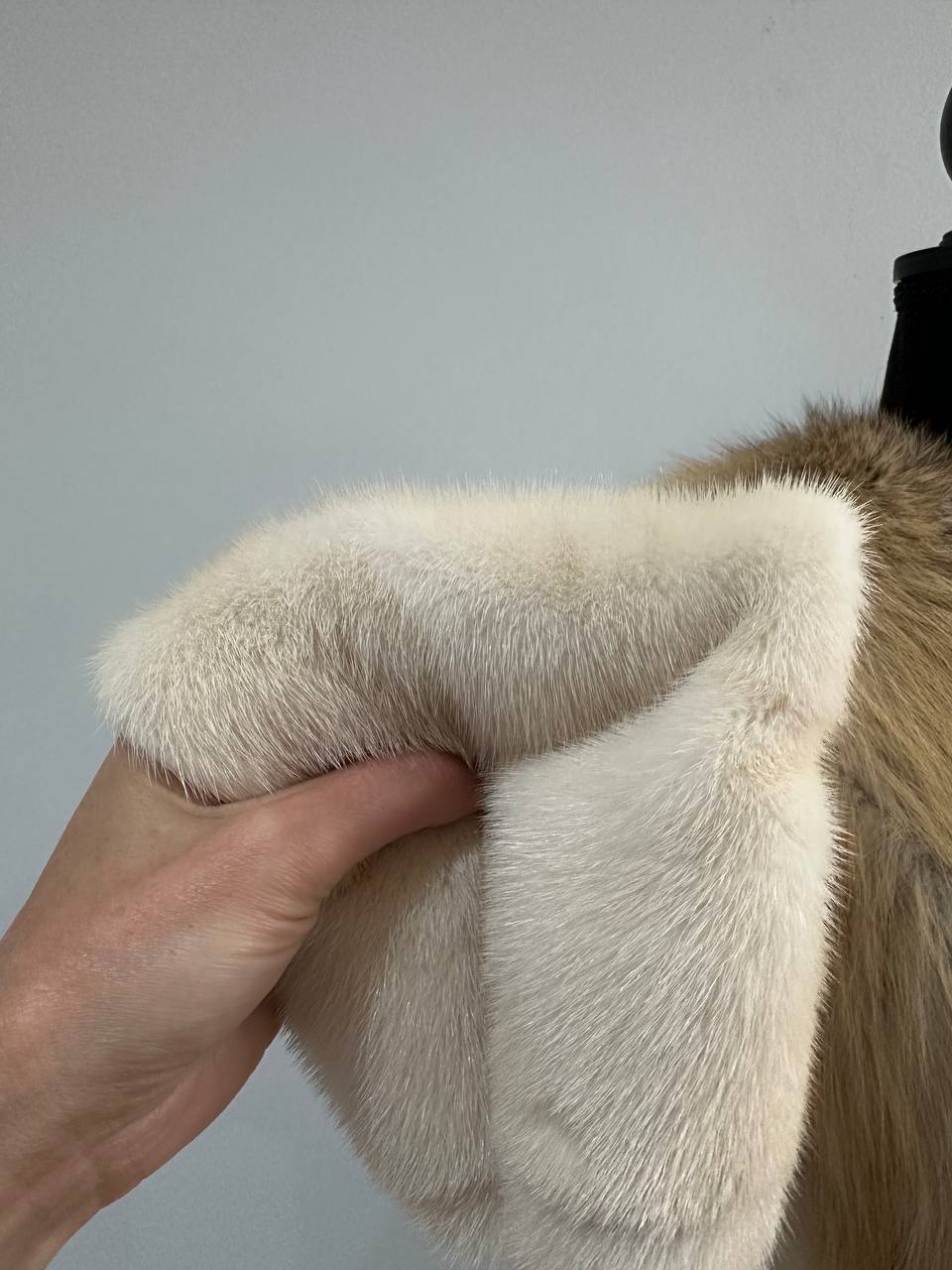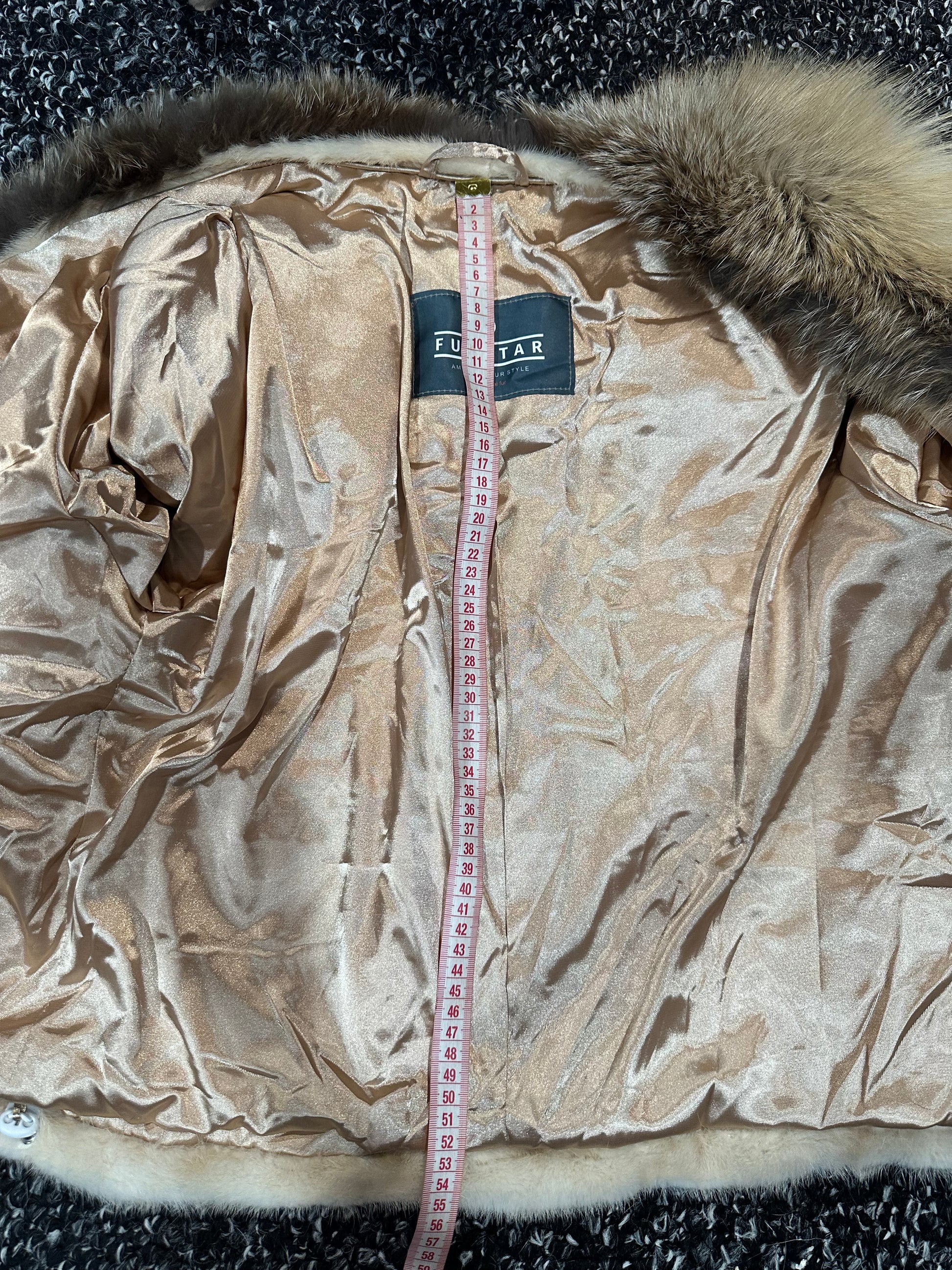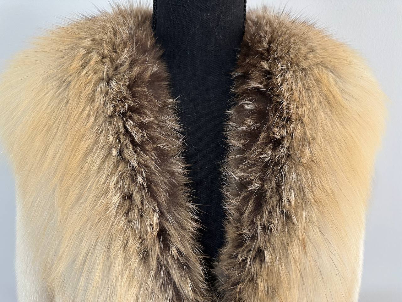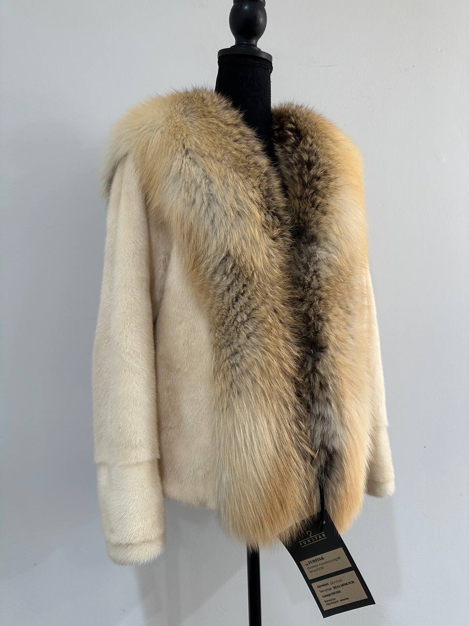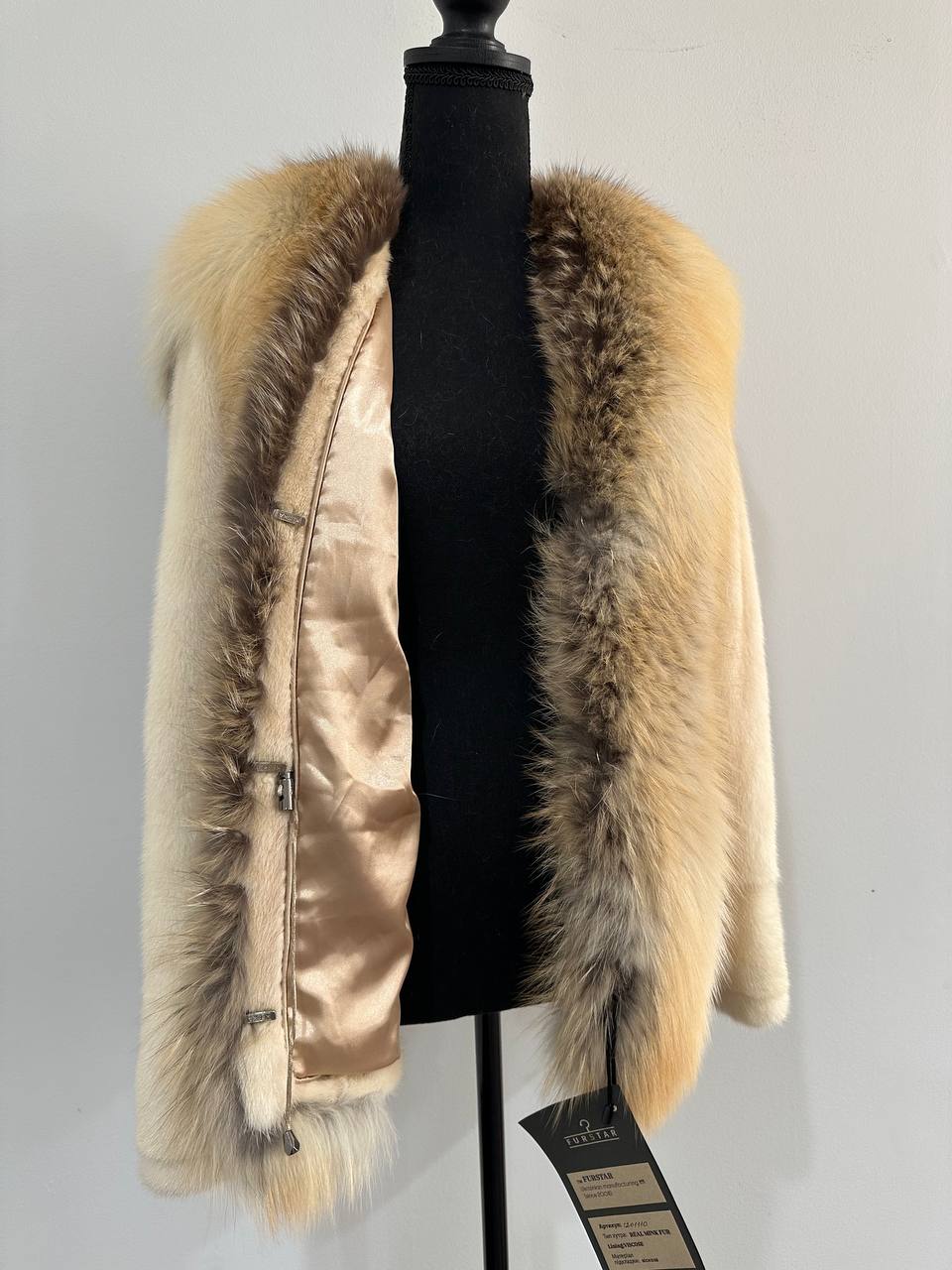 Women's natural mink coat with FOX COLLAR, S size - natural color. The fur is soft, fluffy, warm, the pile is thick, the mink is Finnish SHORT hair, solid plates. Ukrainian manufacturer FURSTAR trade mark. Model - STRIGHT. There are 2 pockets. The sleeves are long - SEE PHOTOES. Fastens with hooks. Viscose lining. Chic fur coat for a fashionista