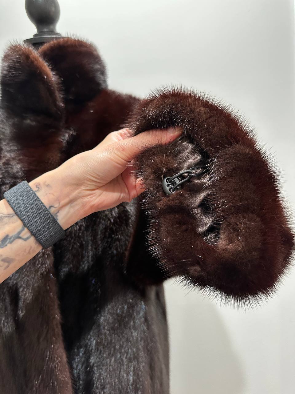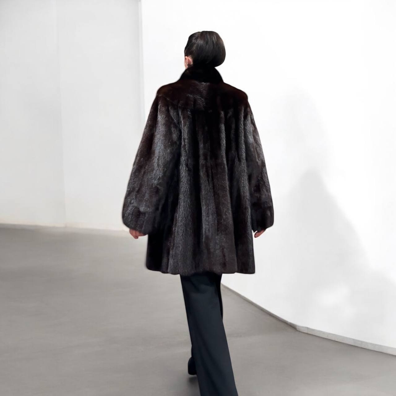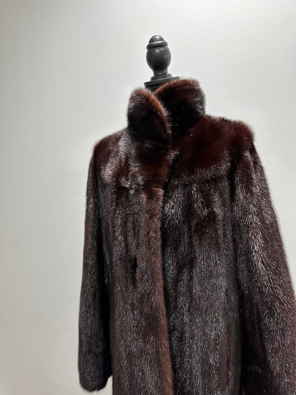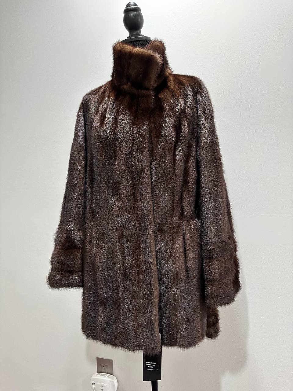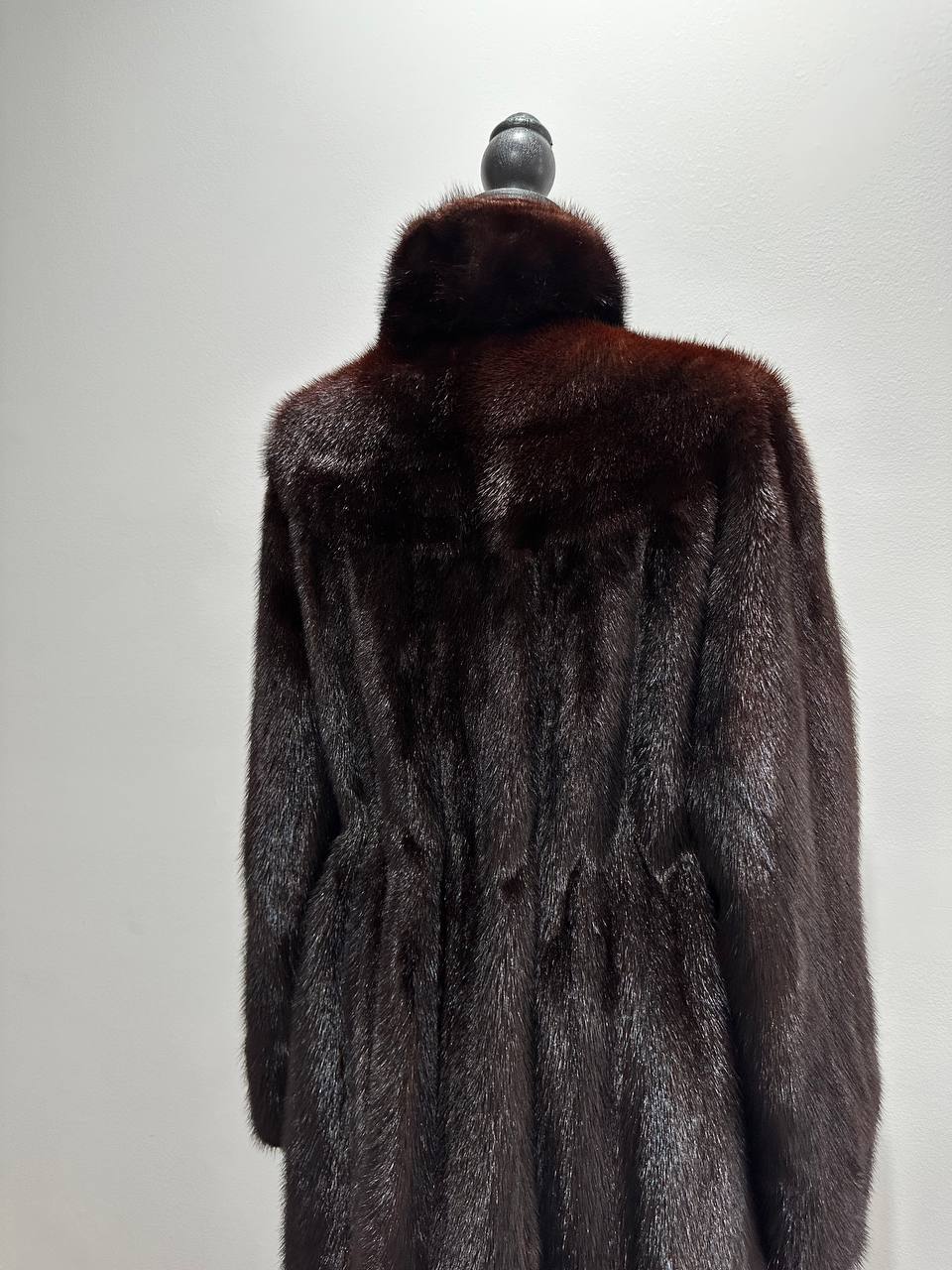Women's mink coat, Scandinavian mink short fur coat with a belt, size L. The fur coat model is straight, fitted with a drawstring at the waist. Stand collar. There are 2 pockets. The fur is soft, thick, shiny. Fastens with hooks. Color - natural, dark brown with a beautiful copper tint. The lining is made of viscose, the hem is sewn - handmade. Manufacturer - Ukraine.