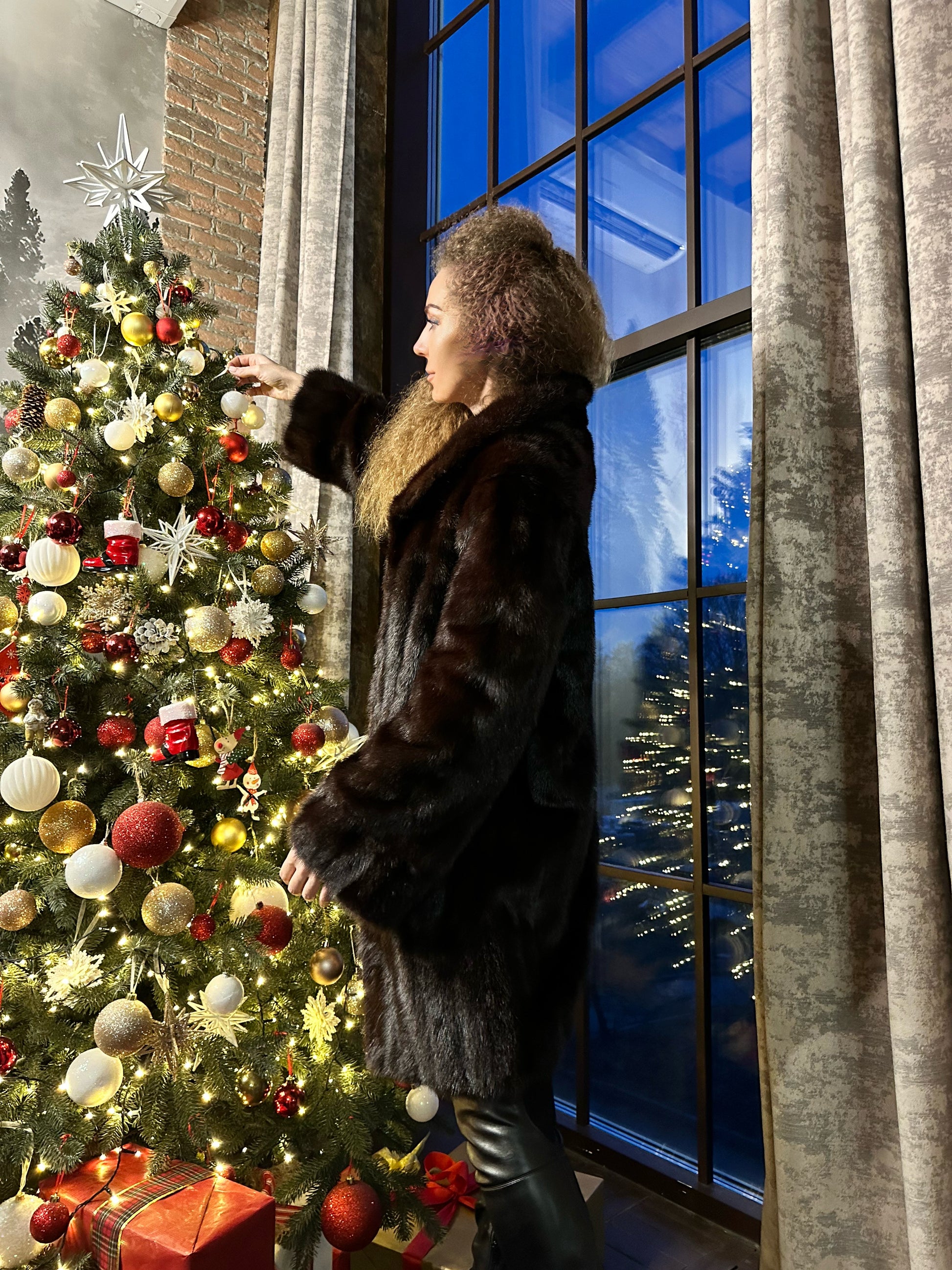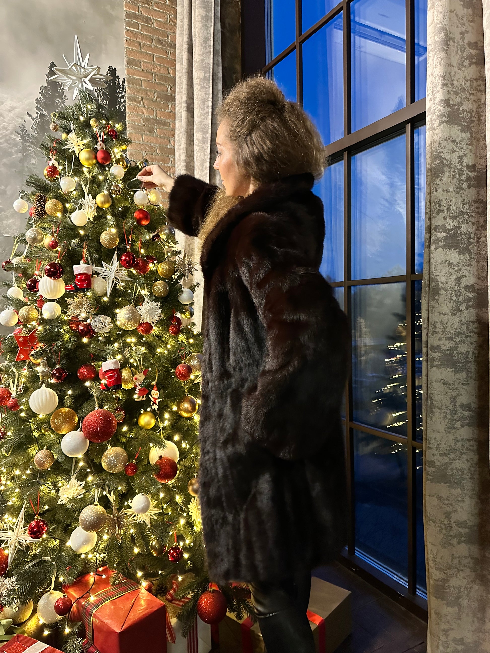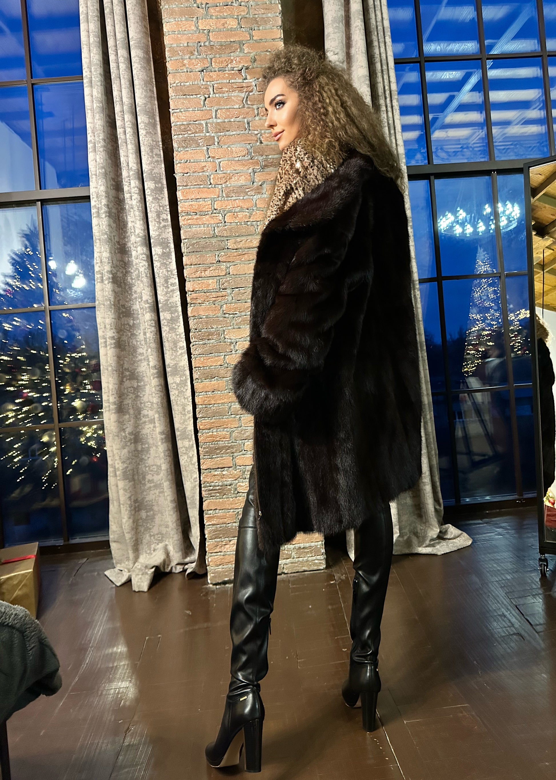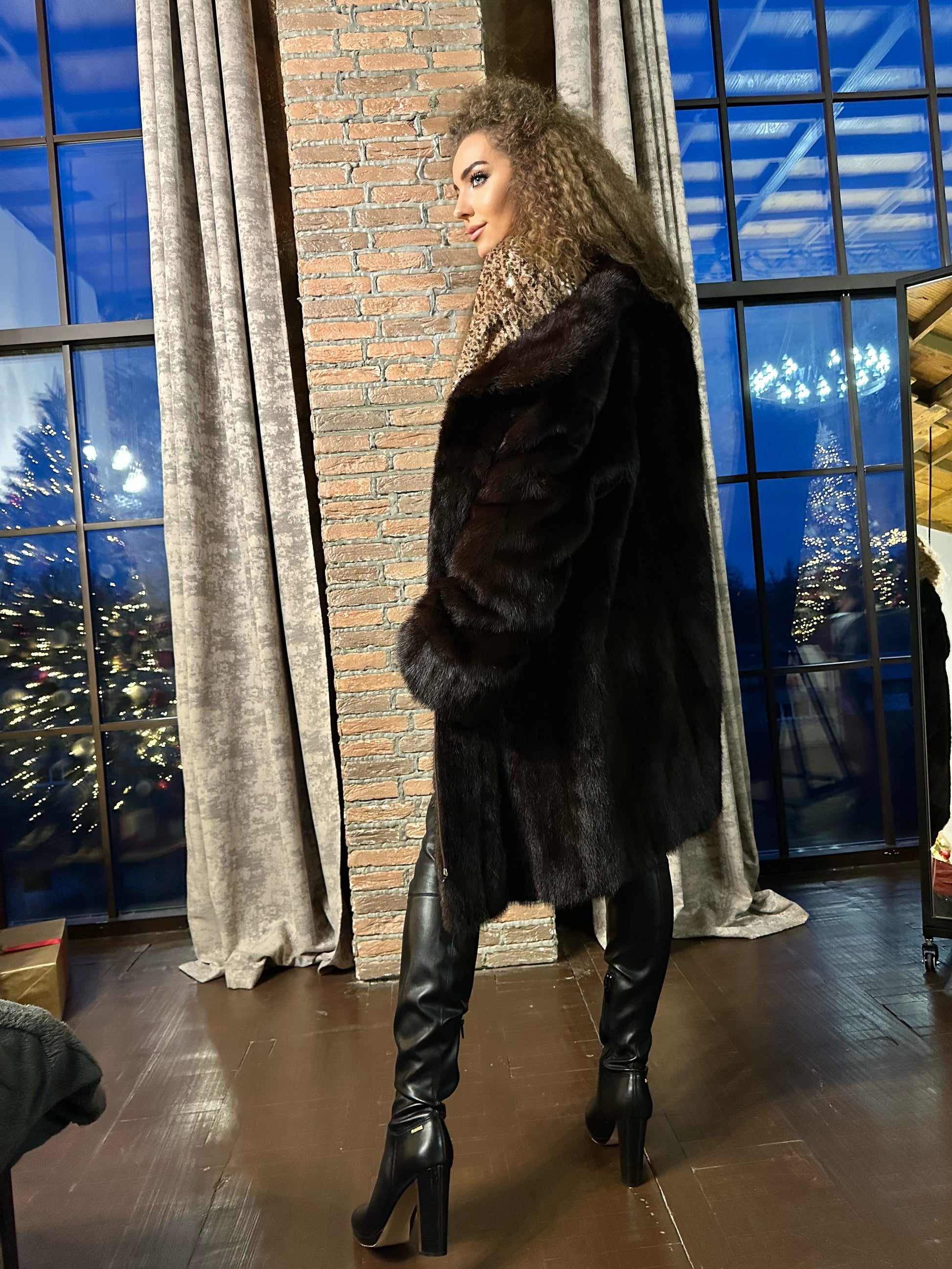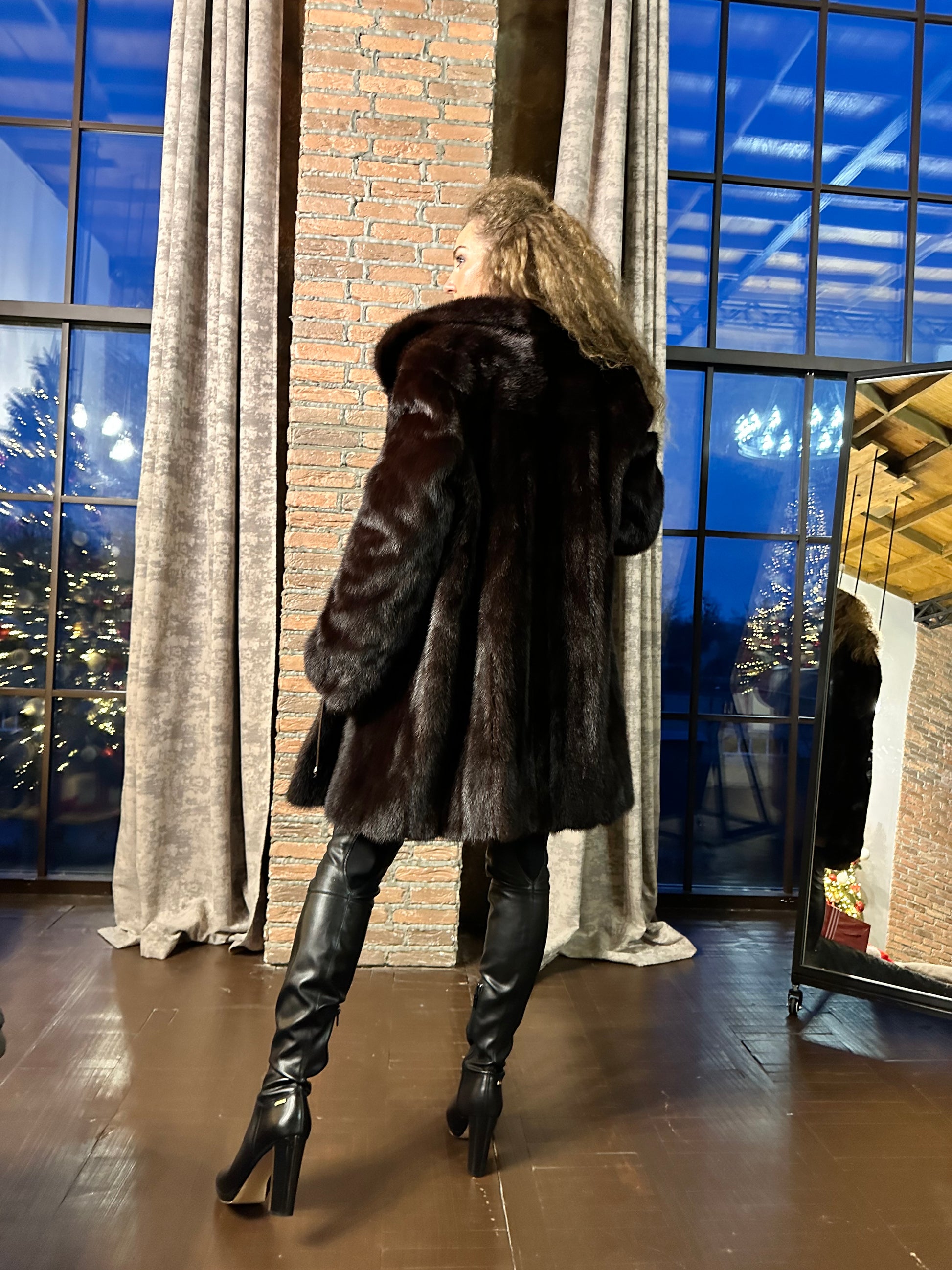 Women's mink coat, Scandinavian mink short fur coat with a belt, size L. The fur coat model is straight, fitted with a drawstring at the waist. Stand collar. There are 2 pockets. The fur is soft, thick, shiny. Fastens with hooks. Color - natural, dark brown with a beautiful copper tint. The lining is made of viscose, the hem is sewn - handmade. Manufacturer - Ukraine.