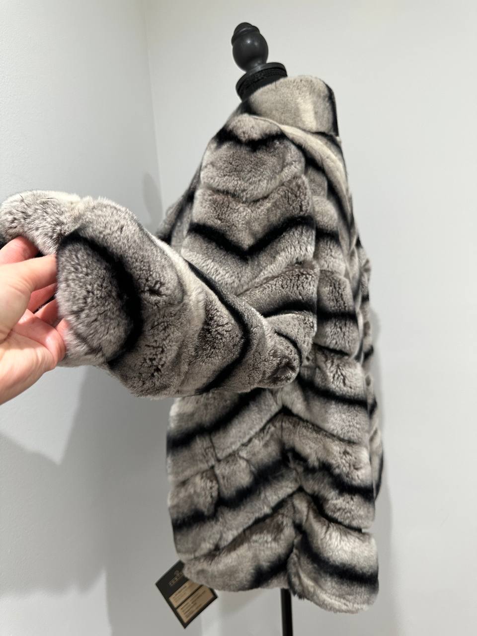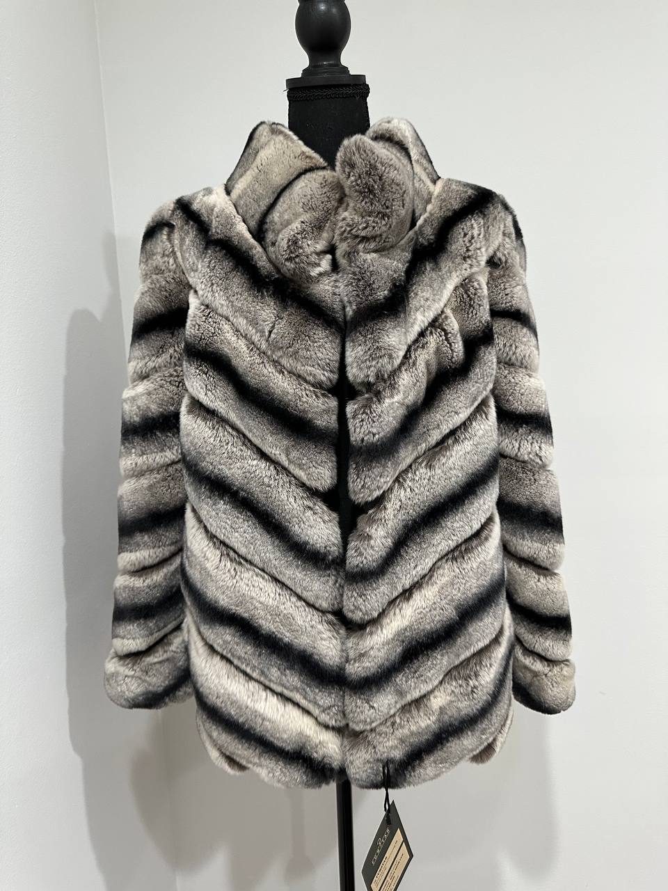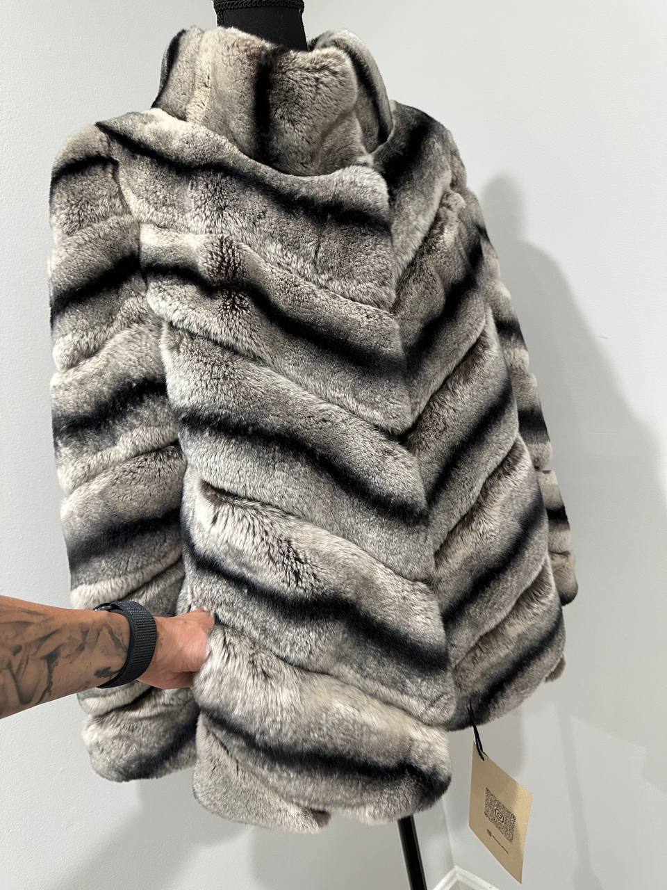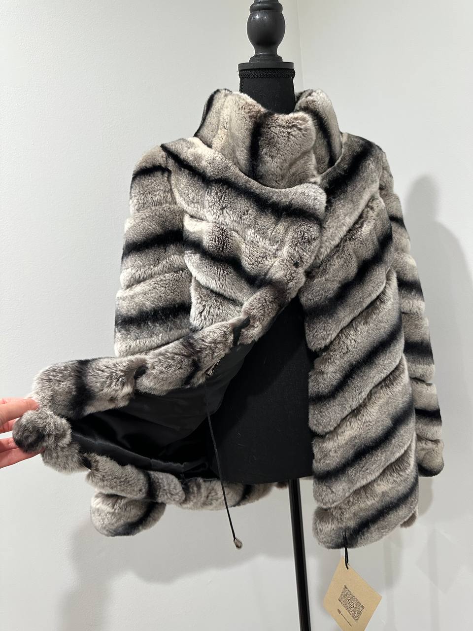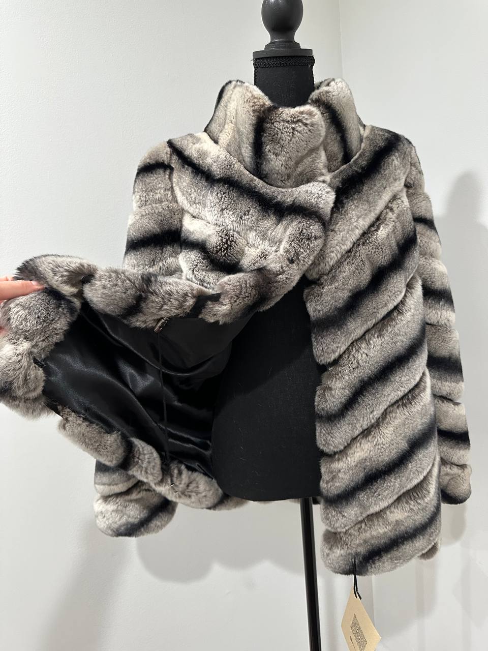 NEW Chinchilla Look Rex Rabbit Fur Jacket – Soft Luxury Coat – Size M 1201139