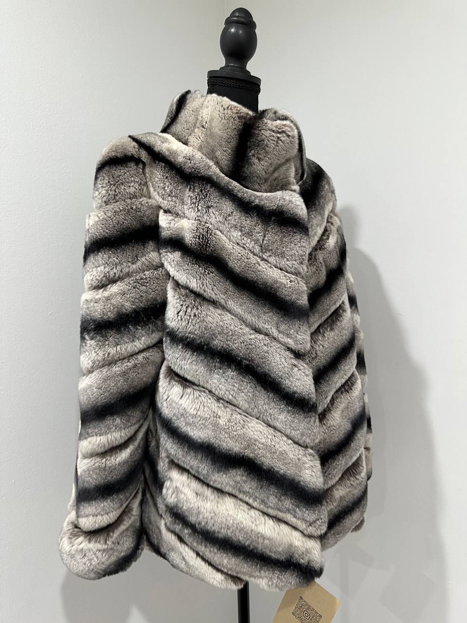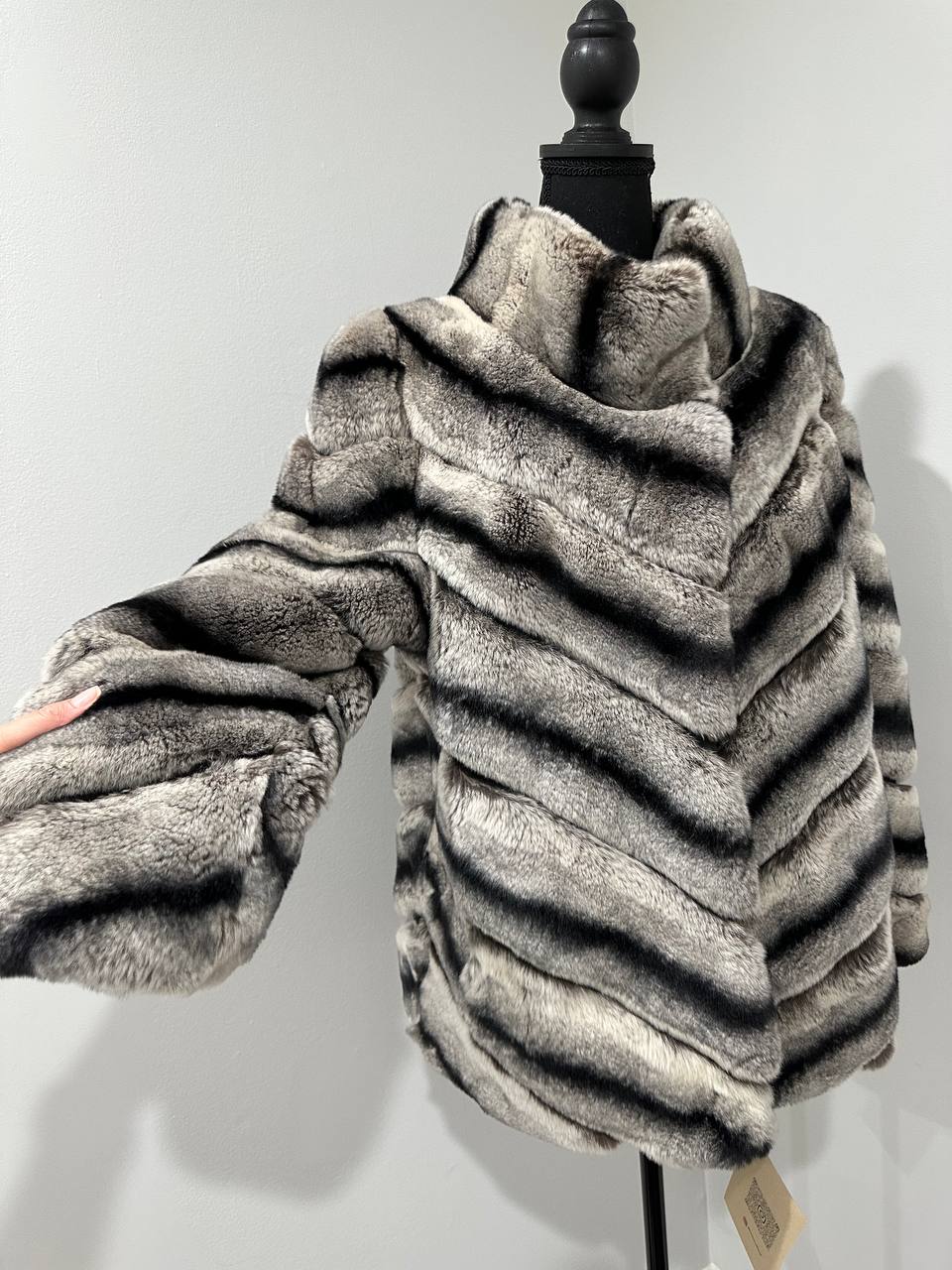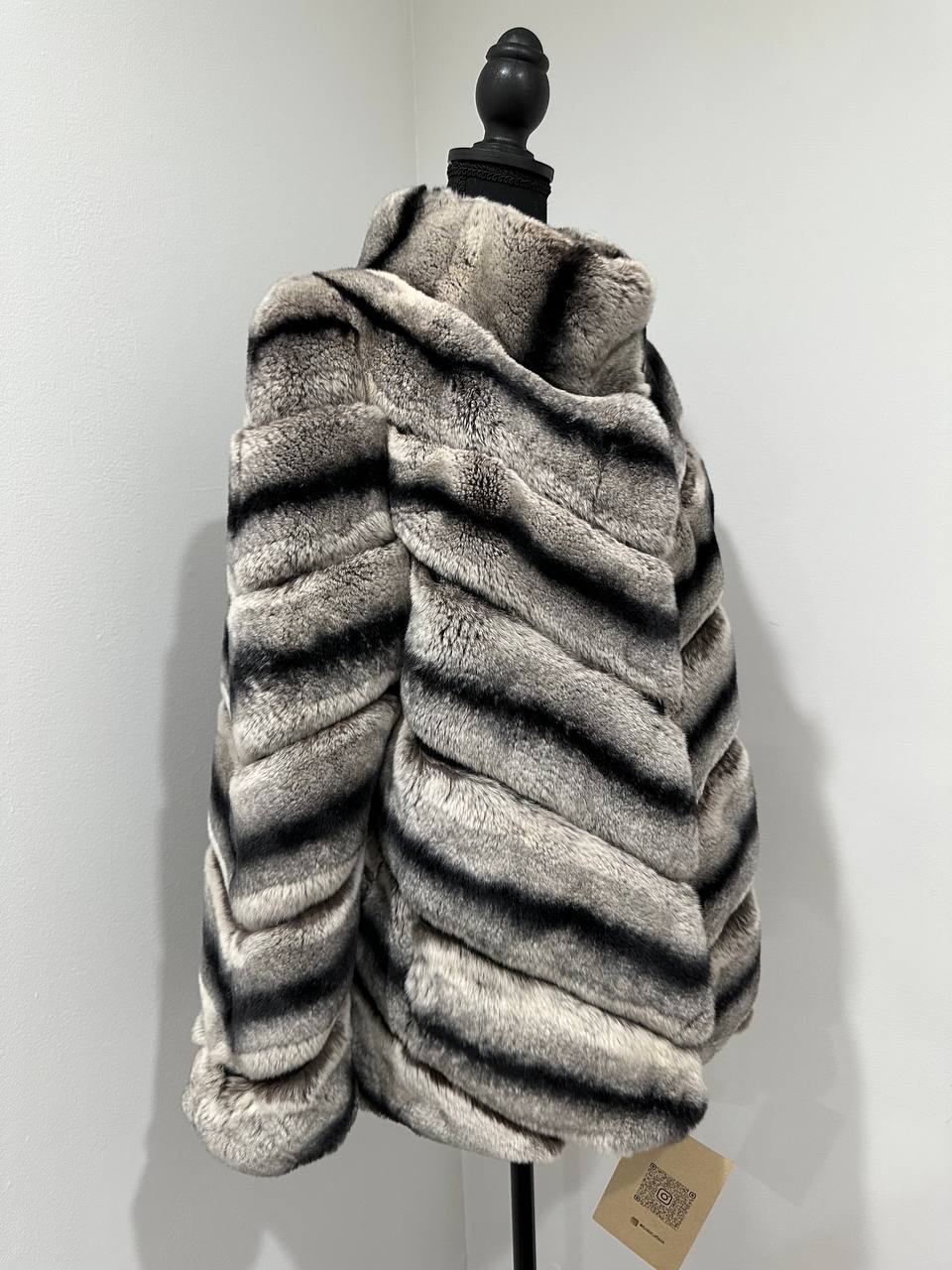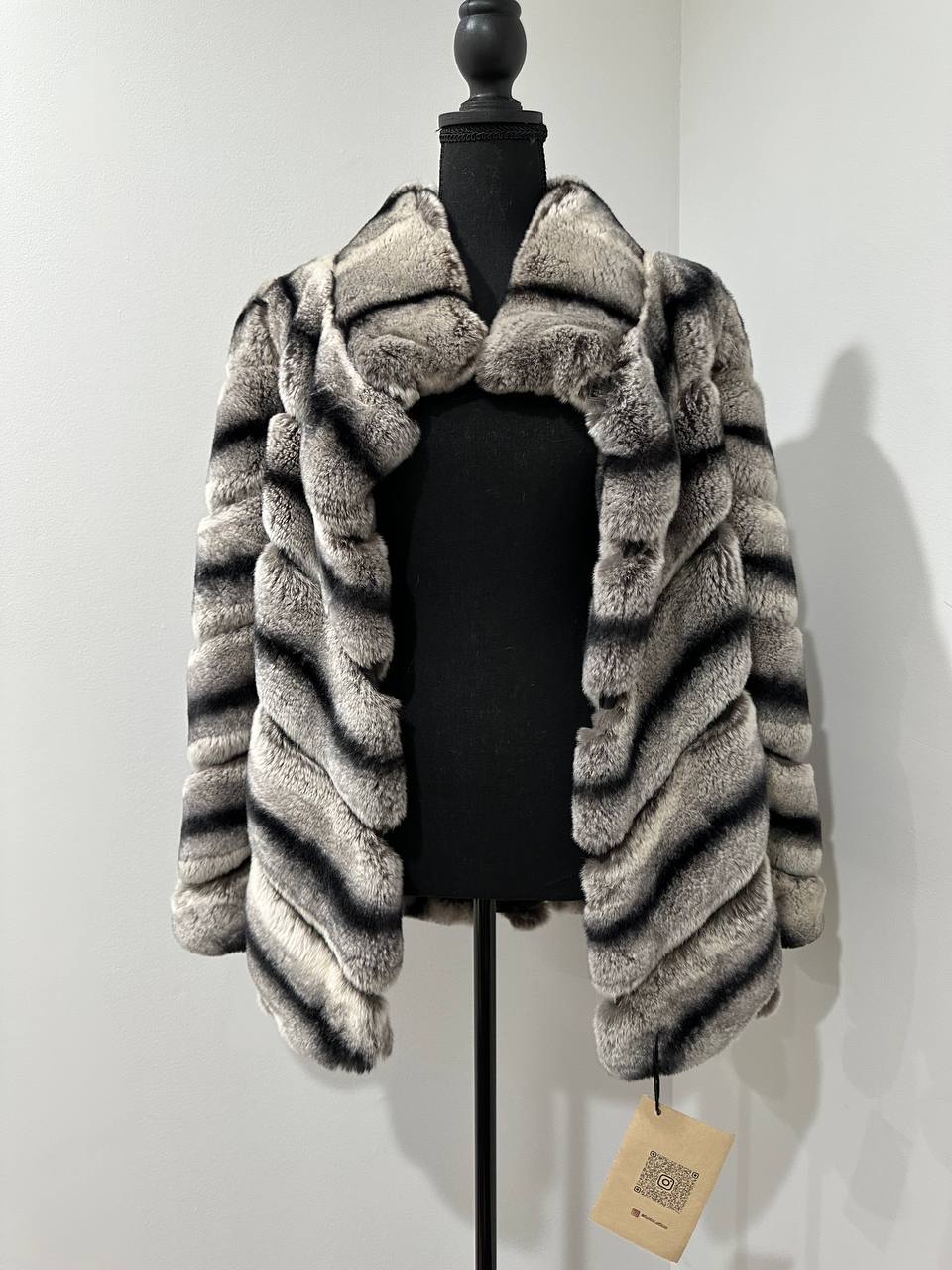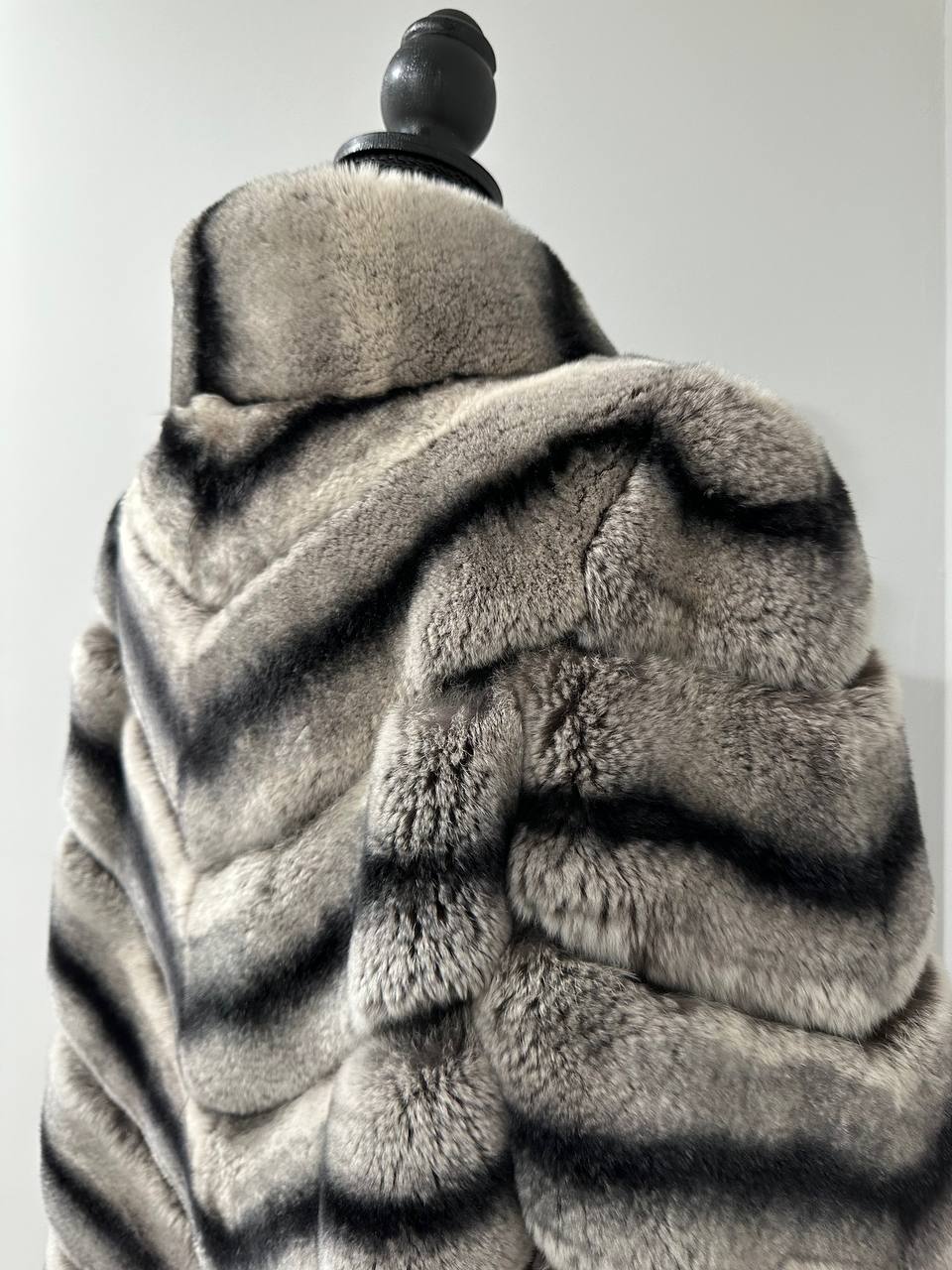 NEW Chinchilla Look Rex Rabbit Fur Jacket – Soft Luxury Coat – Size M 1201139