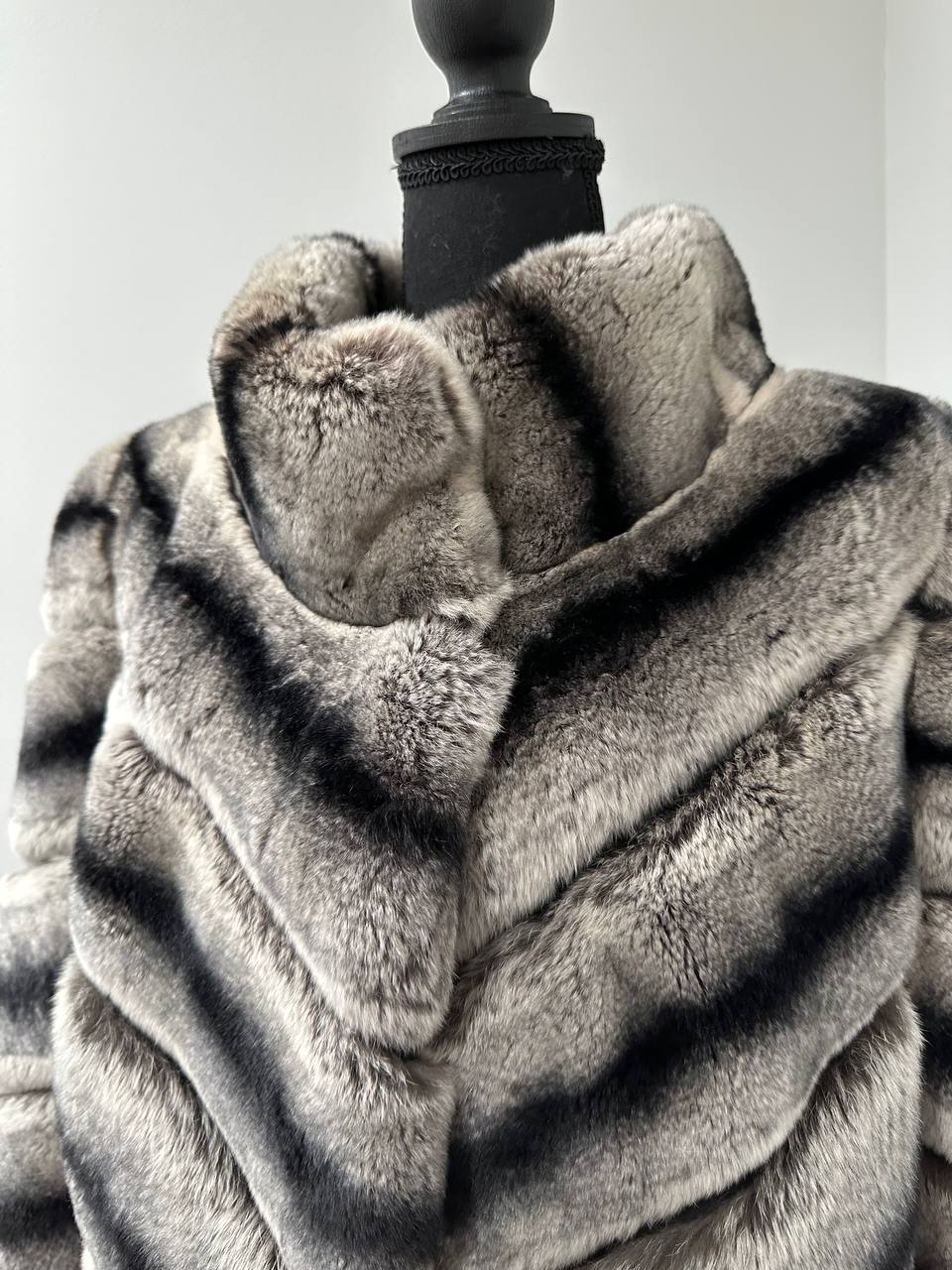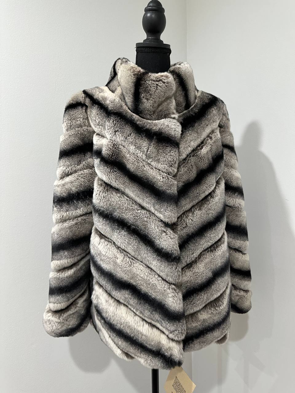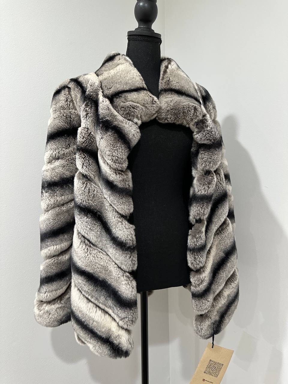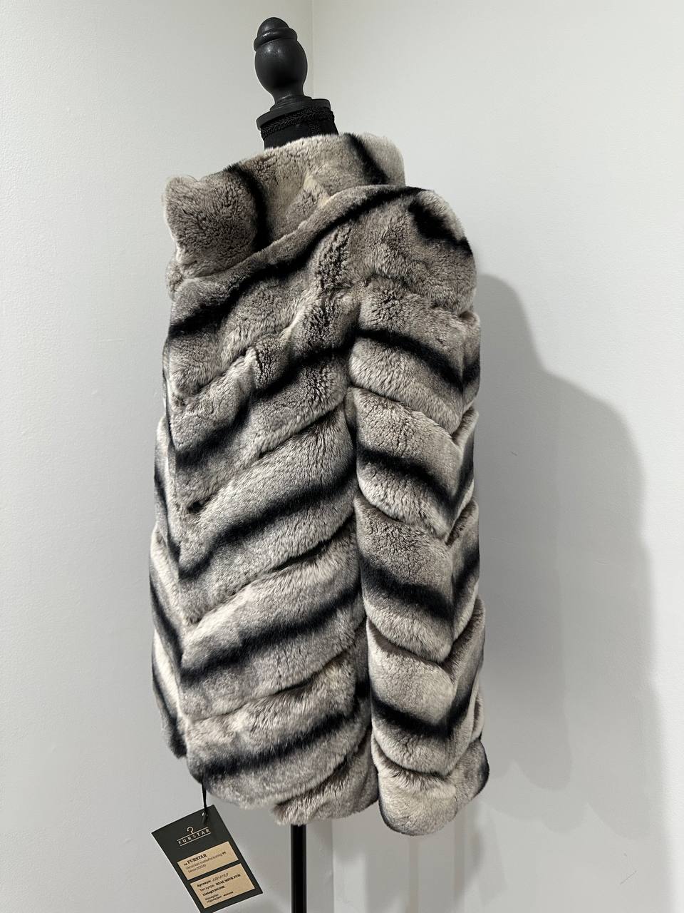 NEW Chinchilla Look Rex Rabbit Fur Jacket – Soft Luxury Coat – Size M 1201139