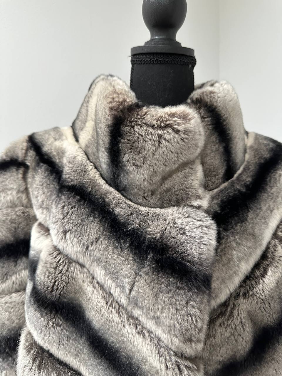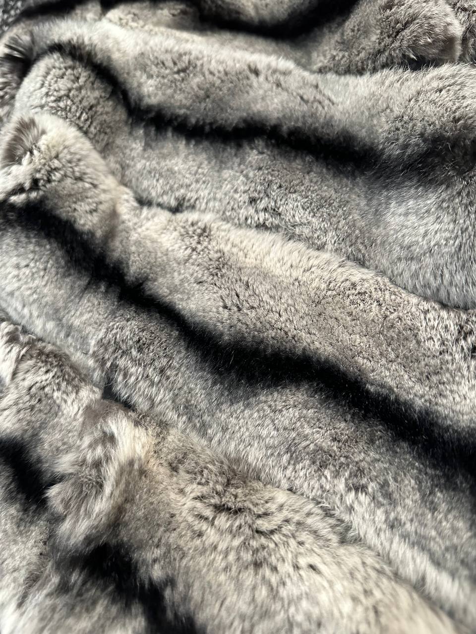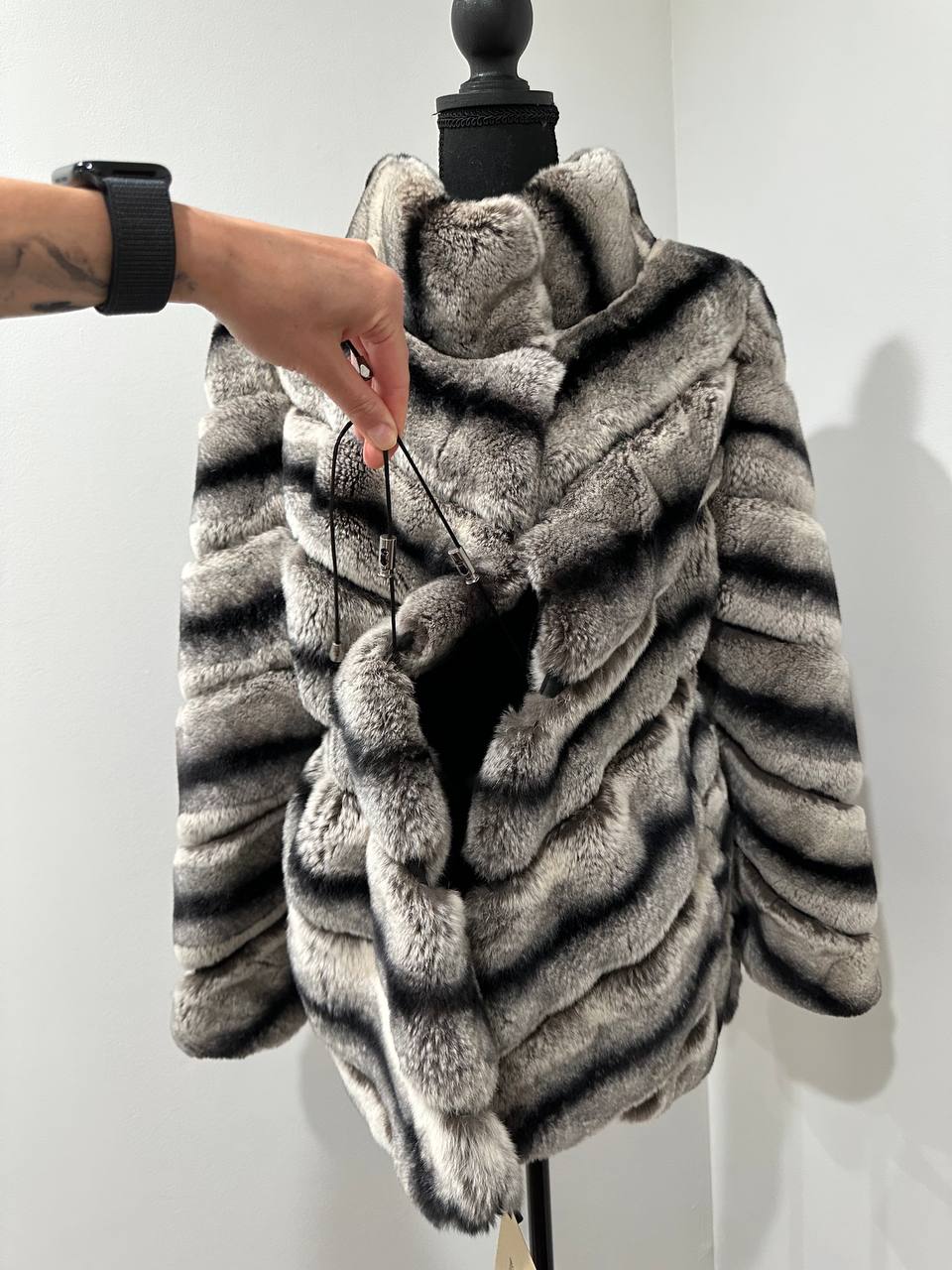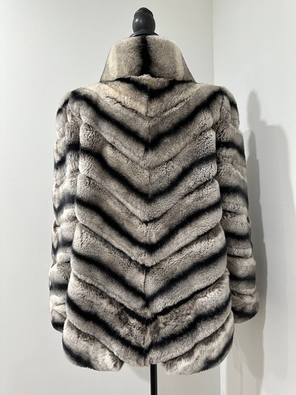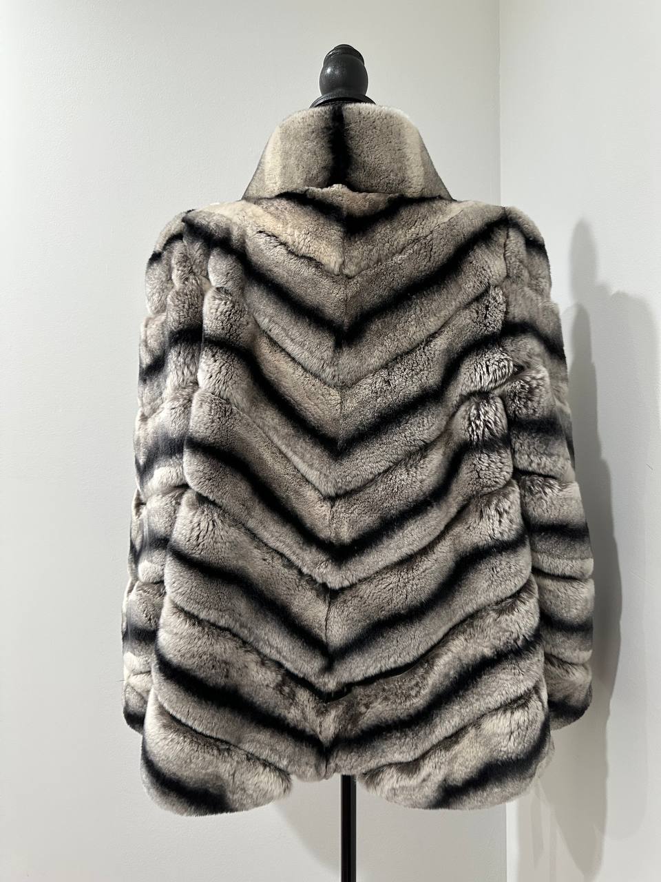 NEW Chinchilla Look Rex Rabbit Fur Jacket – Soft Luxury Coat – Size M 1201139