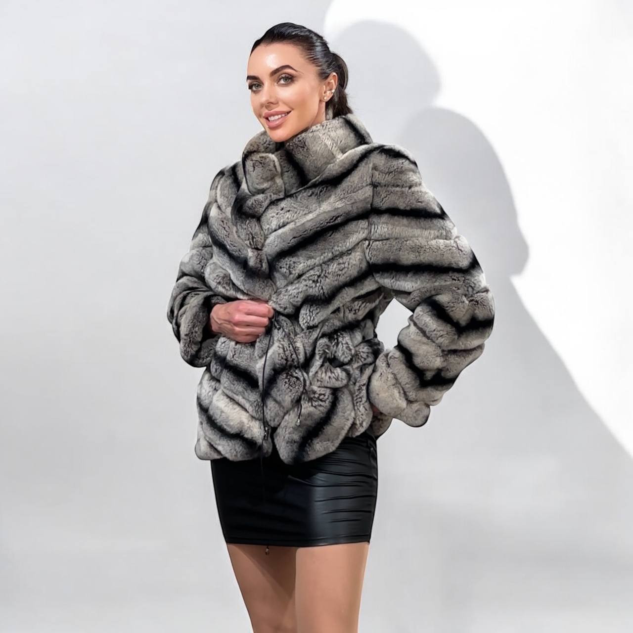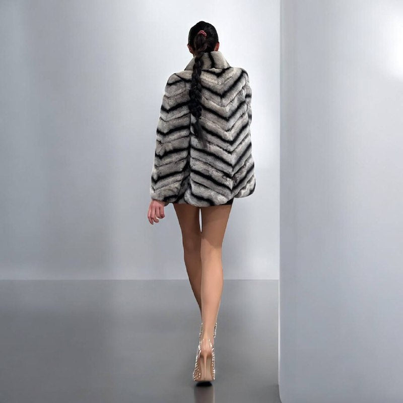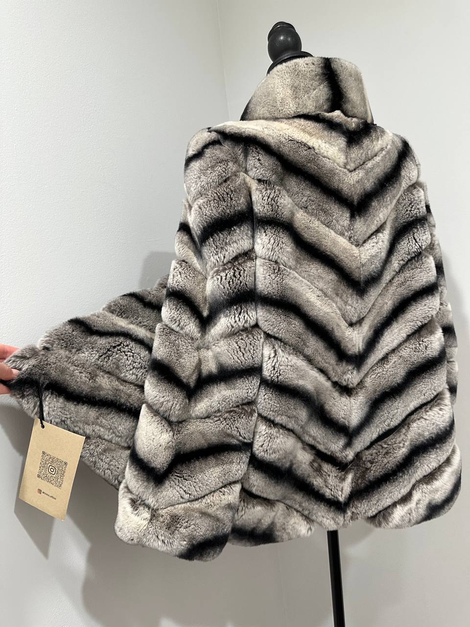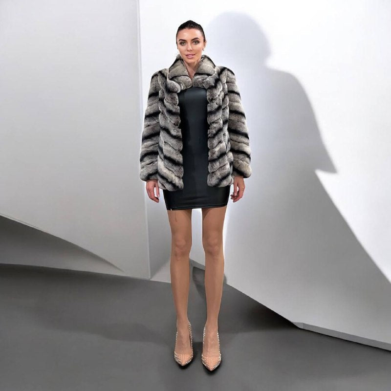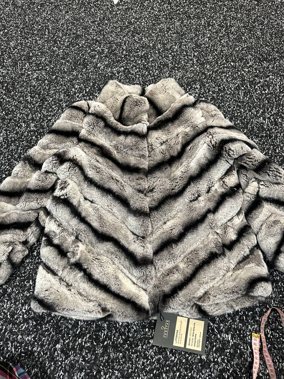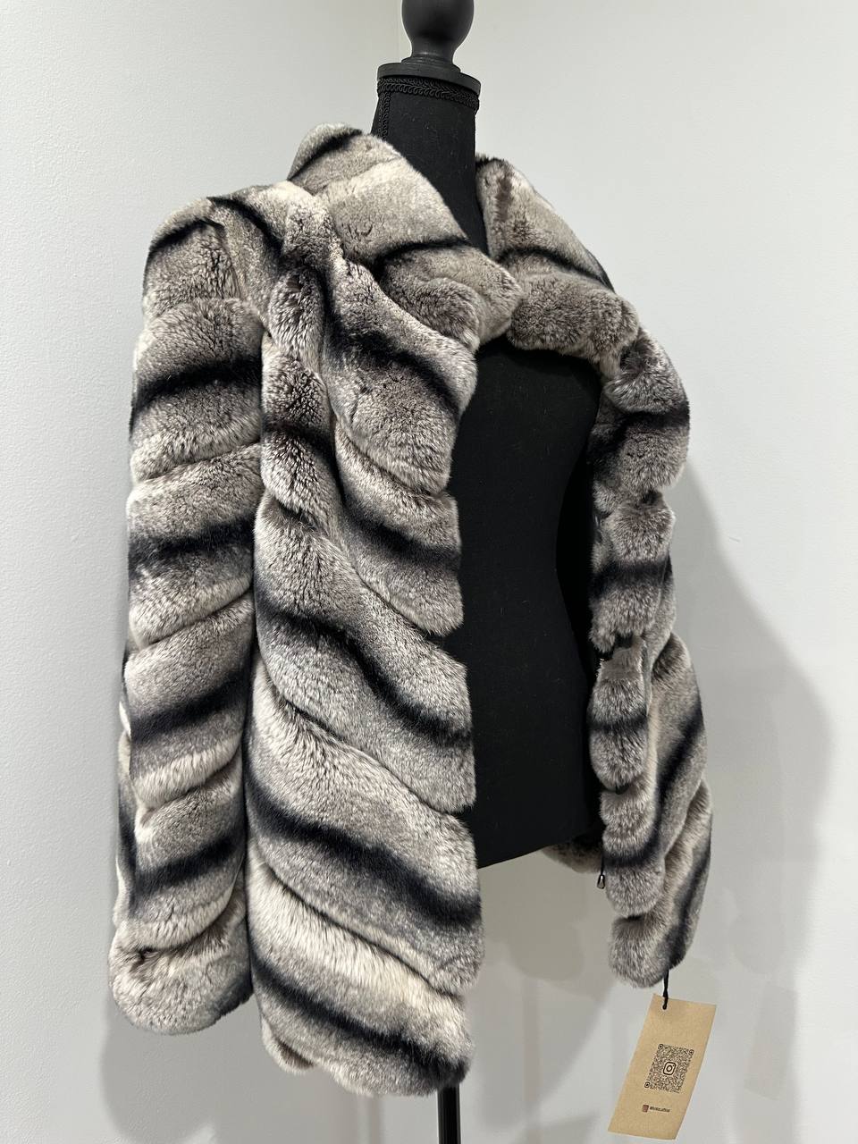 NEW Chinchilla Look Rex Rabbit Fur Jacket – Soft Luxury Coat – Size M 1201139