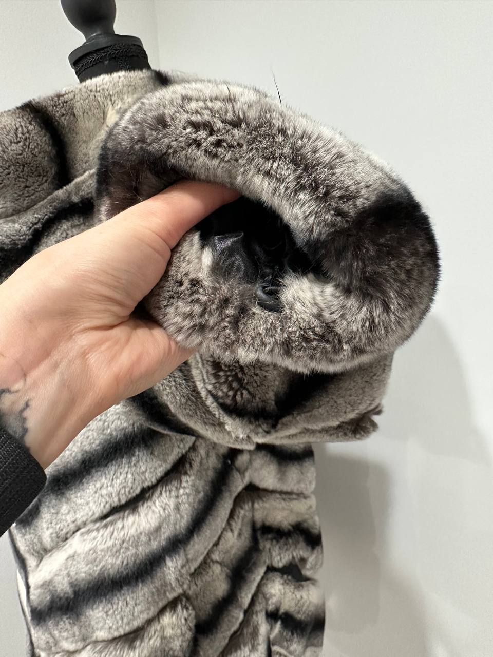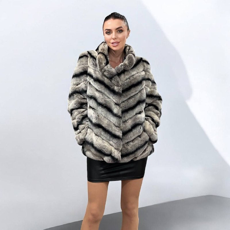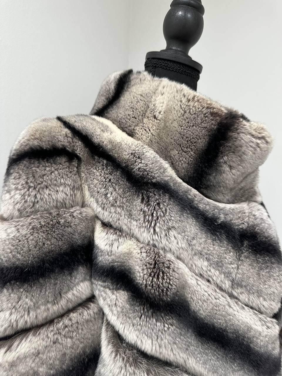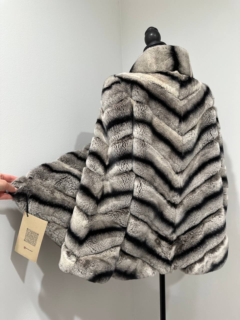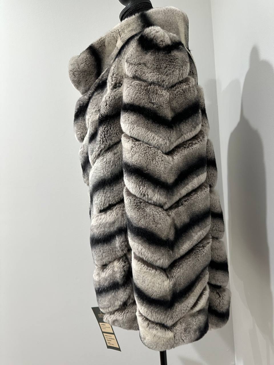 NEW Chinchilla Look Rex Rabbit Fur Jacket – Soft Luxury Coat – Size M 1201139