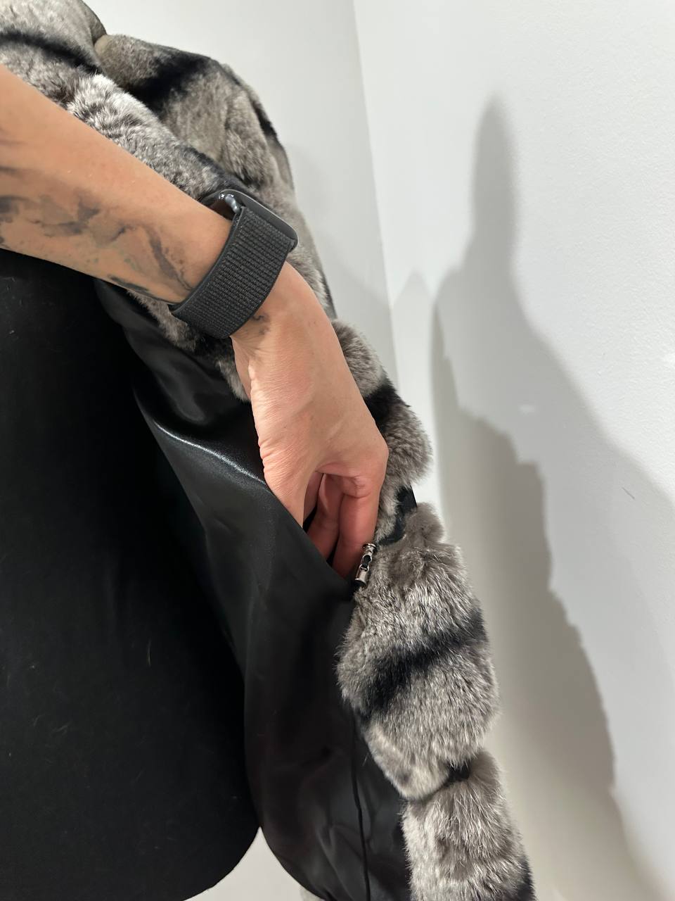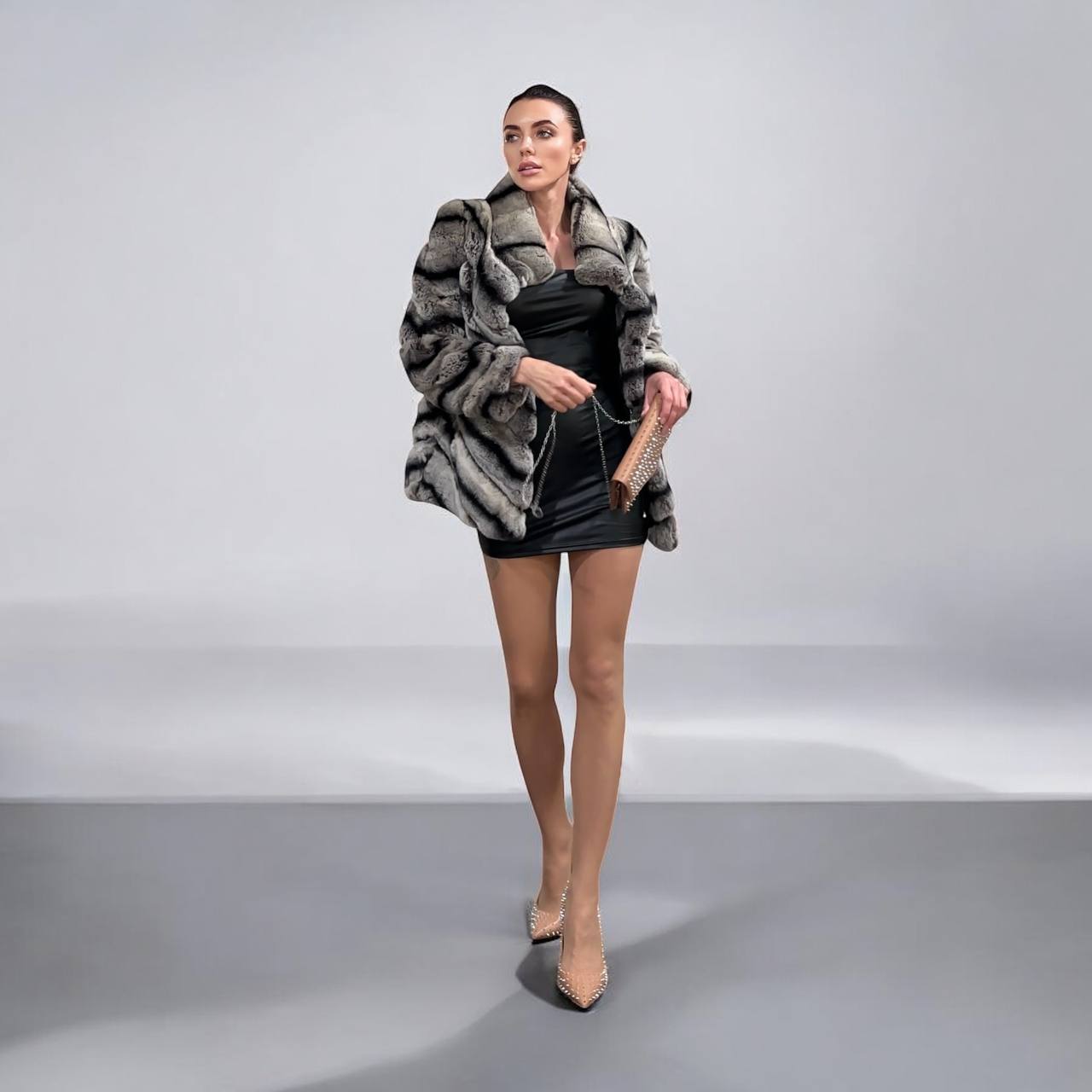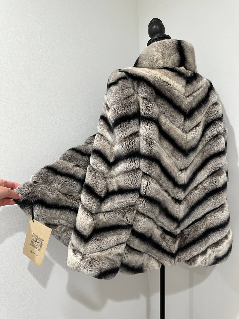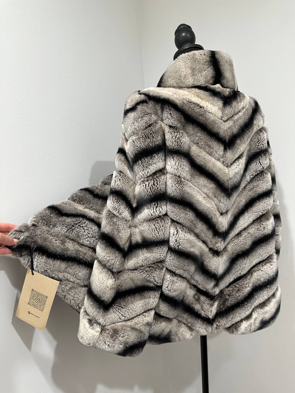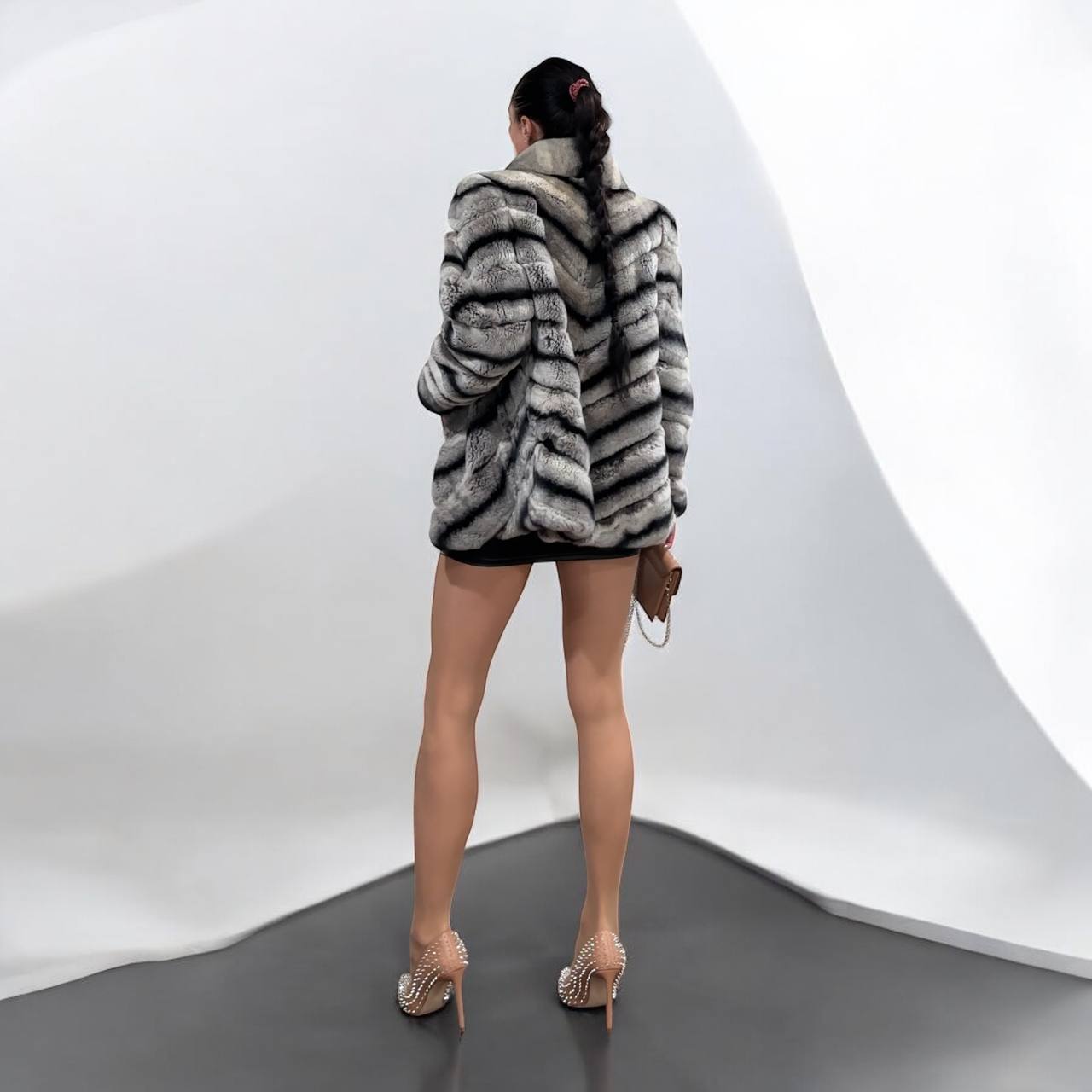 NEW Chinchilla Look Rex Rabbit Fur Jacket – Soft Luxury Coat – Size M 1201139