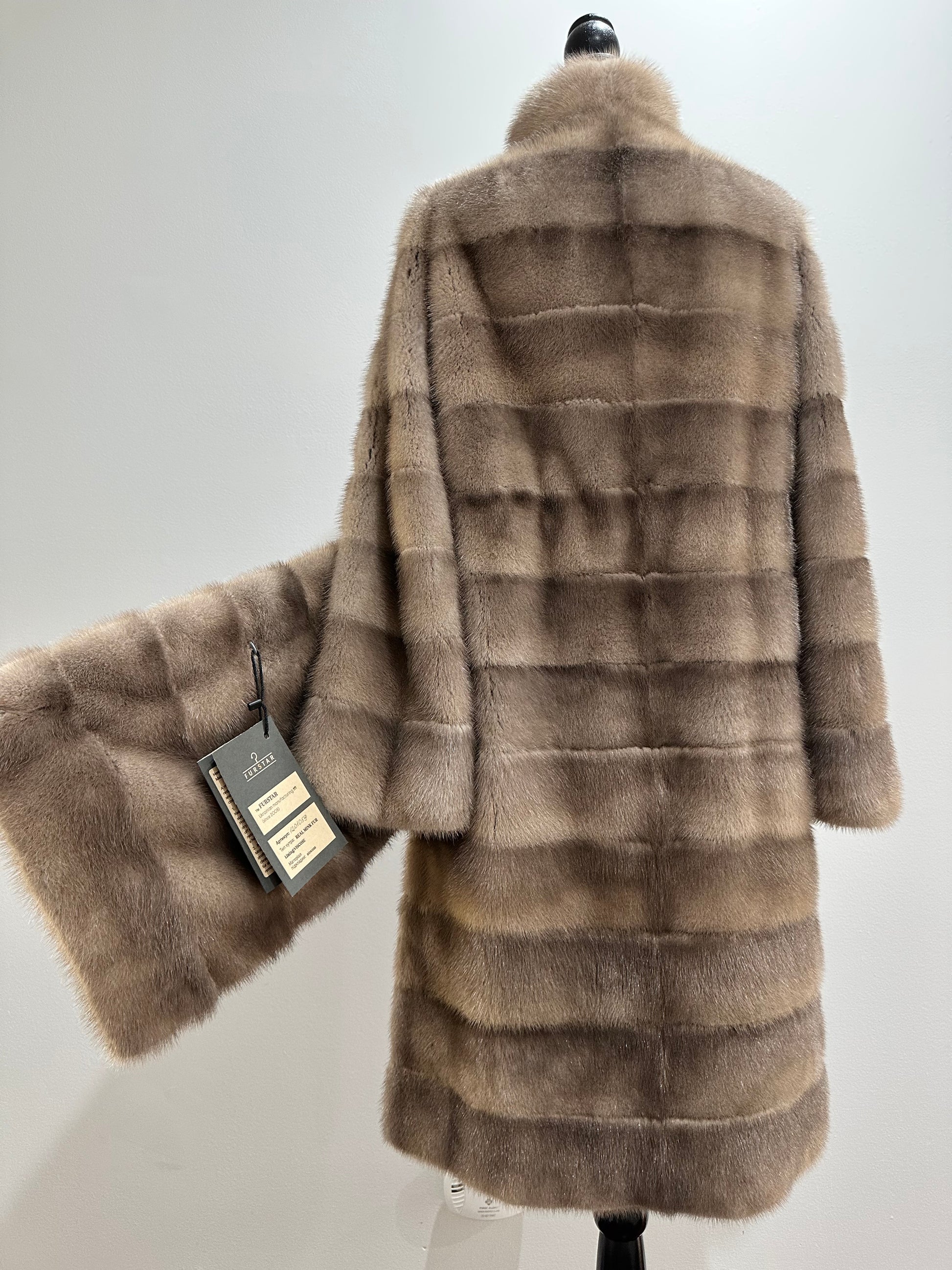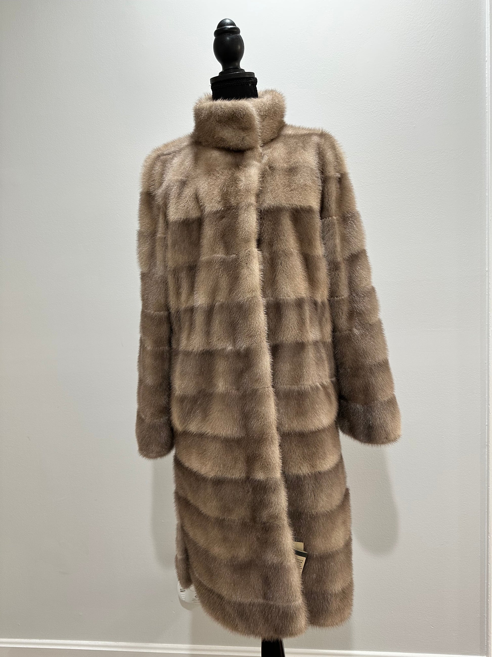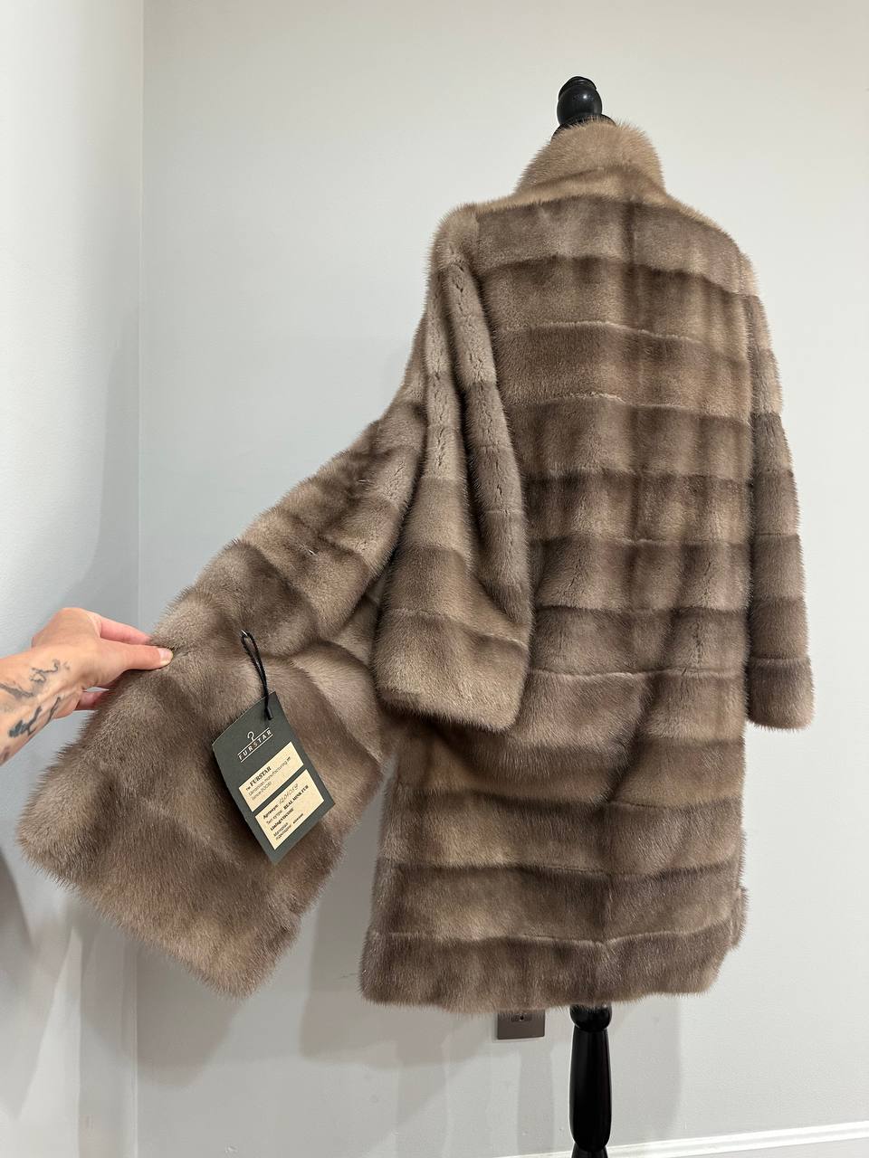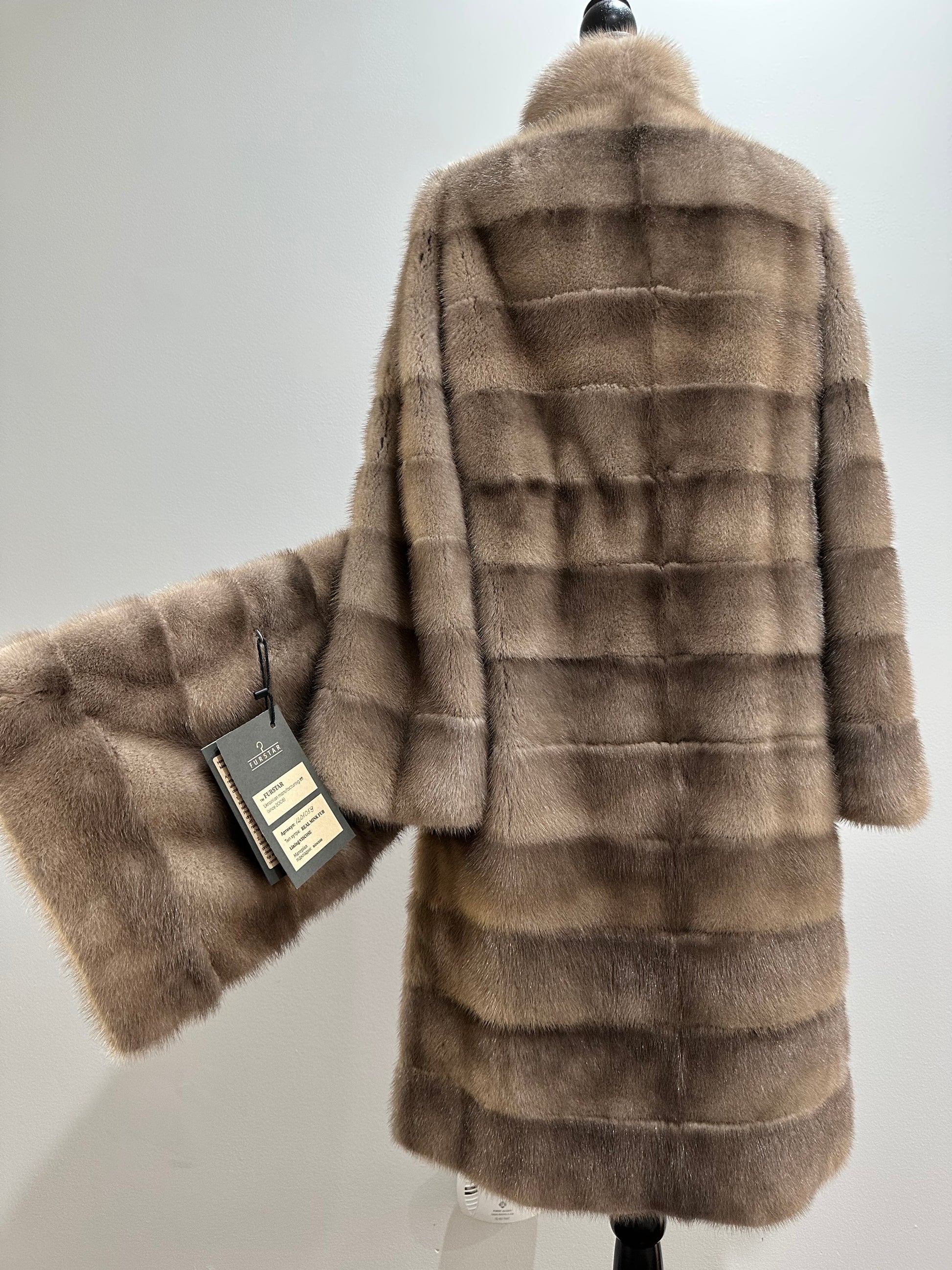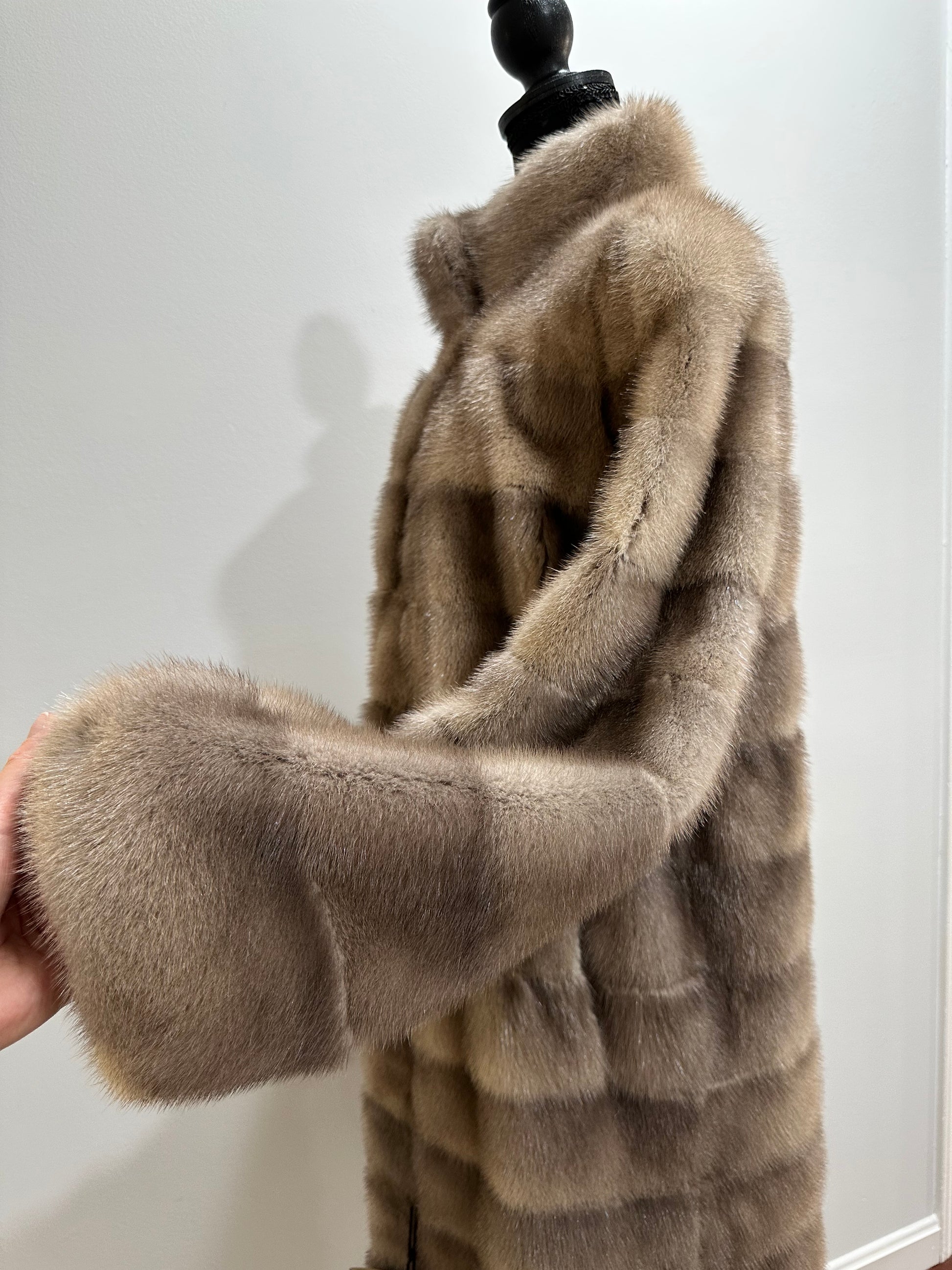 New LONG coat JACKET size M REAL FULL SKIN FUR MINK 1201059 HORIZONTAL