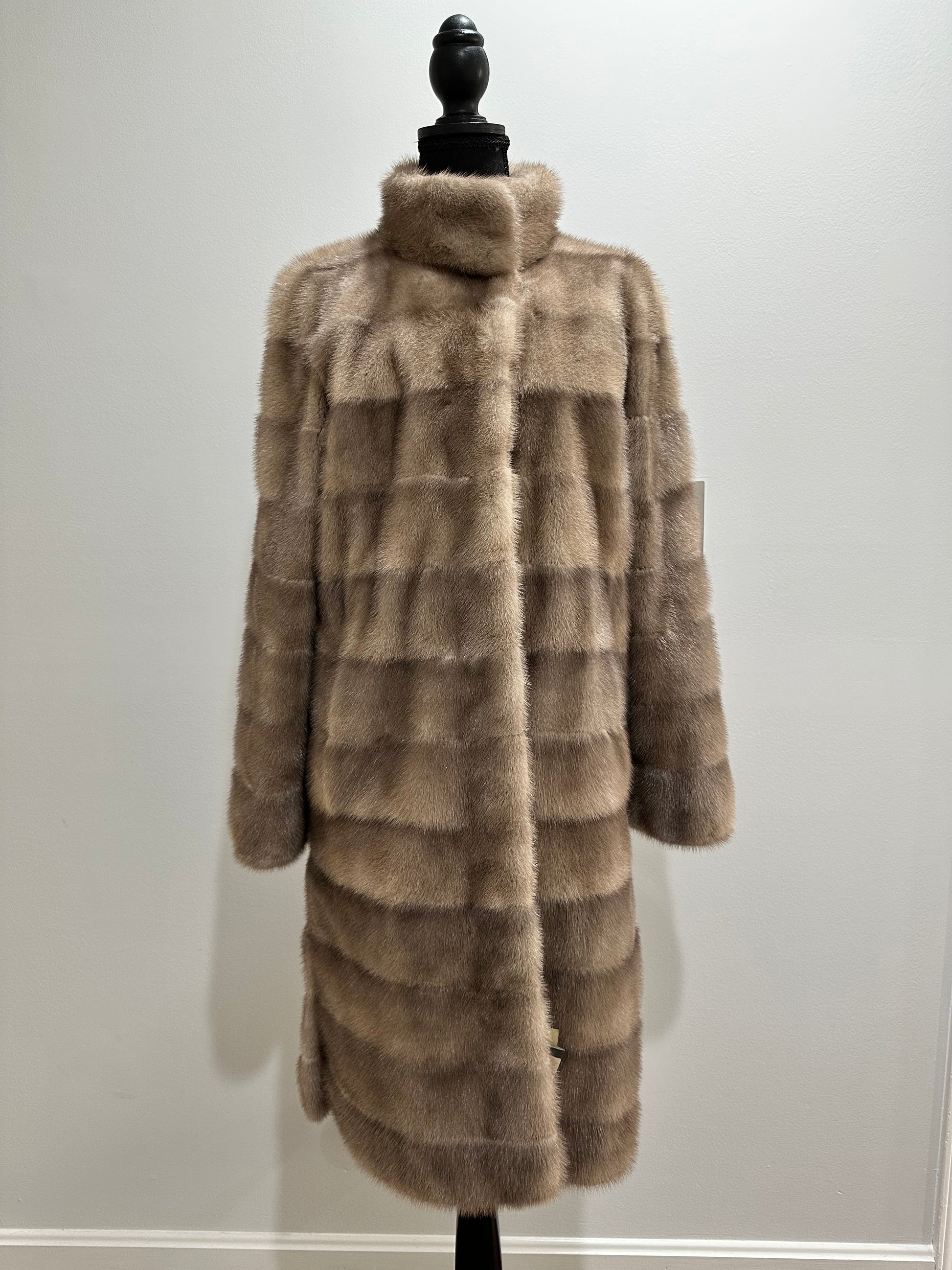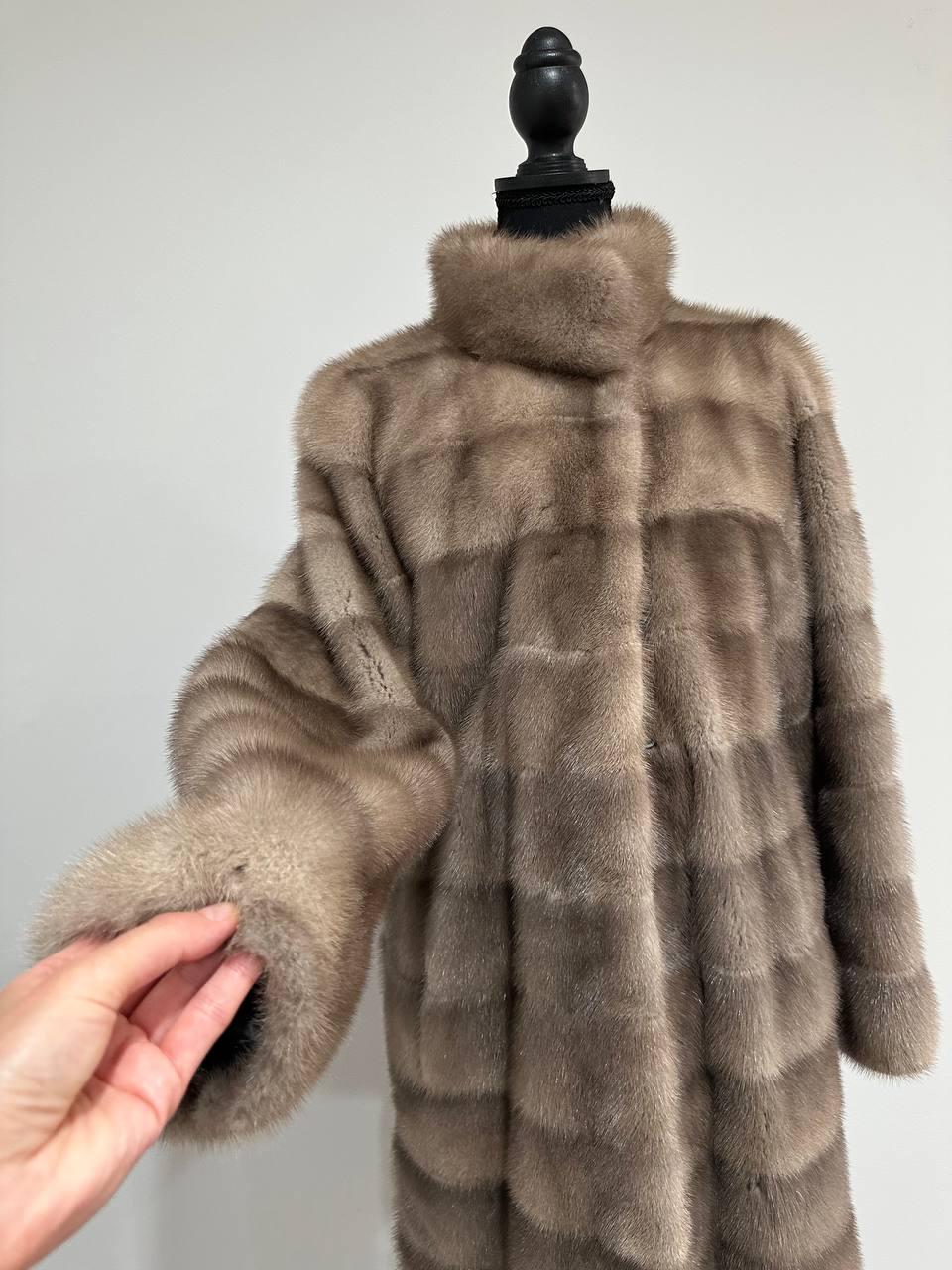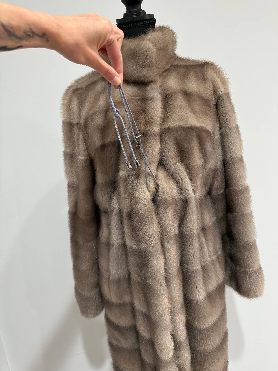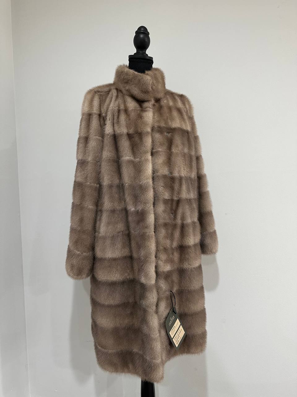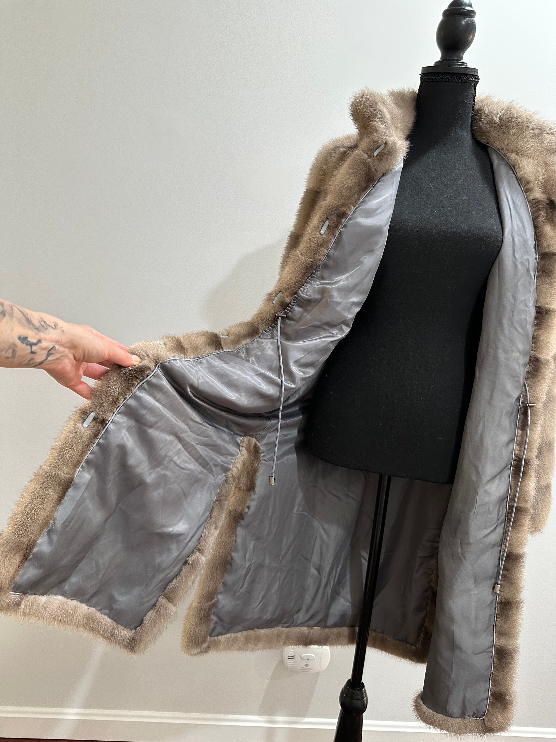 New LONG coat JACKET size M REAL FULL SKIN FUR MINK 1201059 HORIZONTAL