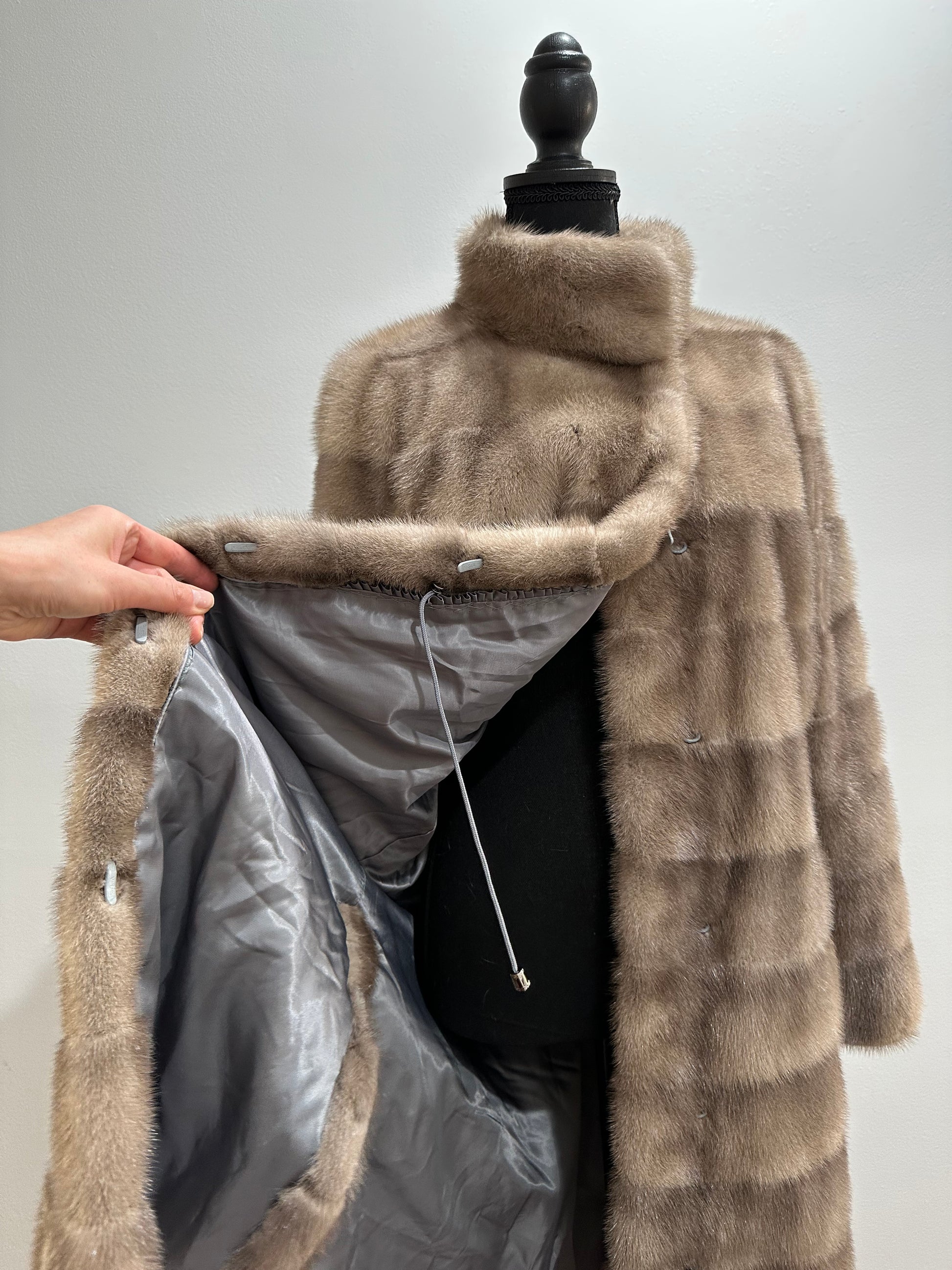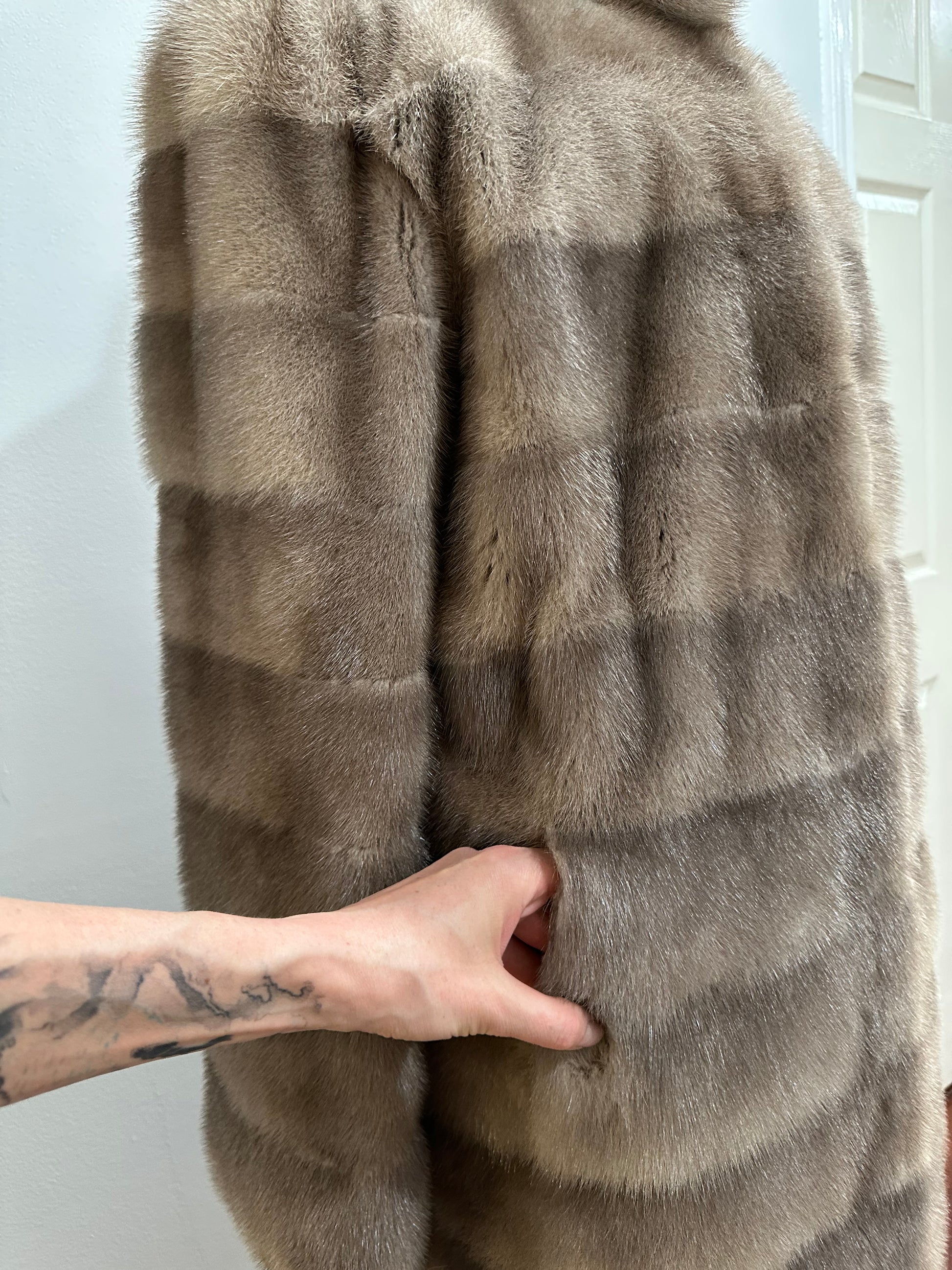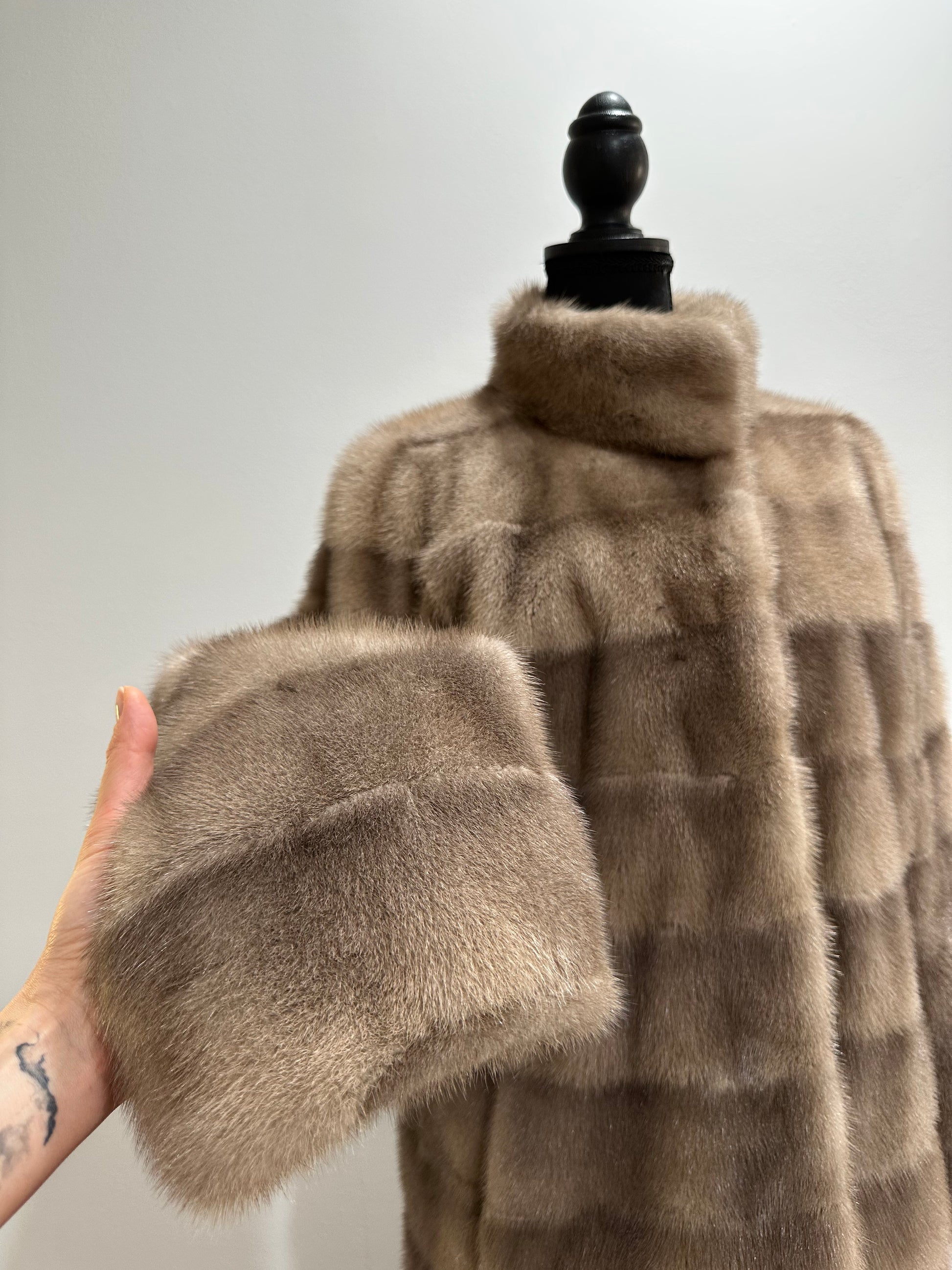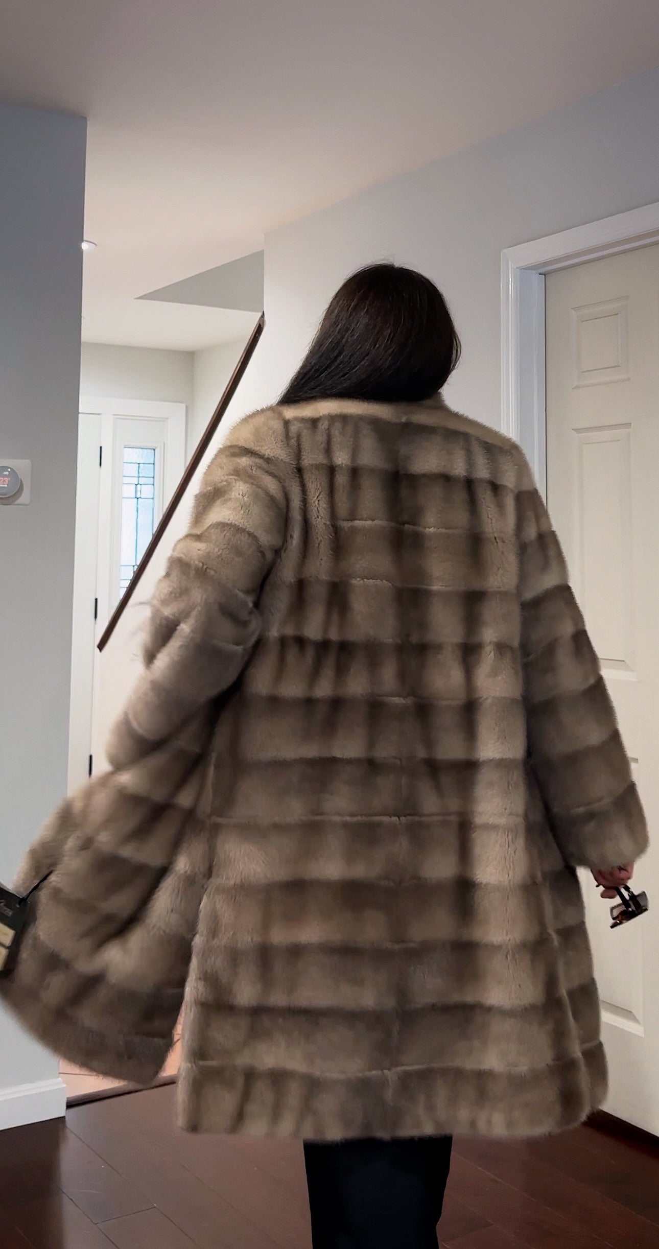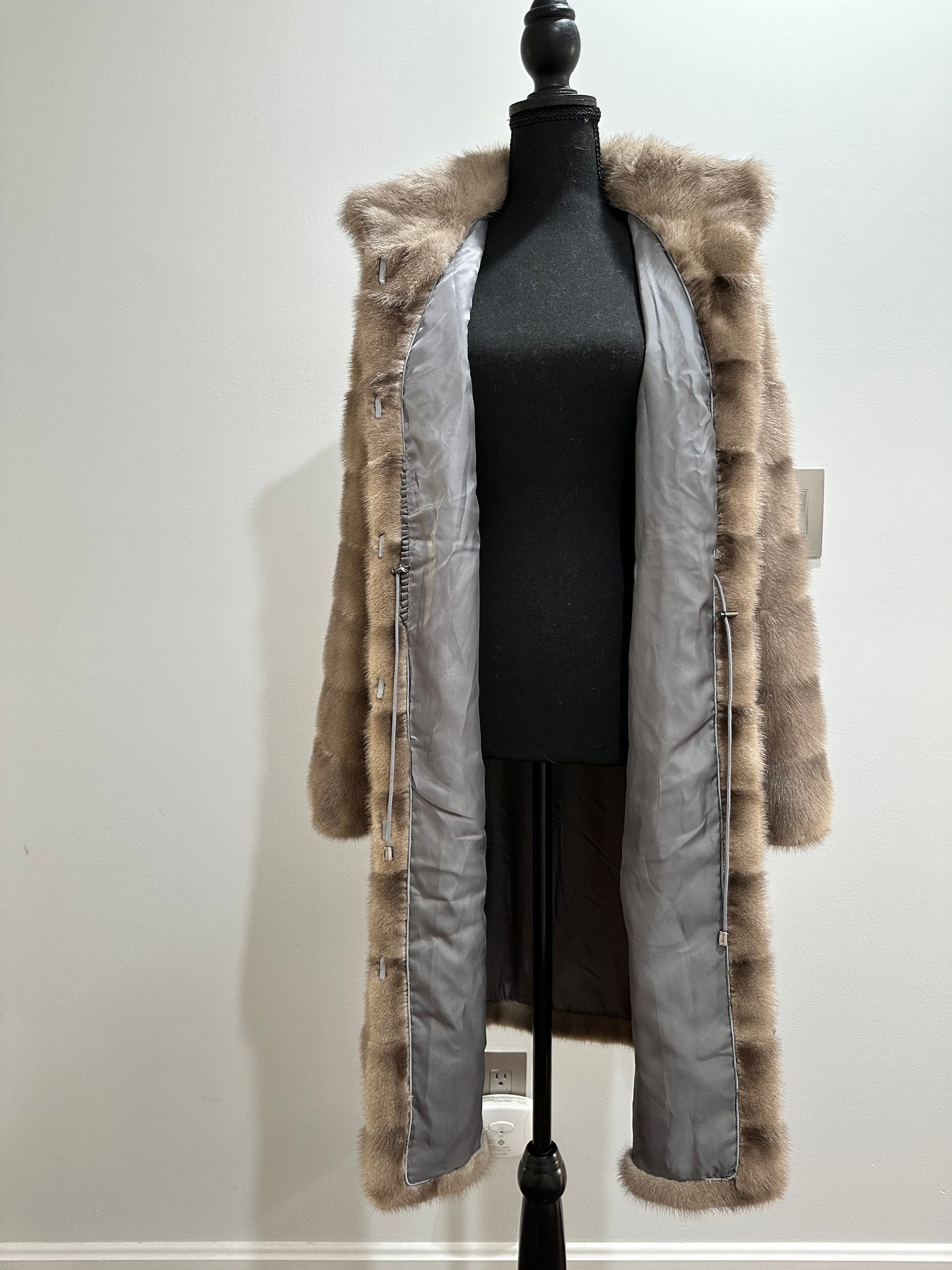 New LONG coat JACKET size M REAL FULL SKIN FUR MINK 1201059 HORIZONTAL