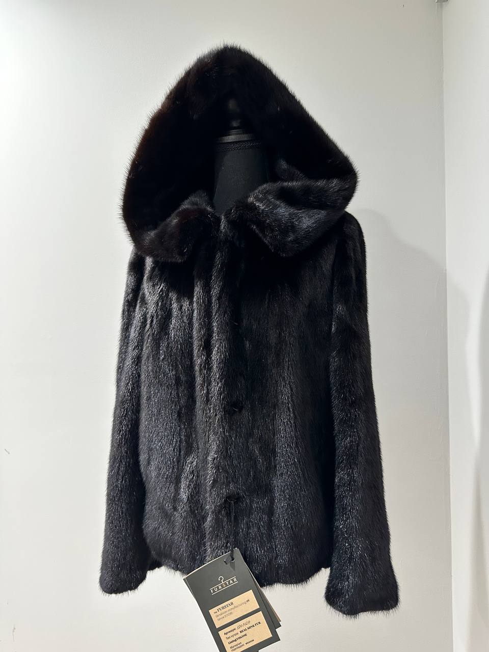Elevate your winter style with this stunning mink jacket from the renowned Ukrainian brand FURSTAR. Expertly crafted from genuine natural black mink, this piece is the epitome of timeless elegance and luxury.