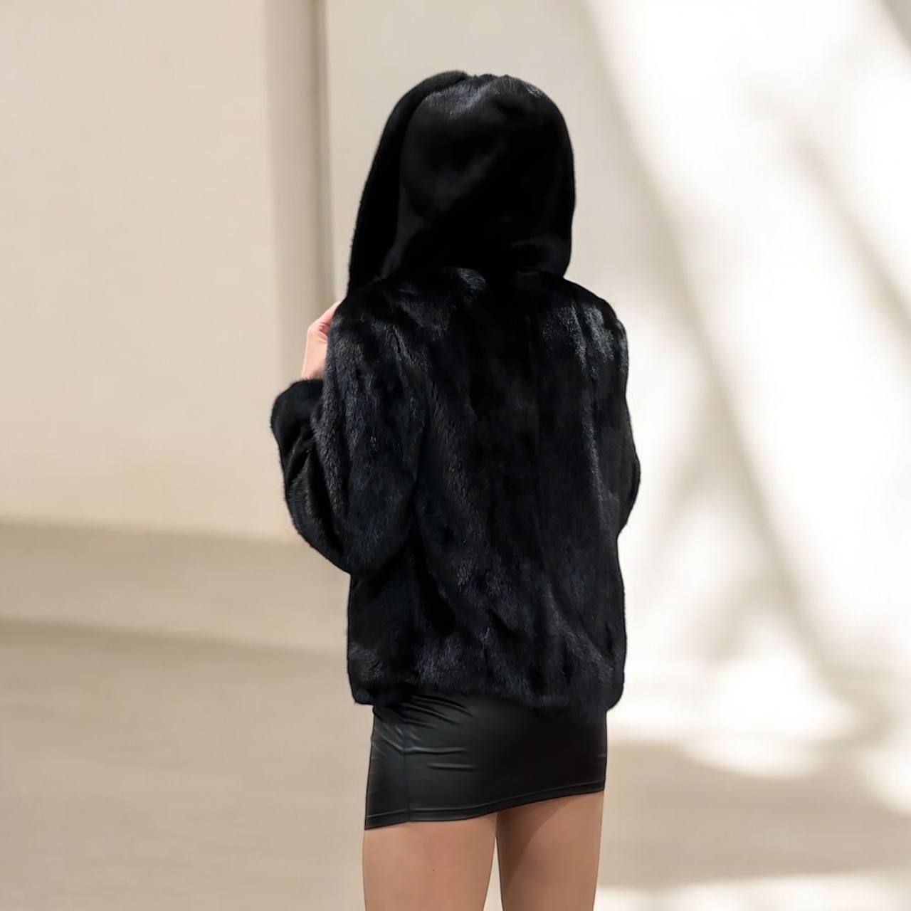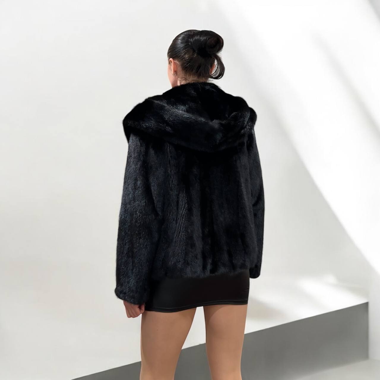 • Design: Short mink jacket with long sleeves