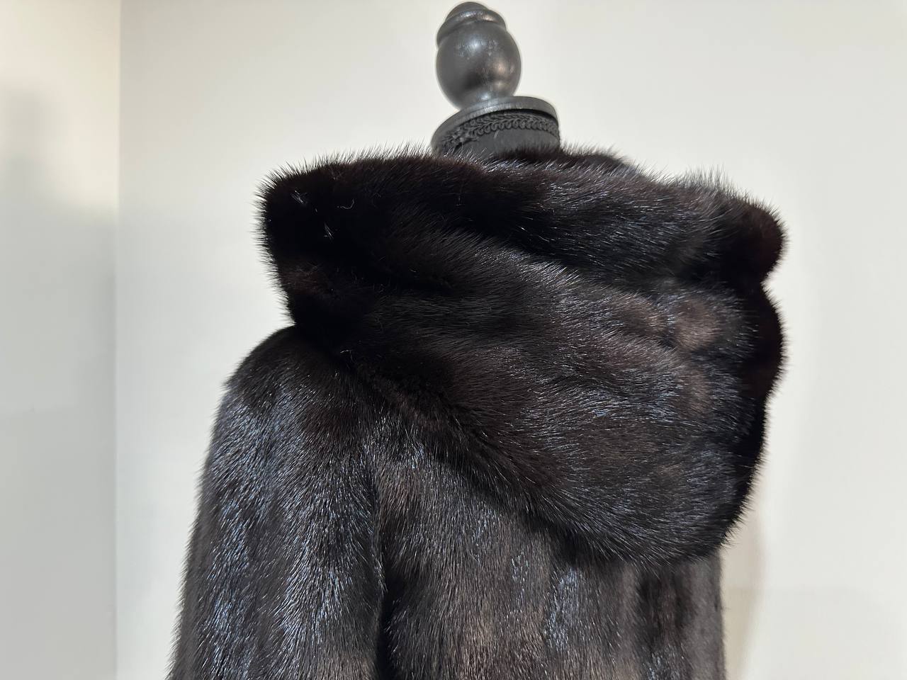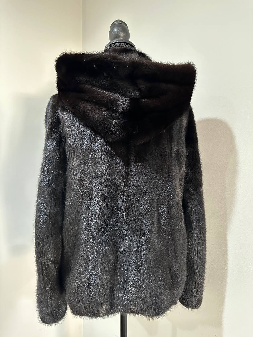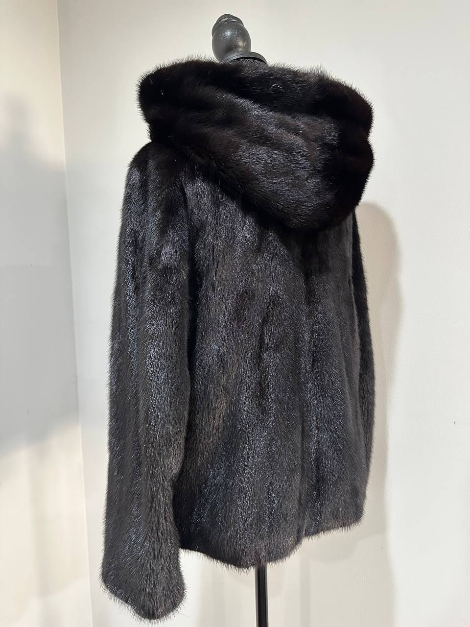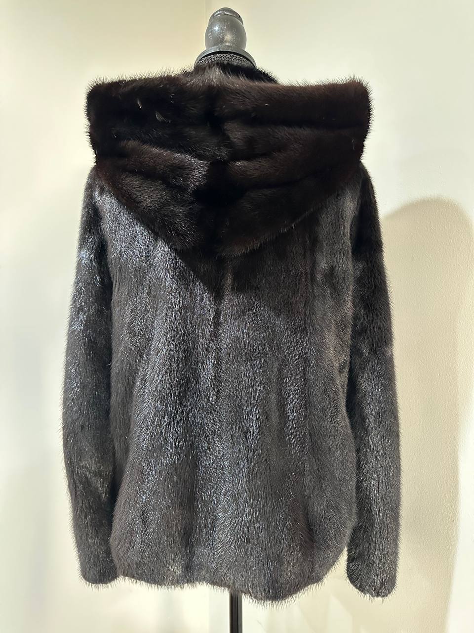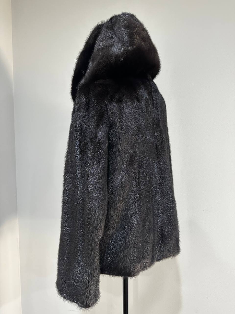 New Luxury Black Real Mink Jacket Cobra Hood Size Medium by FURSTAR M 1201127