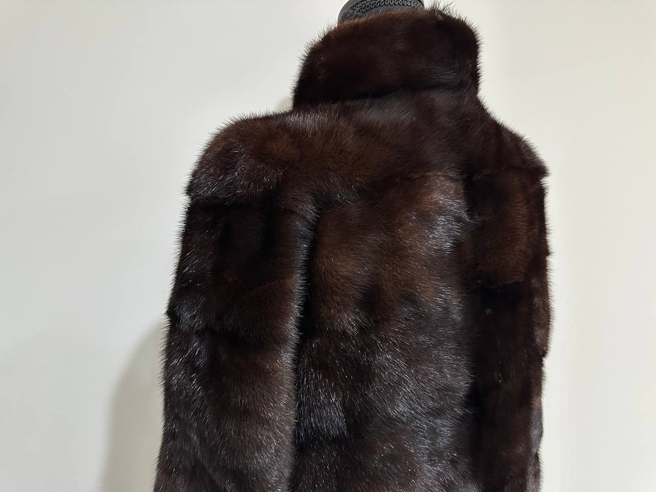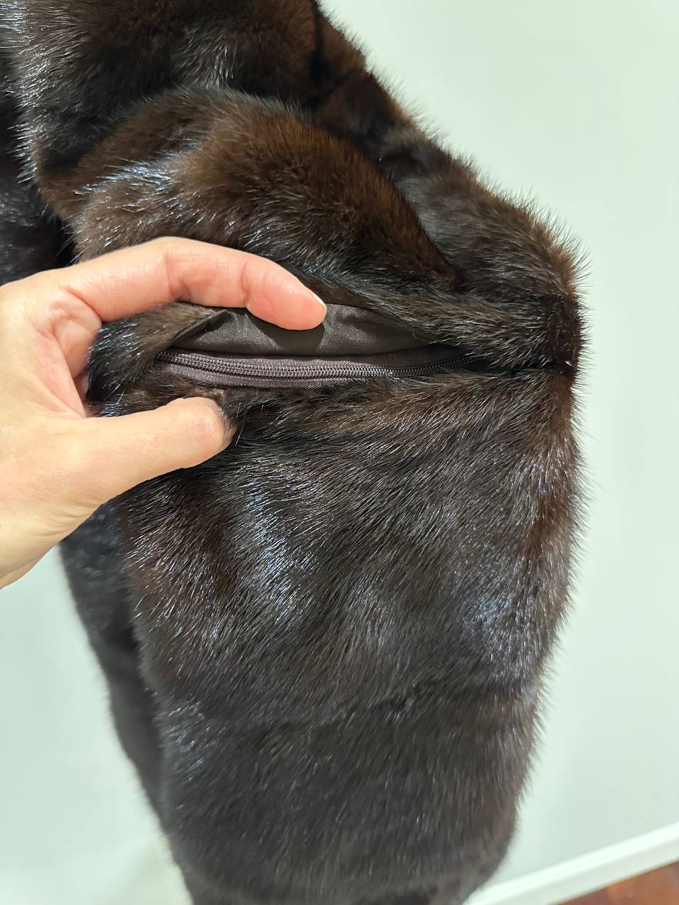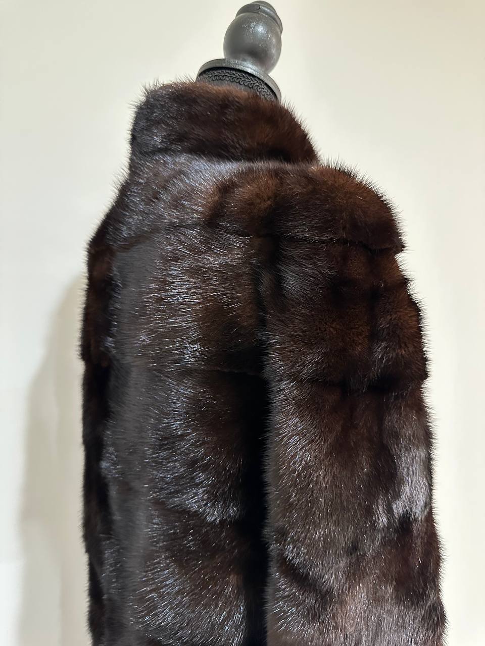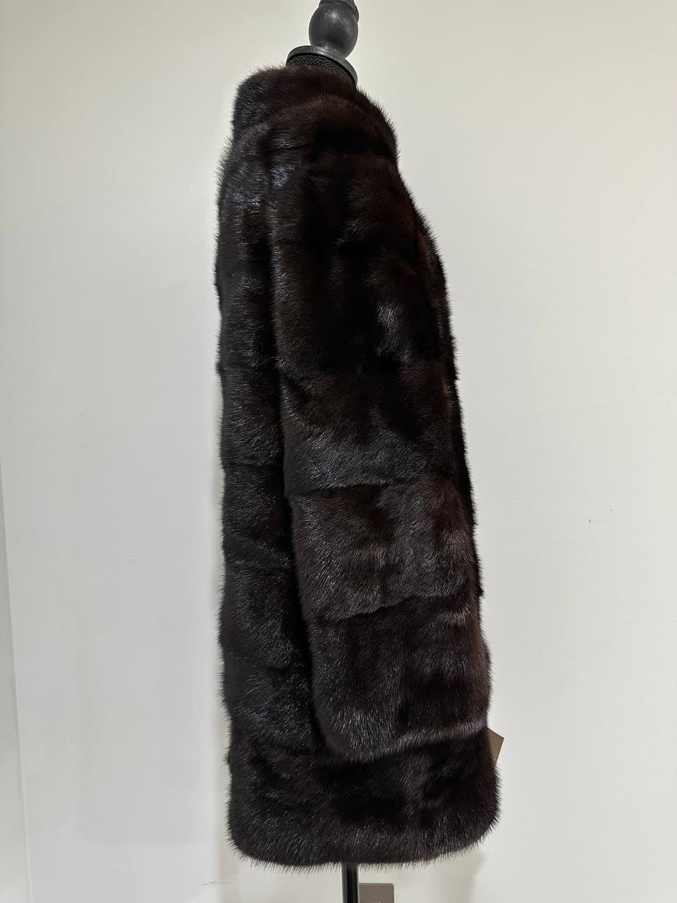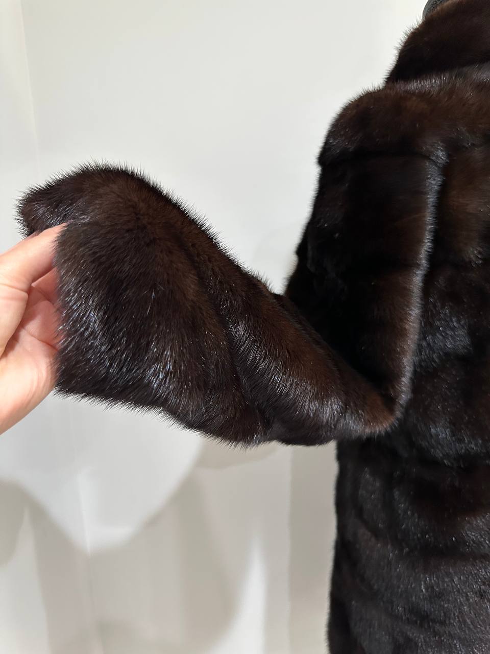 Wrap yourself in timeless elegance with this exquisite natural mink fur coat, crafted by the renowned Ukrainian brand FURSTAR. This straight-cut model, named “Velvet Chestnut”, features a rich, deep chocolate hue with subtle chestnut undertones – a natural, luxurious color that adds warmth and sophistication to any winter wardrobe.