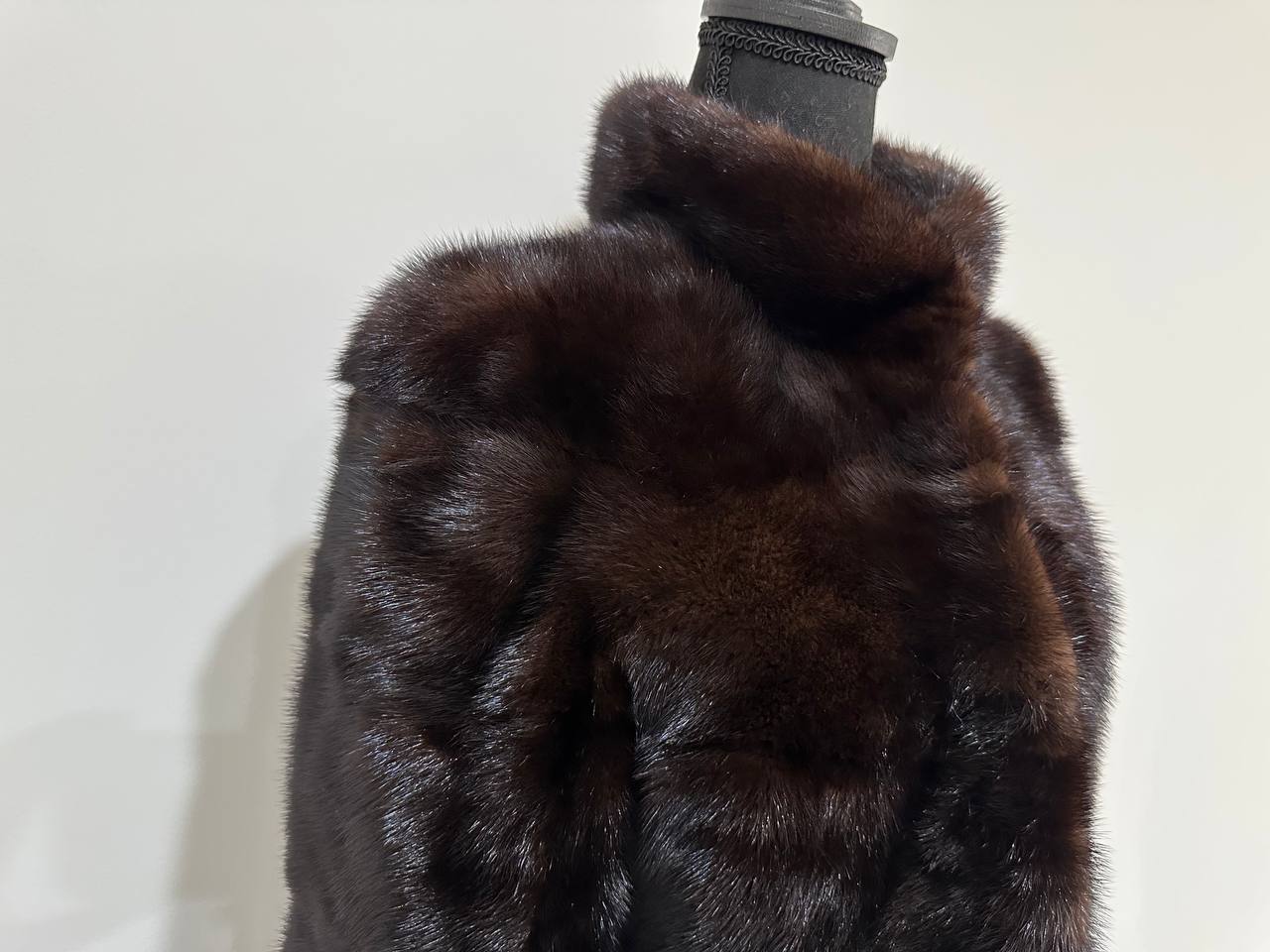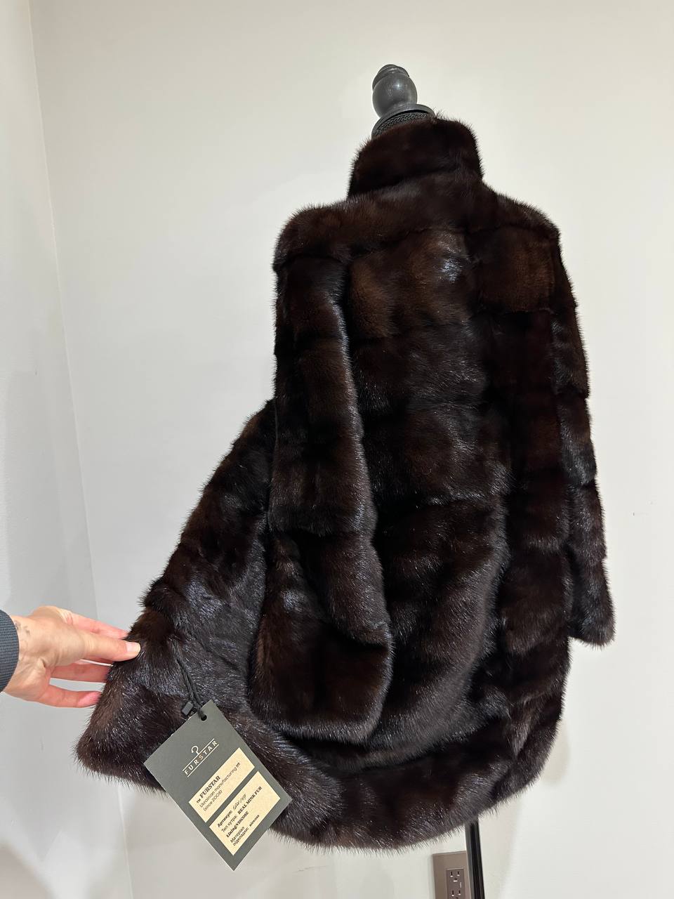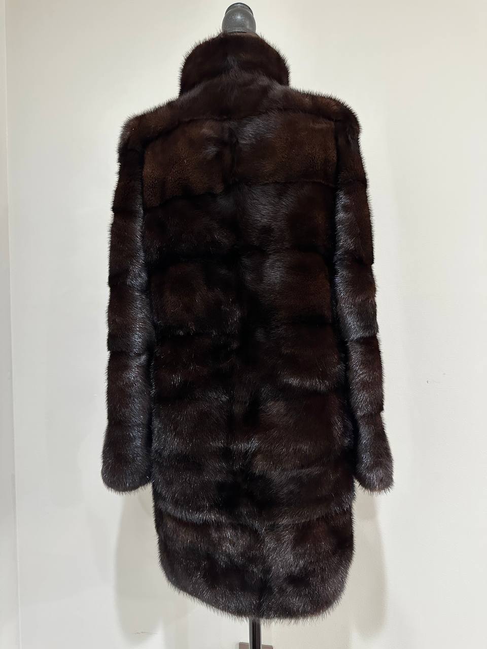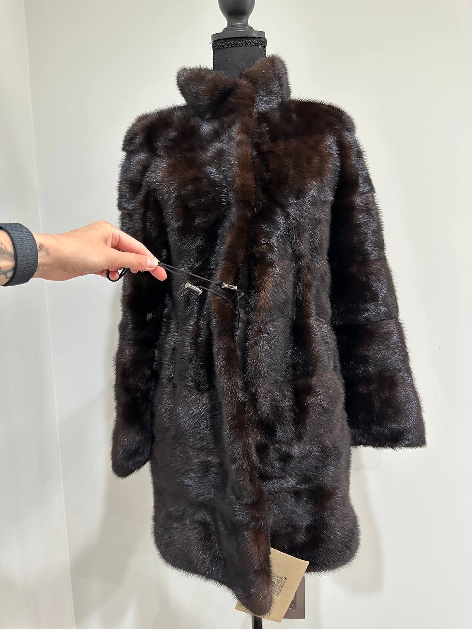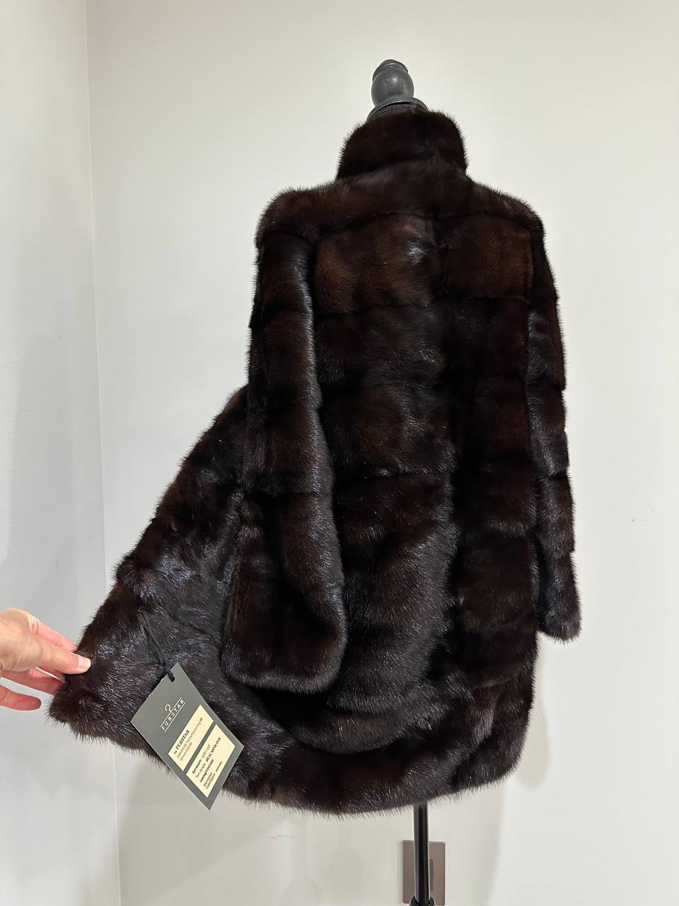 Wrap yourself in timeless elegance with this exquisite natural mink fur coat, crafted by the renowned Ukrainian brand FURSTAR. This straight-cut model, named “Velvet Chestnut”, features a rich, deep chocolate hue with subtle chestnut undertones – a natural, luxurious color that adds warmth and sophistication to any winter wardrobe.