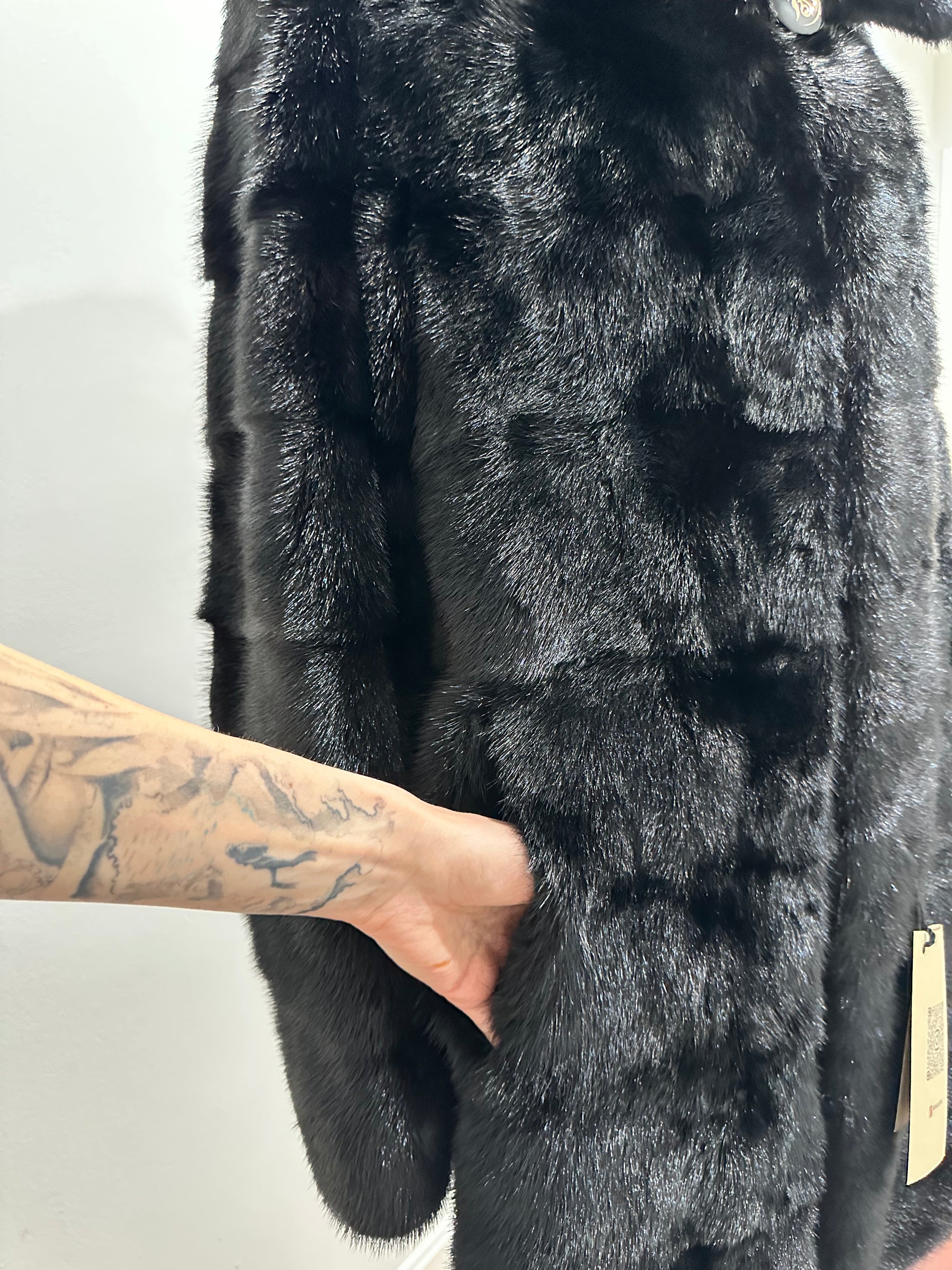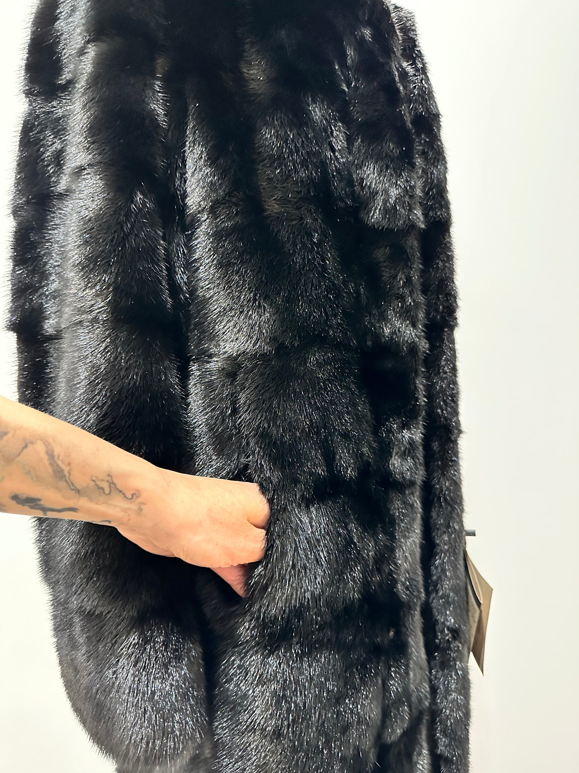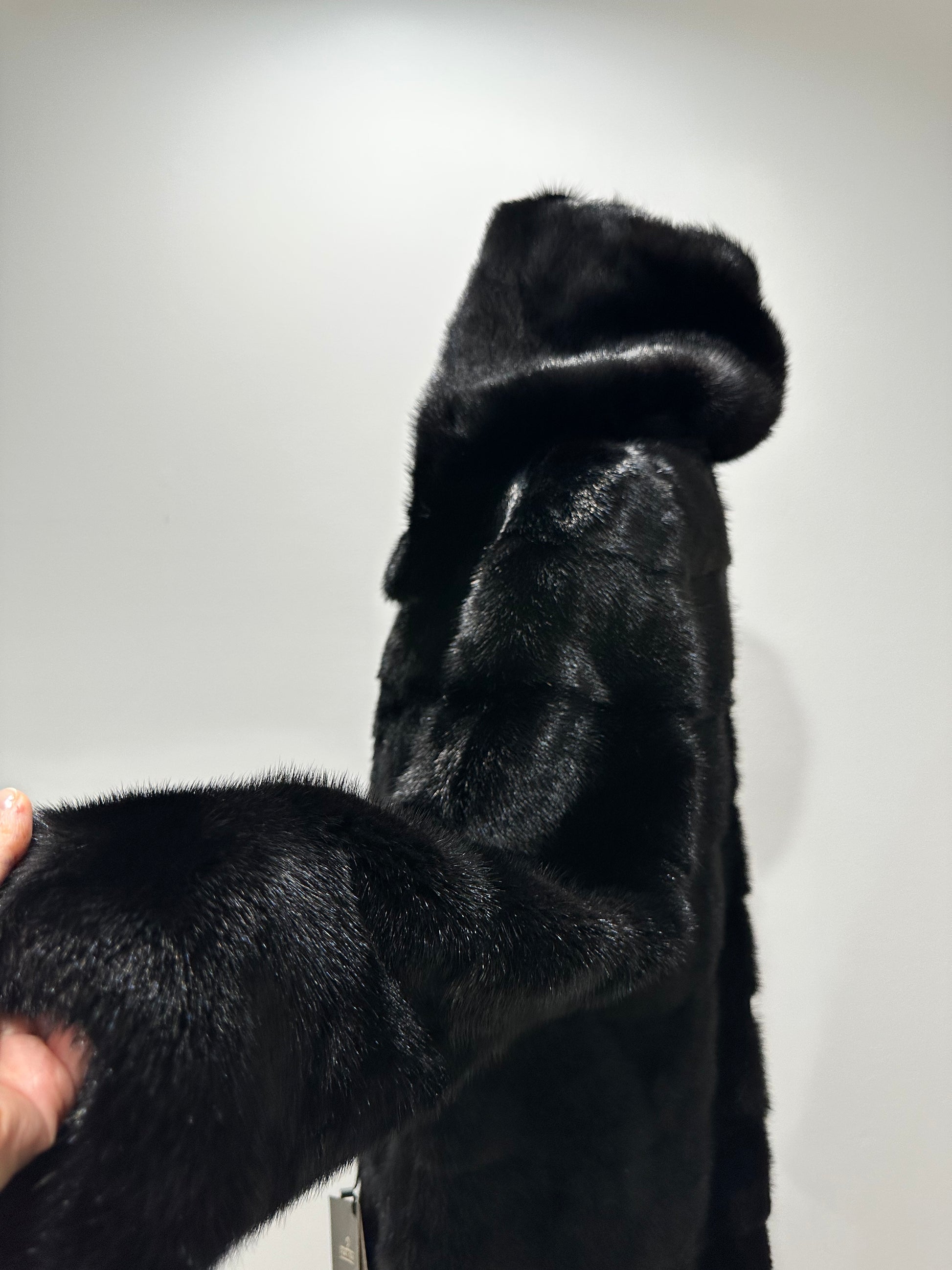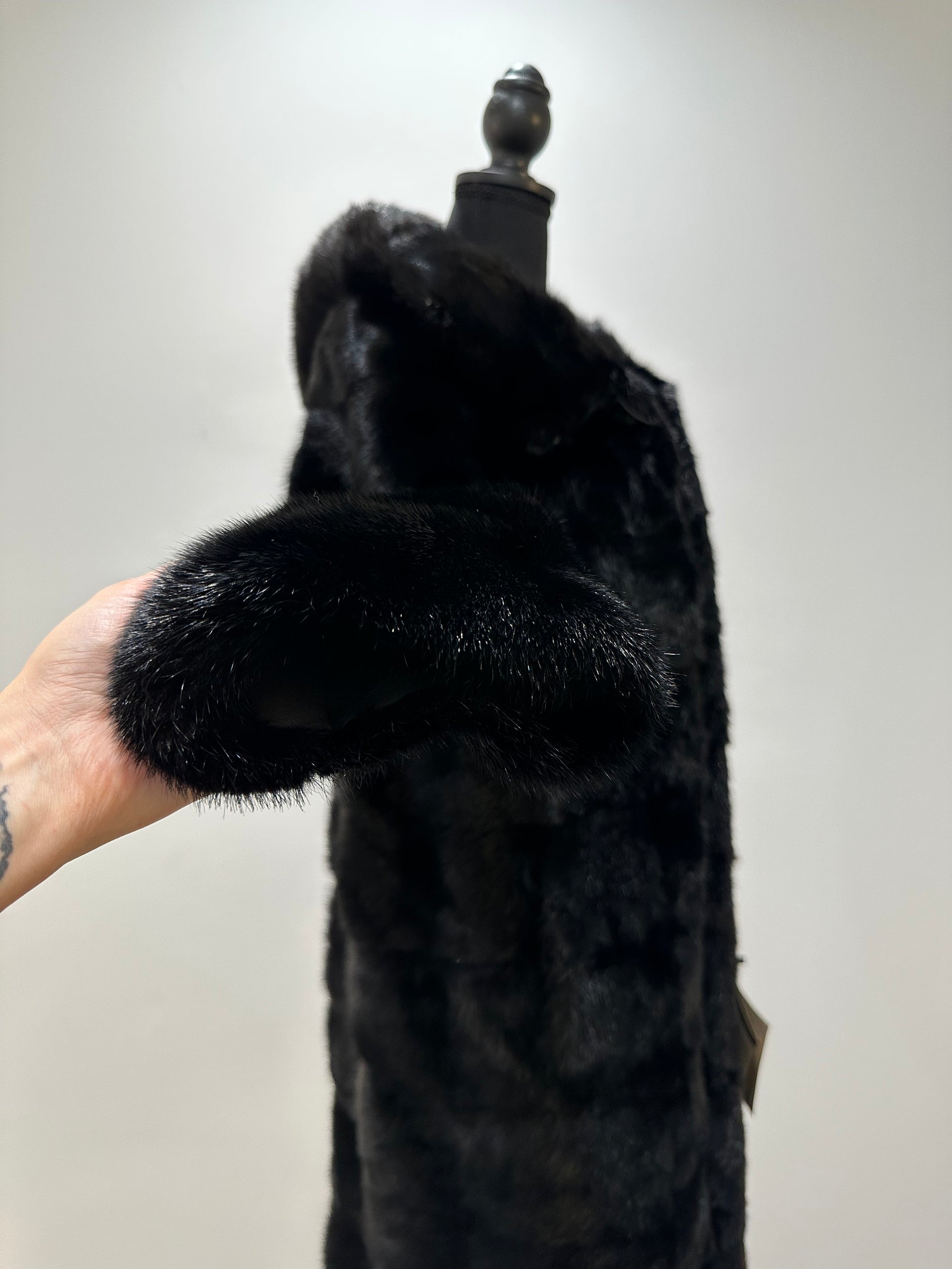 NEW MINK FUR coat size S SMALL 1201058 HORIZONTAL long sleeve jacket BLACK