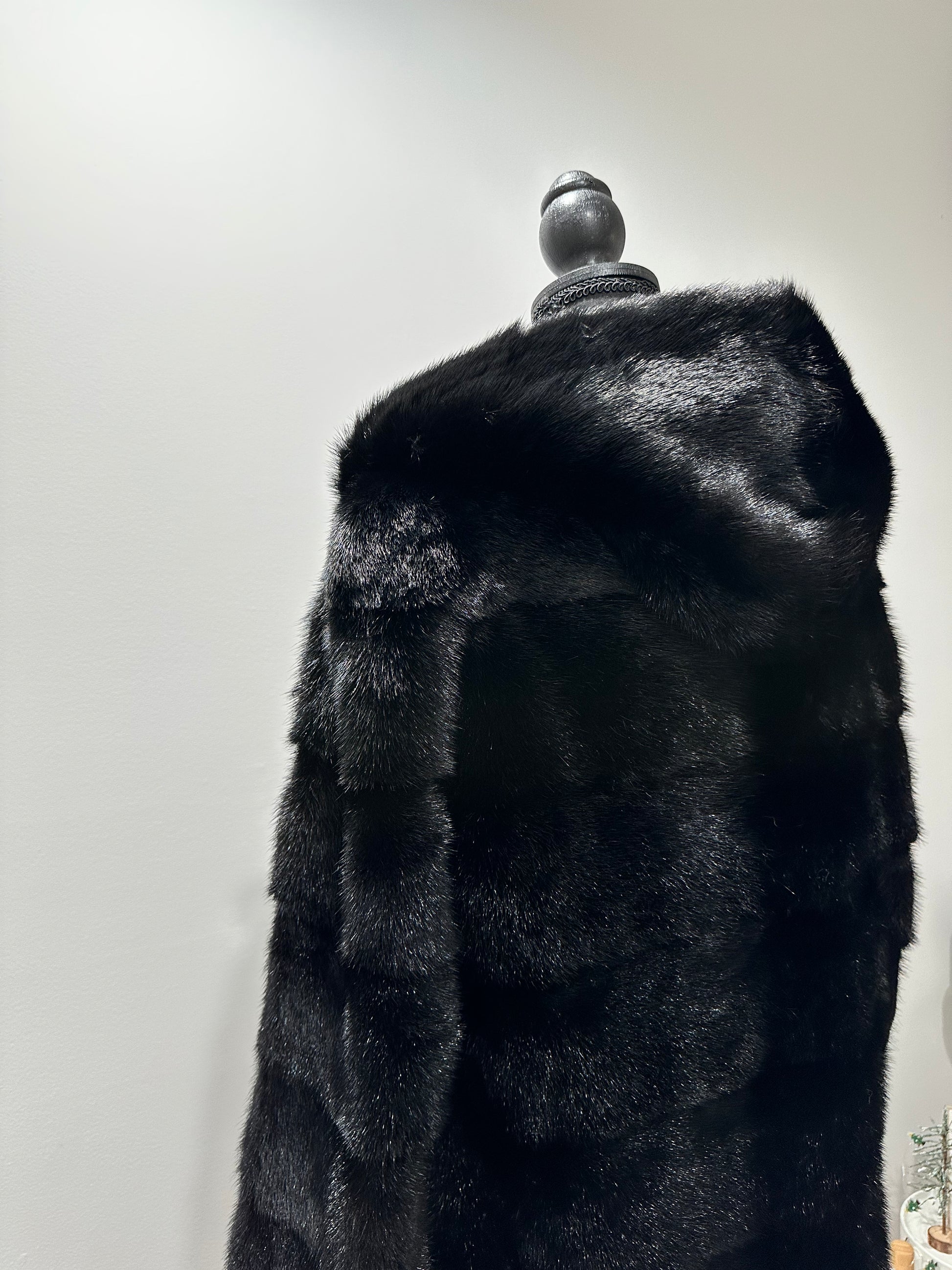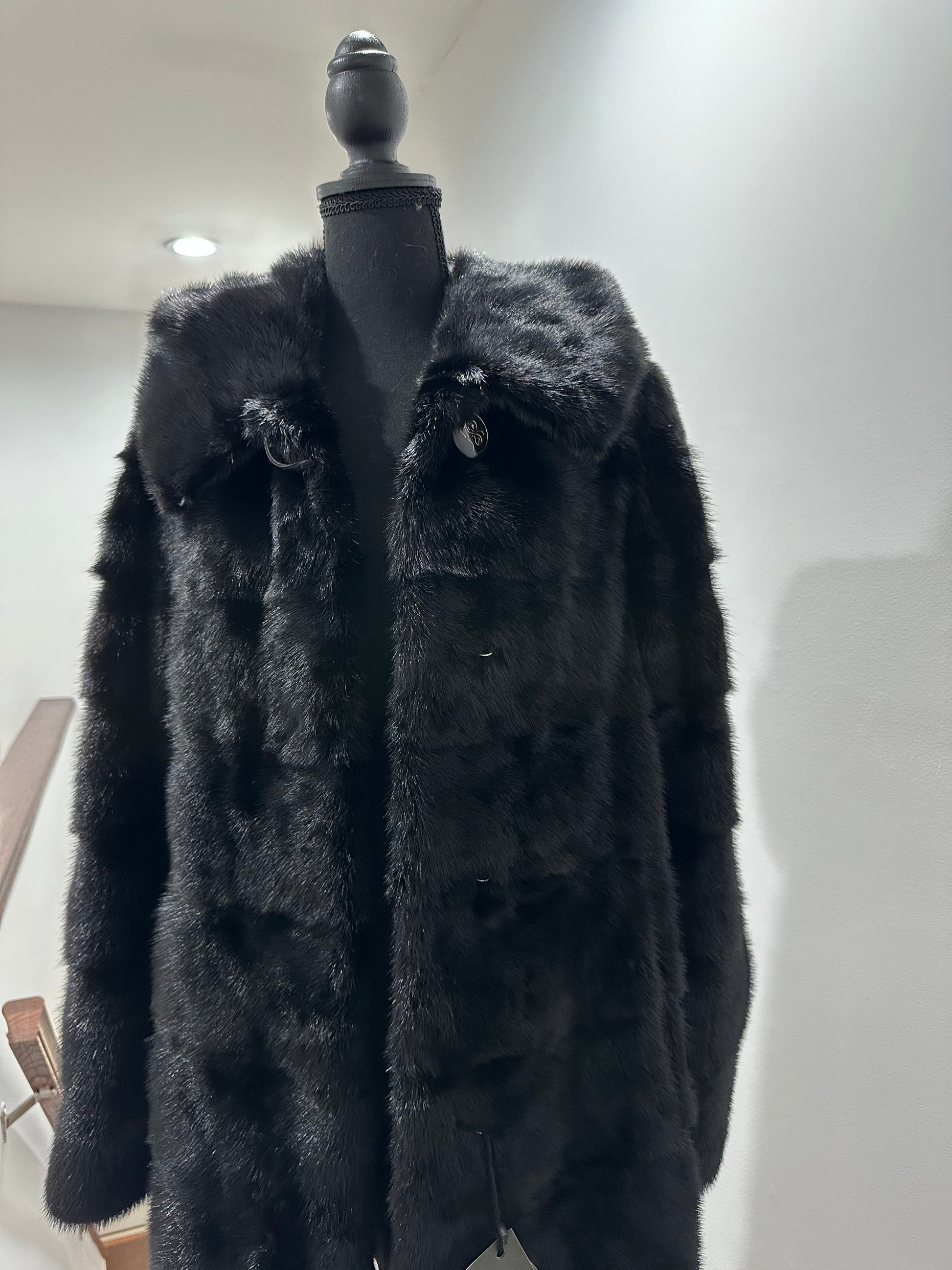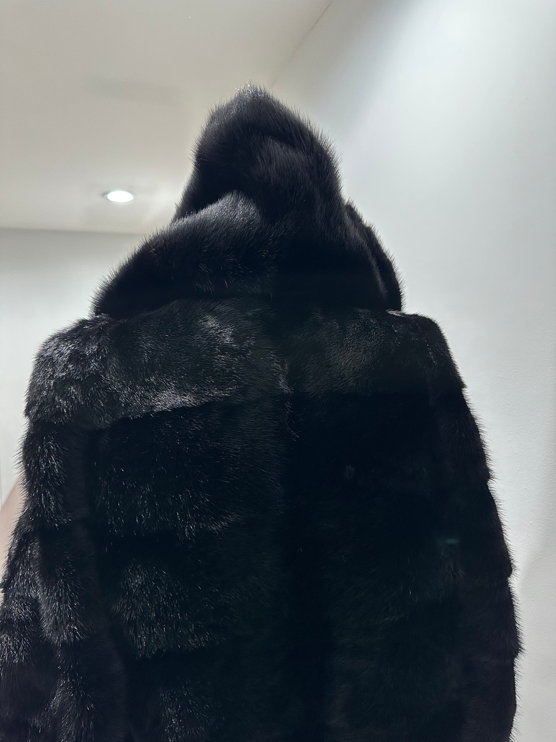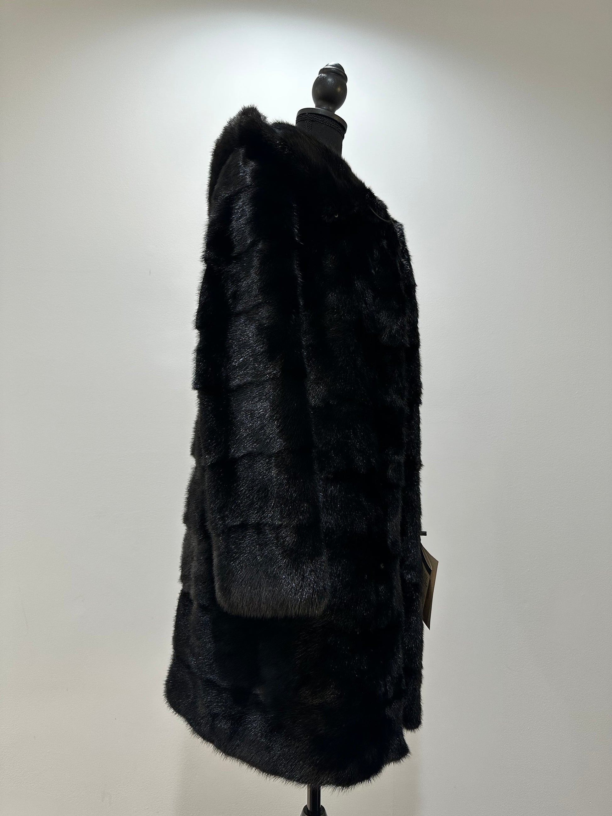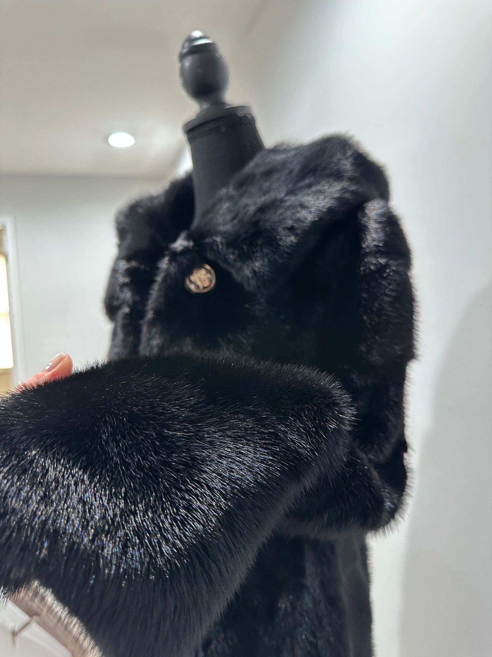 NEW MINK FUR coat size S SMALL 1201058 HORIZONTAL long sleeve jacket BLACK