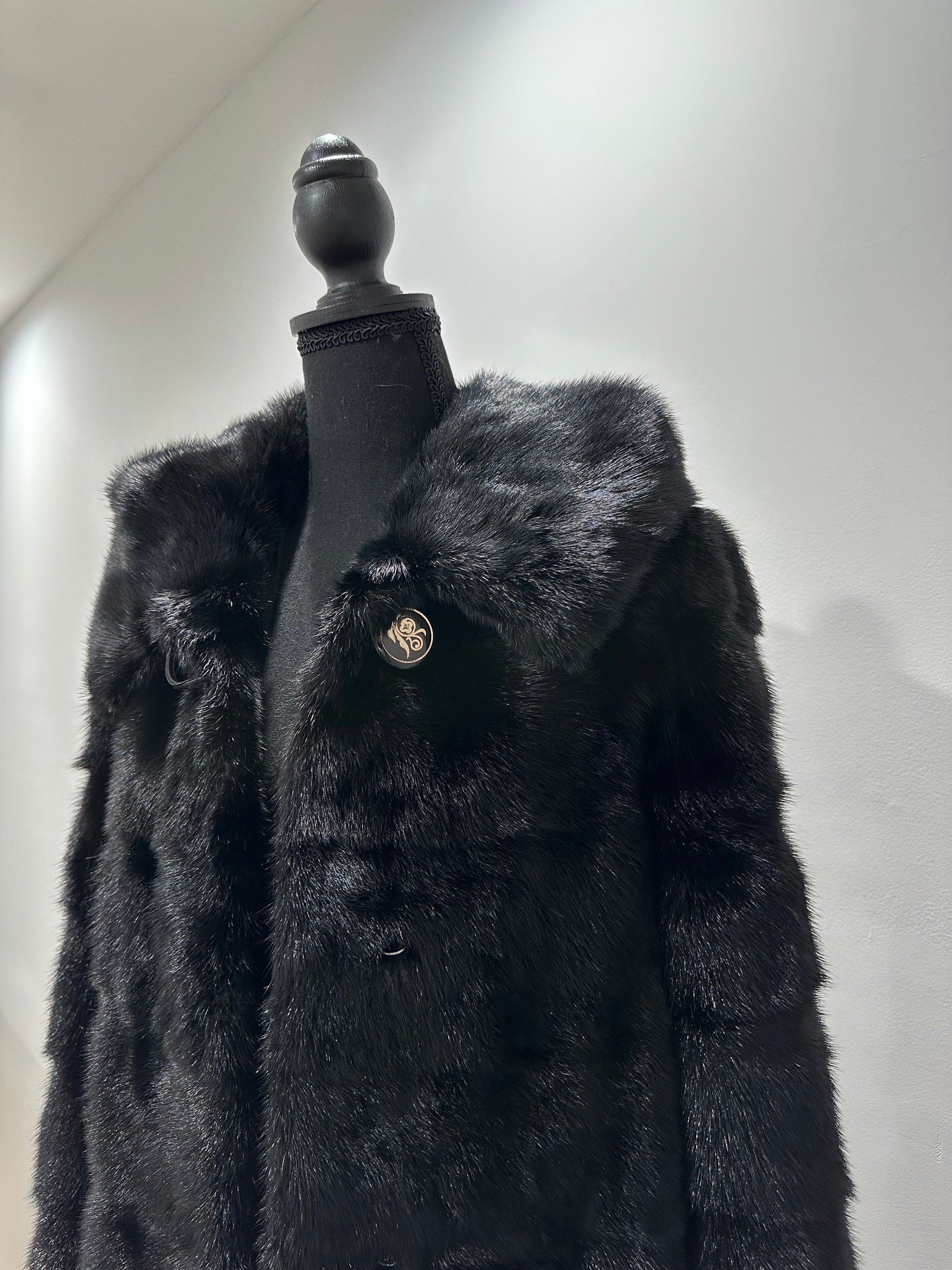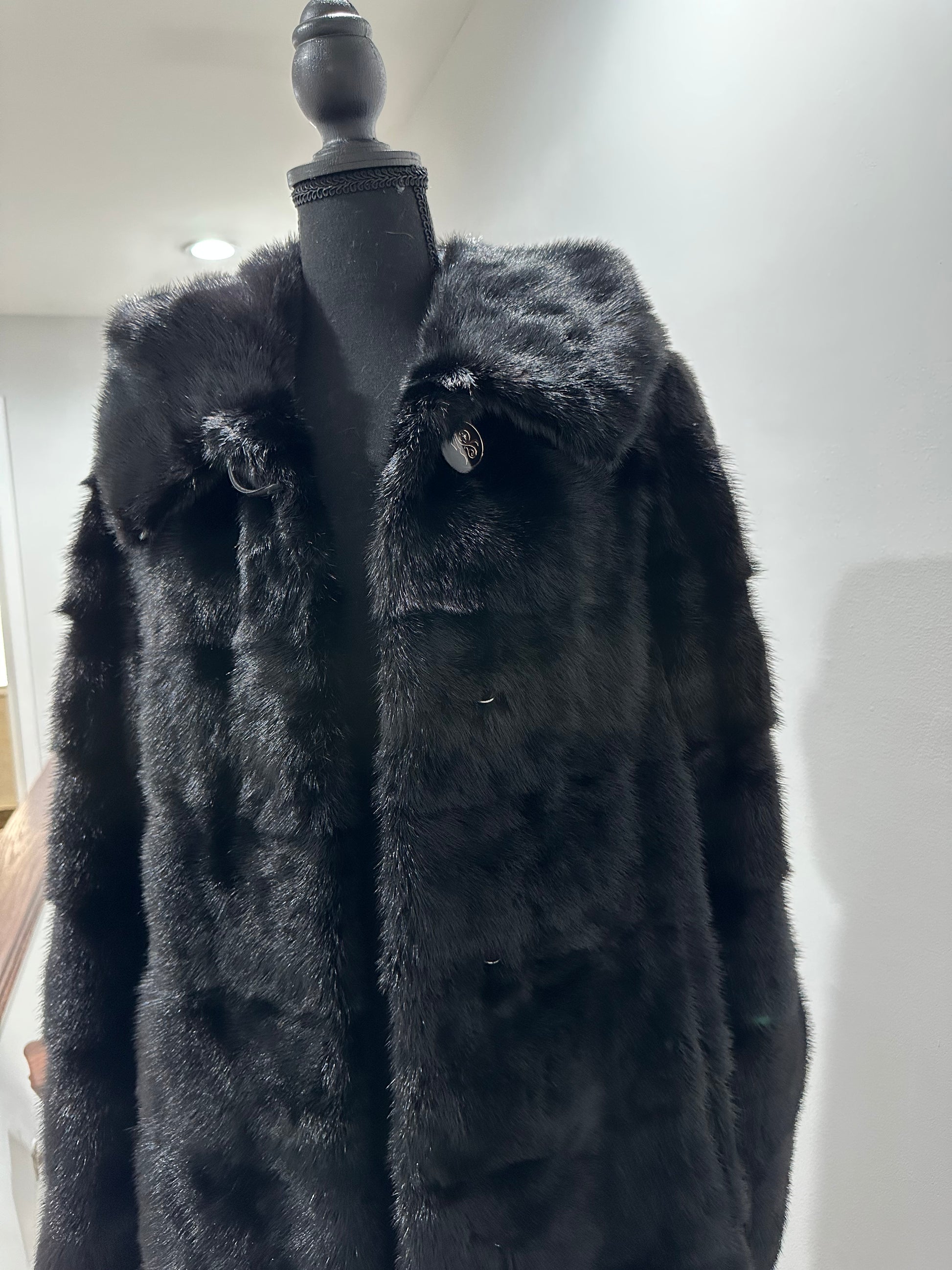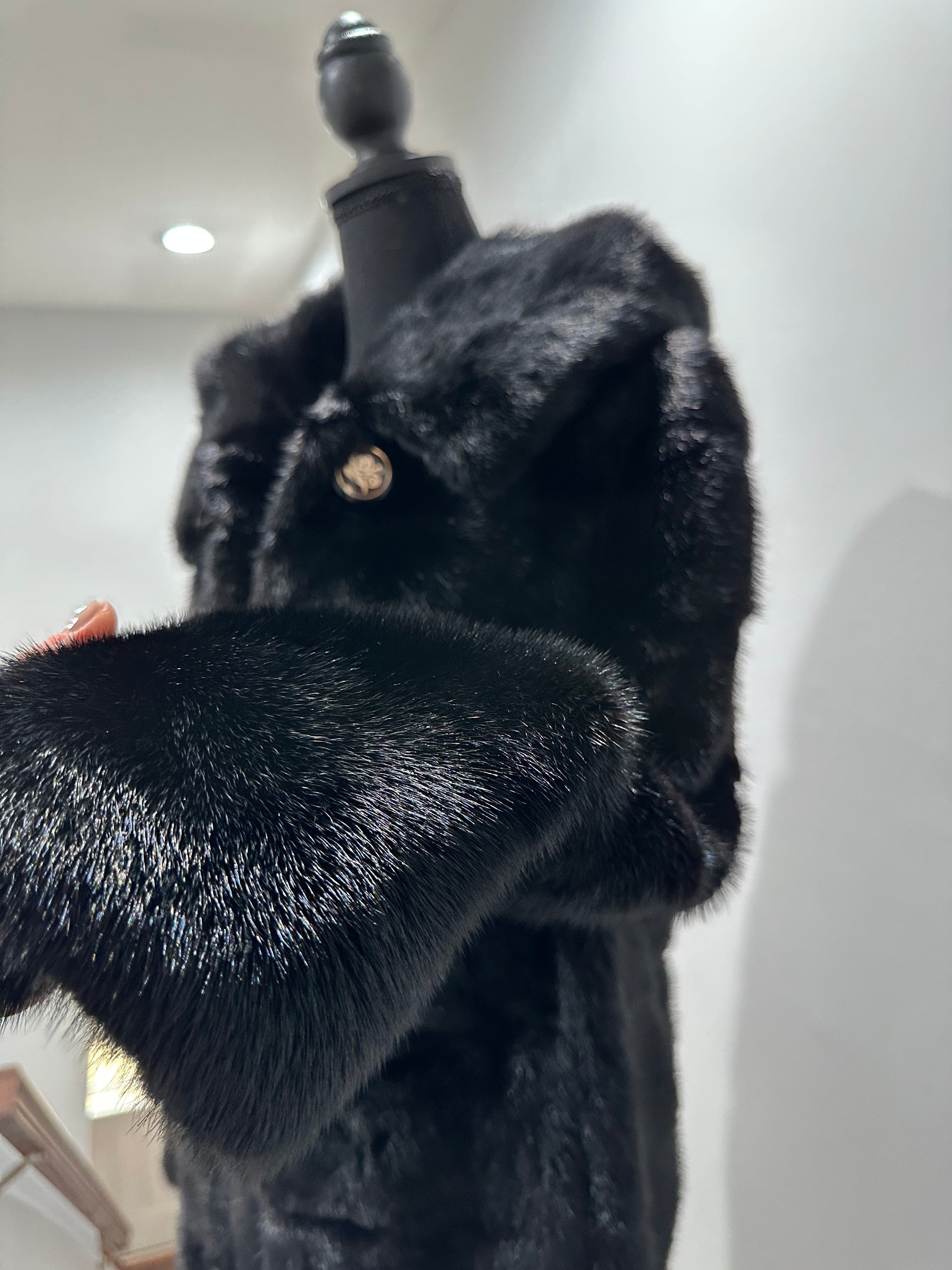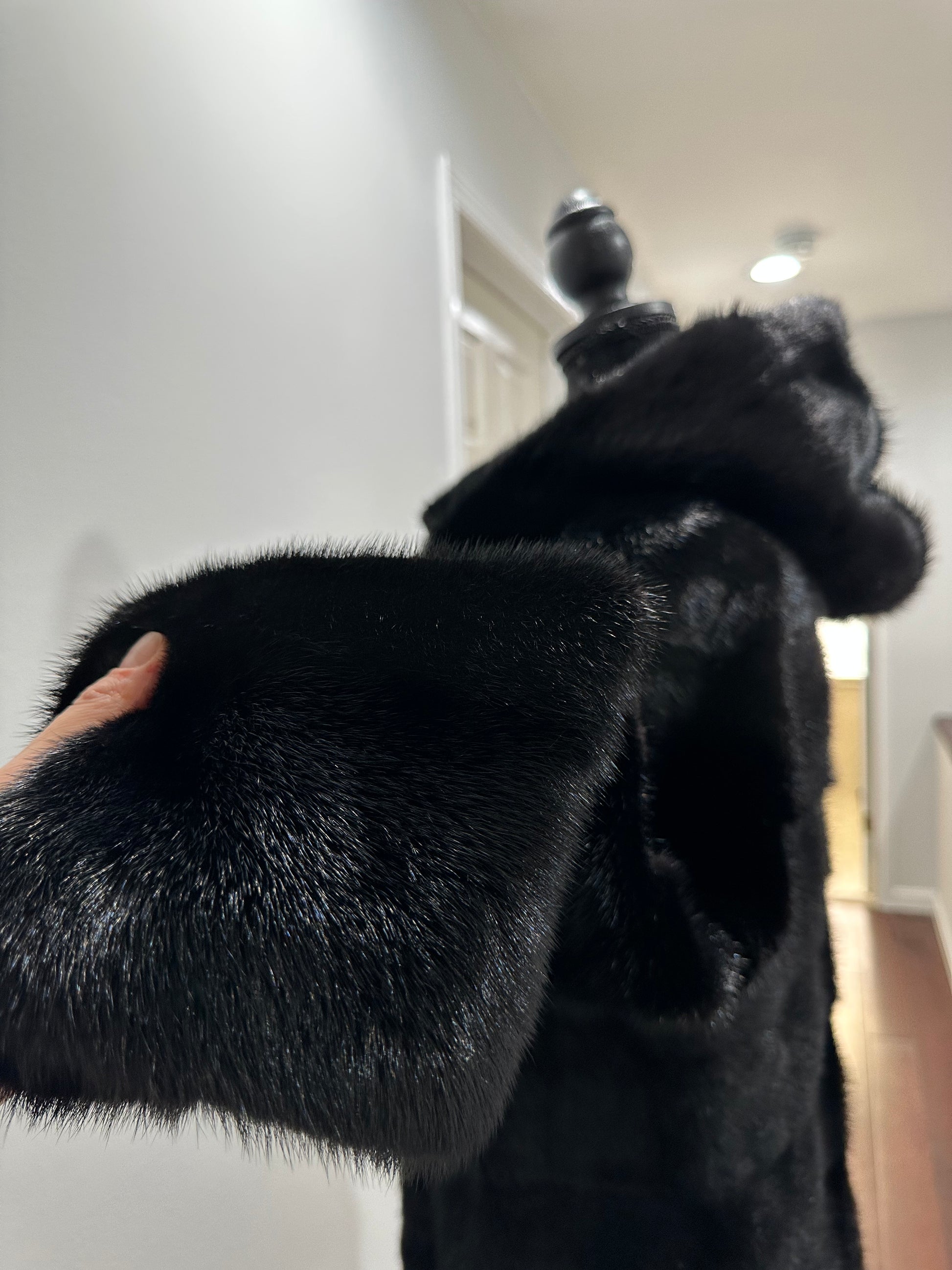 NEW MINK FUR coat size S SMALL 1201058 HORIZONTAL long sleeve jacket BLACK