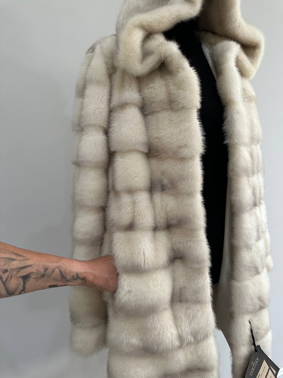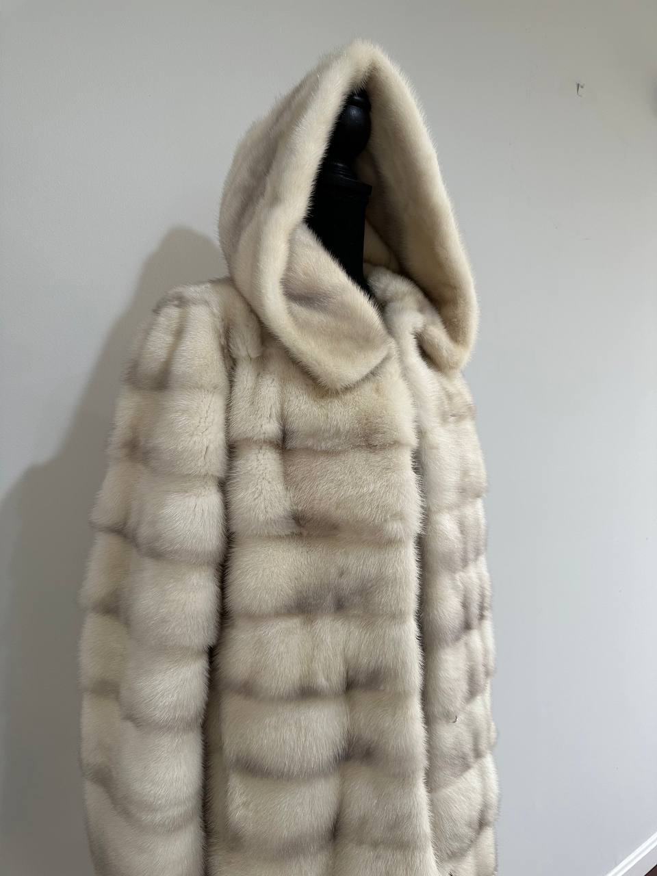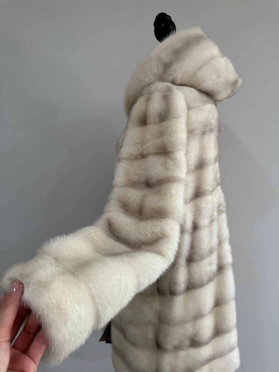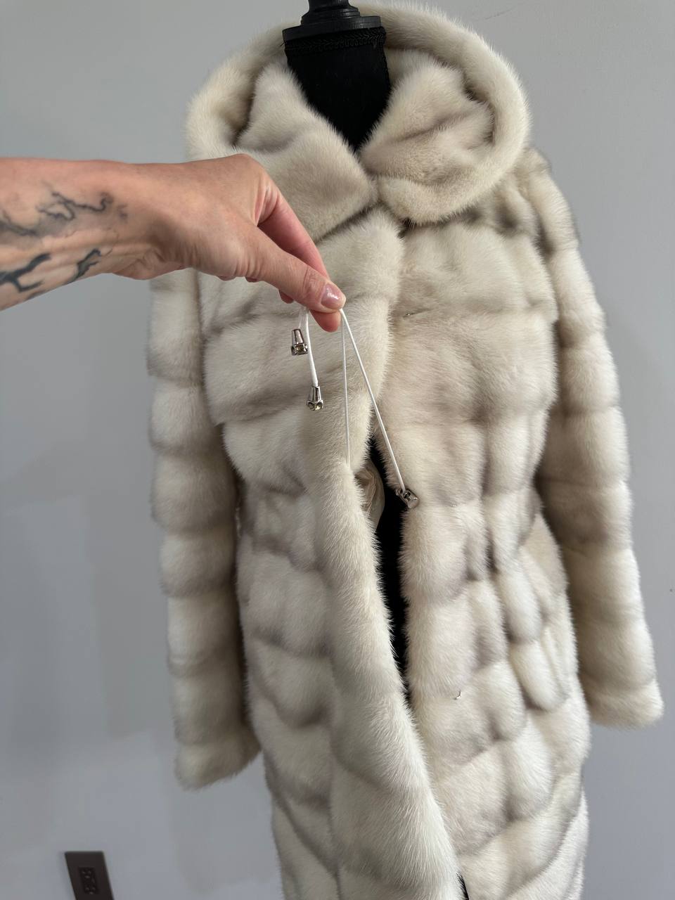 NEW MINK FUR coat size S SMALL 1201106 HORIZONTAL long sleeve jacket HOODED