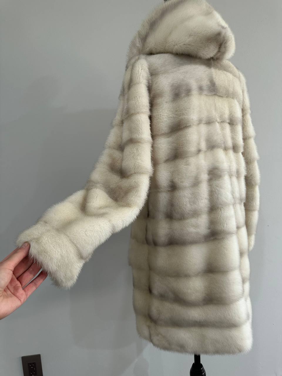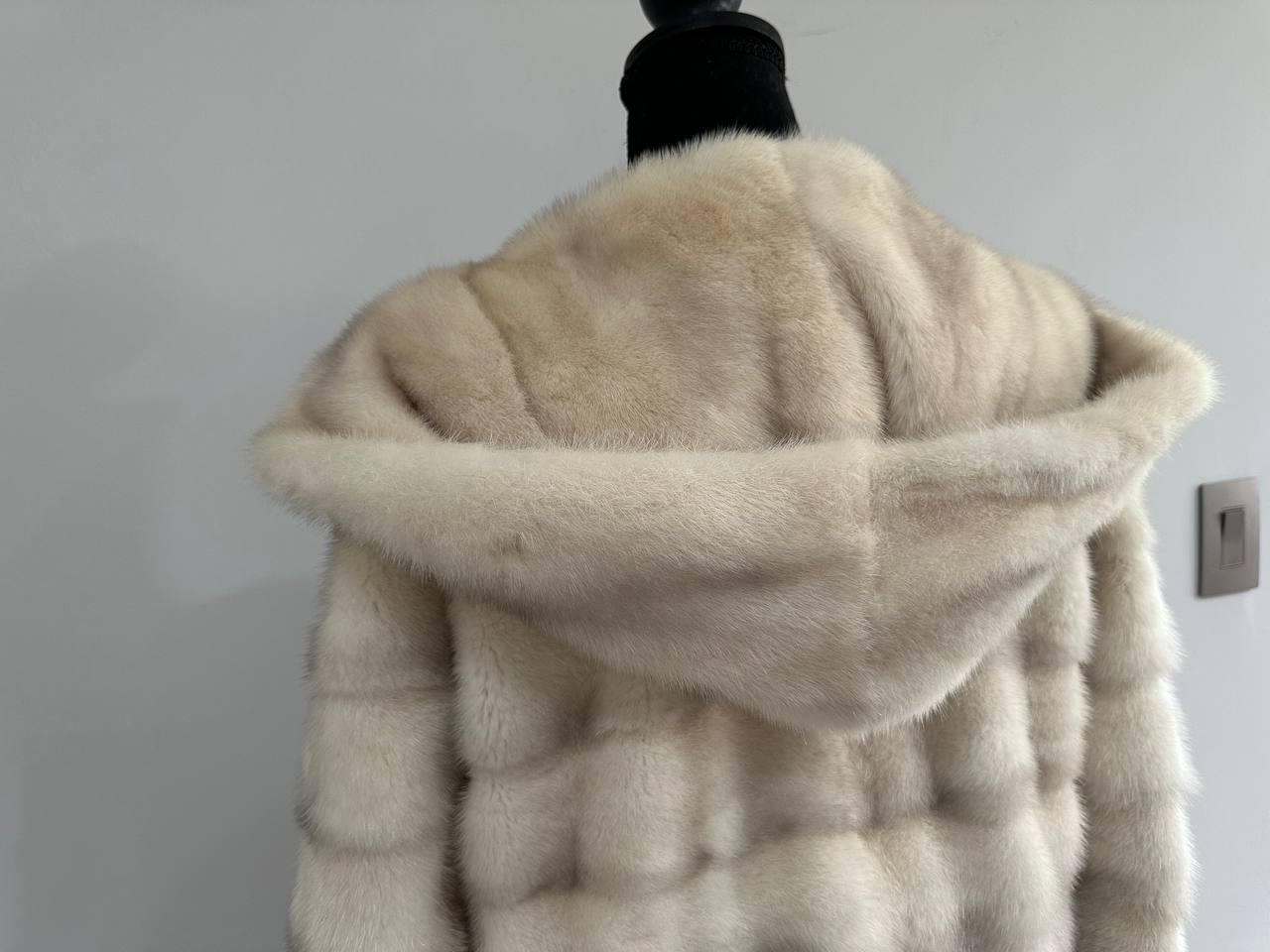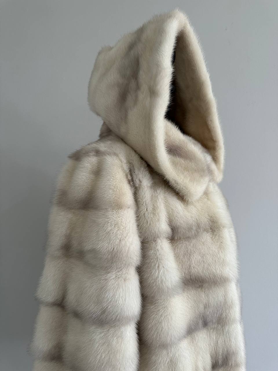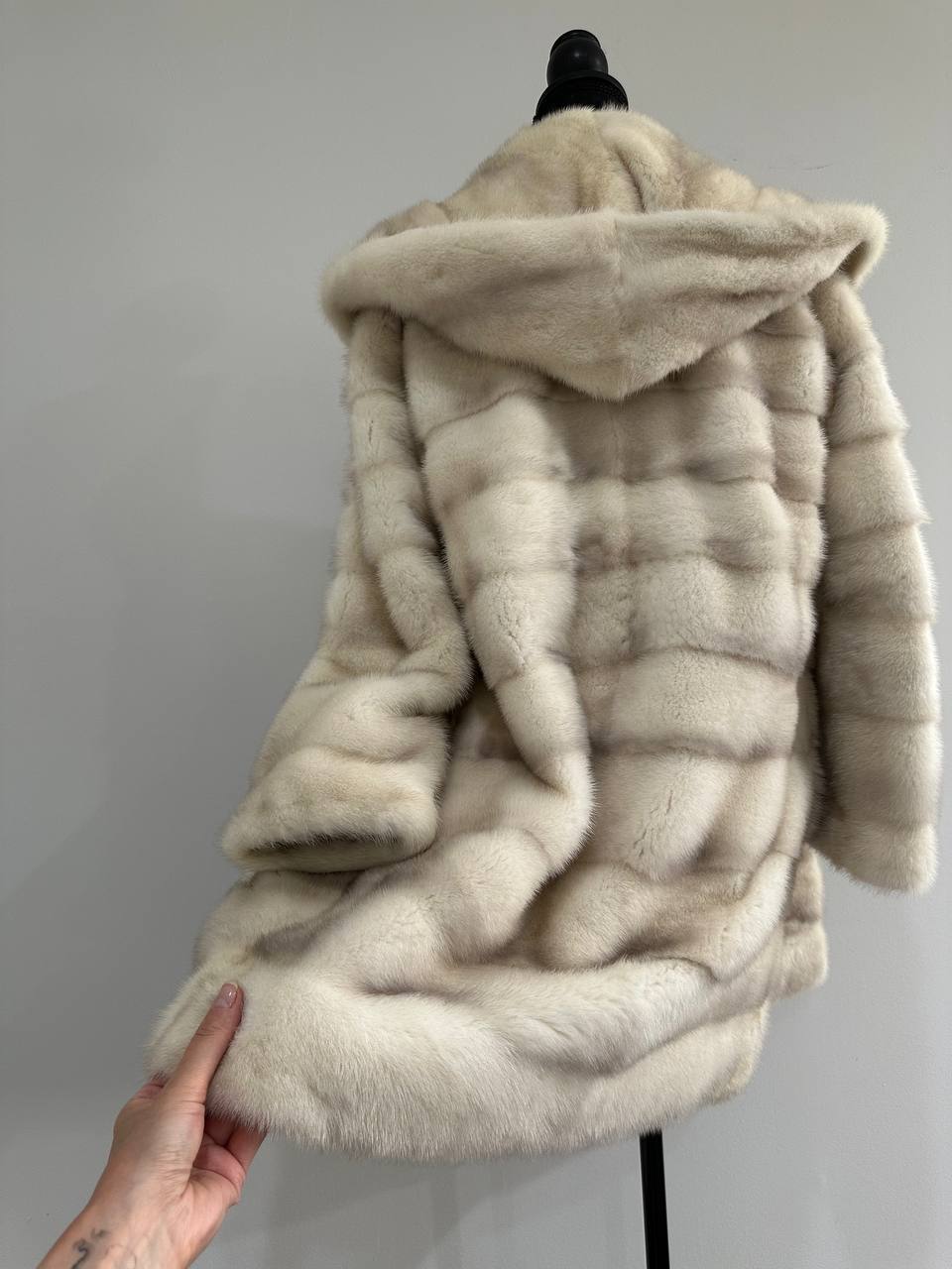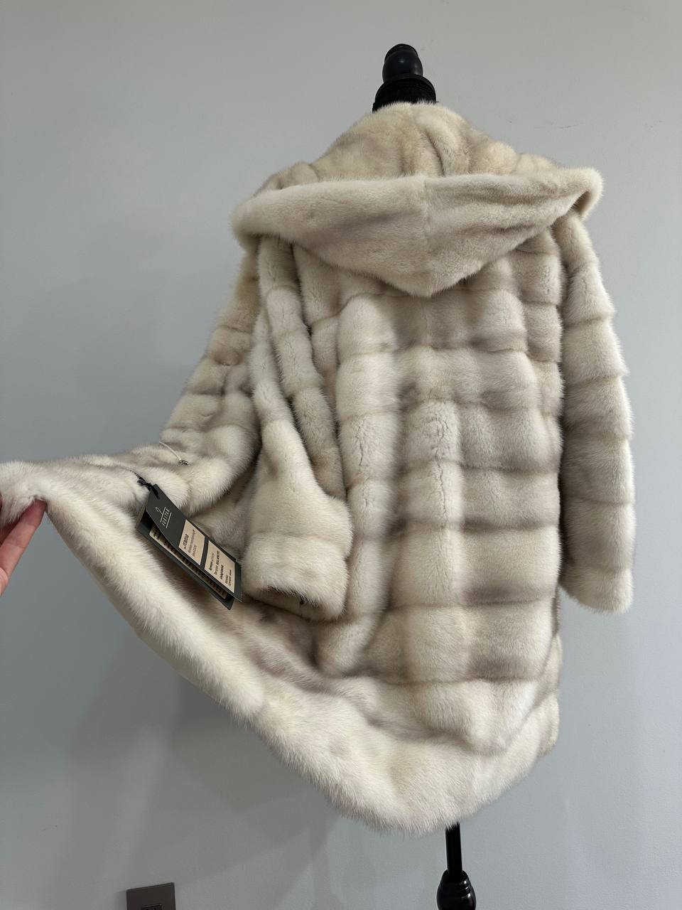 NEW MINK FUR coat size S SMALL 1201106 HORIZONTAL long sleeve jacket HOODED