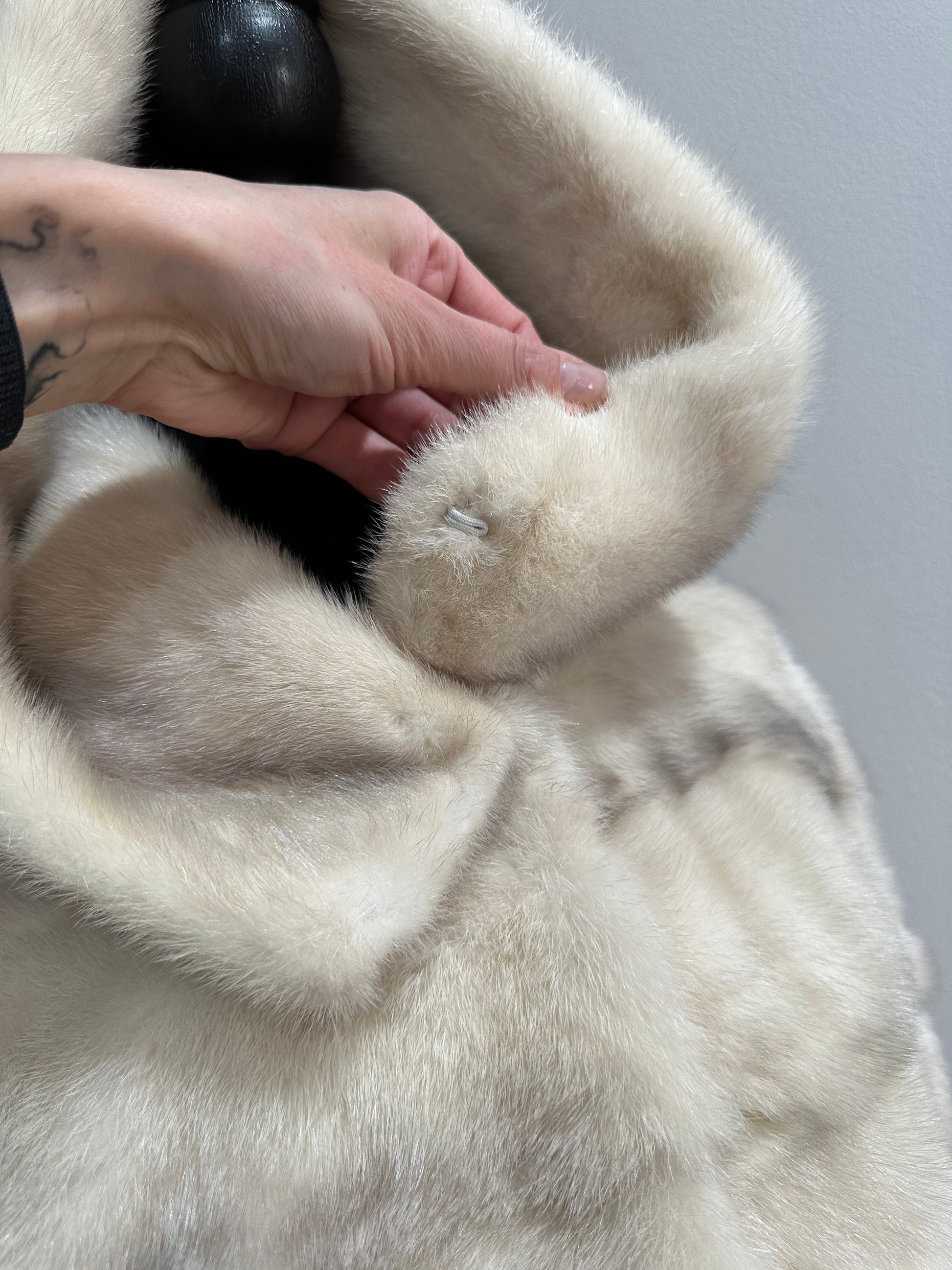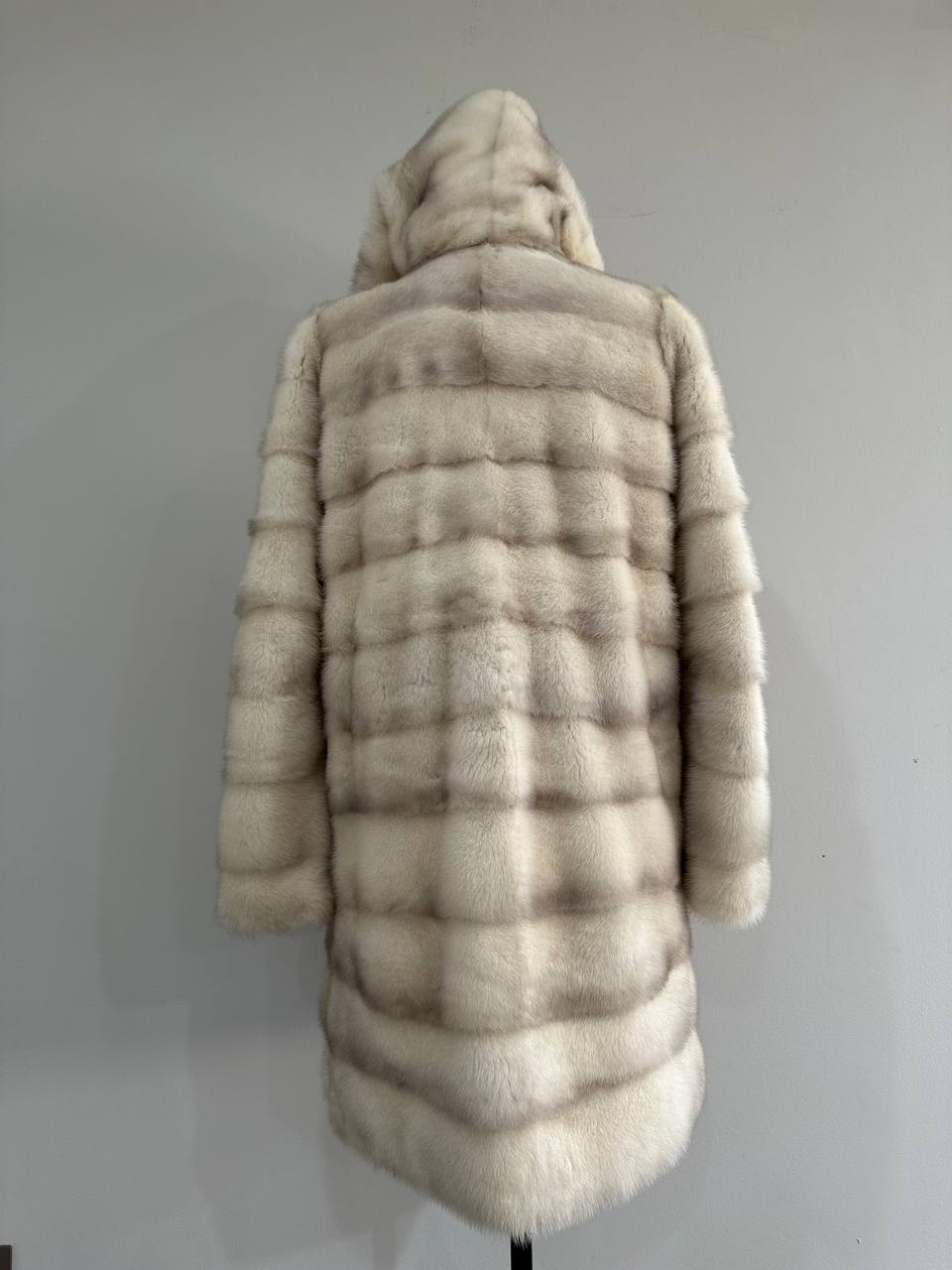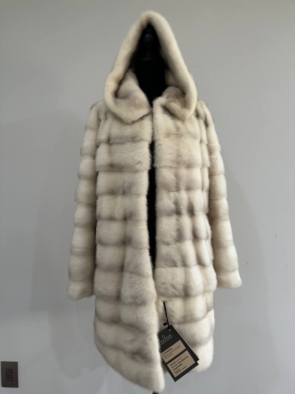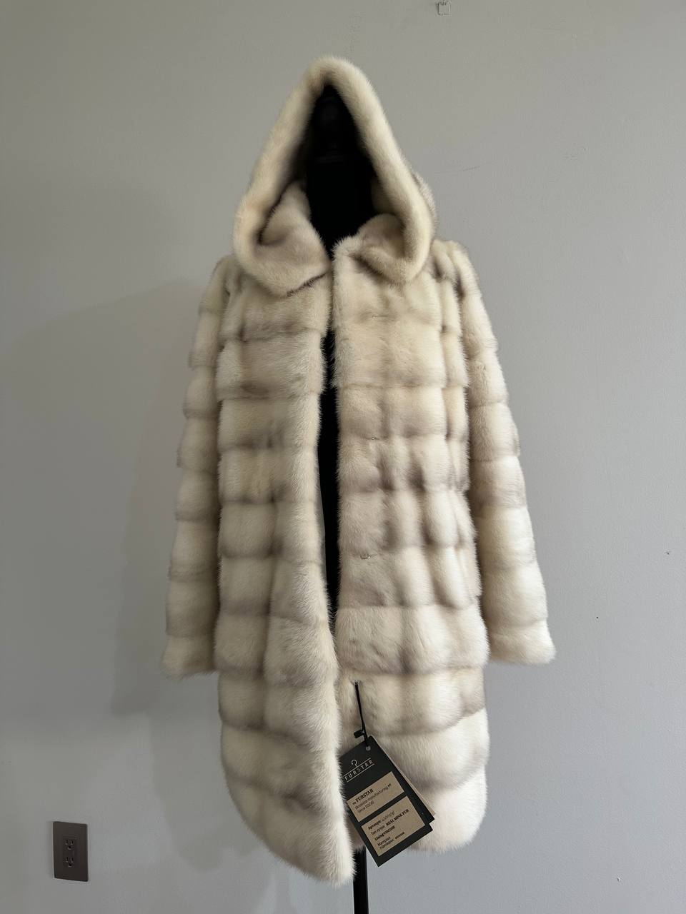 NEW MINK FUR coat size S SMALL 1201106 HORIZONTAL long sleeve jacket HOODED