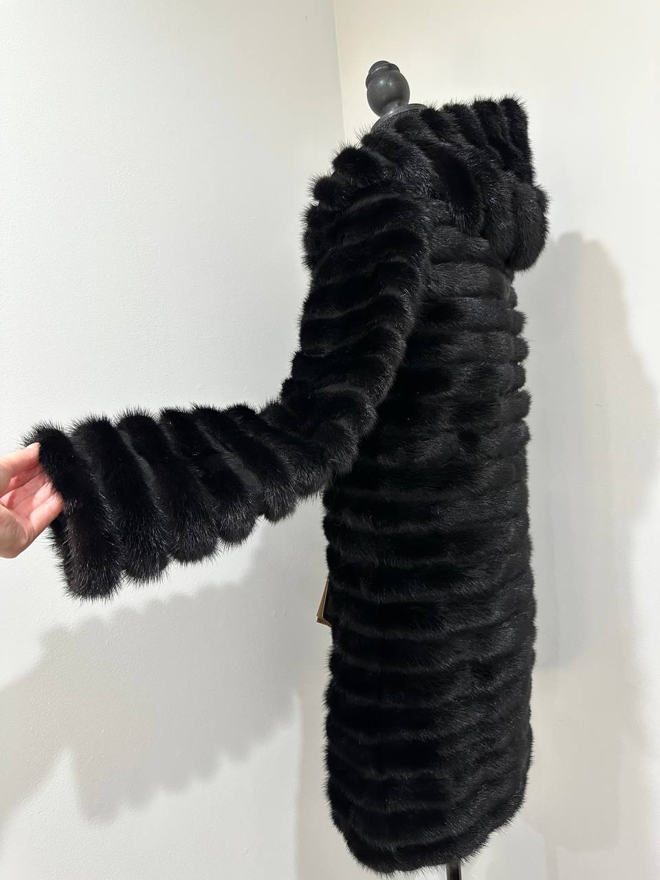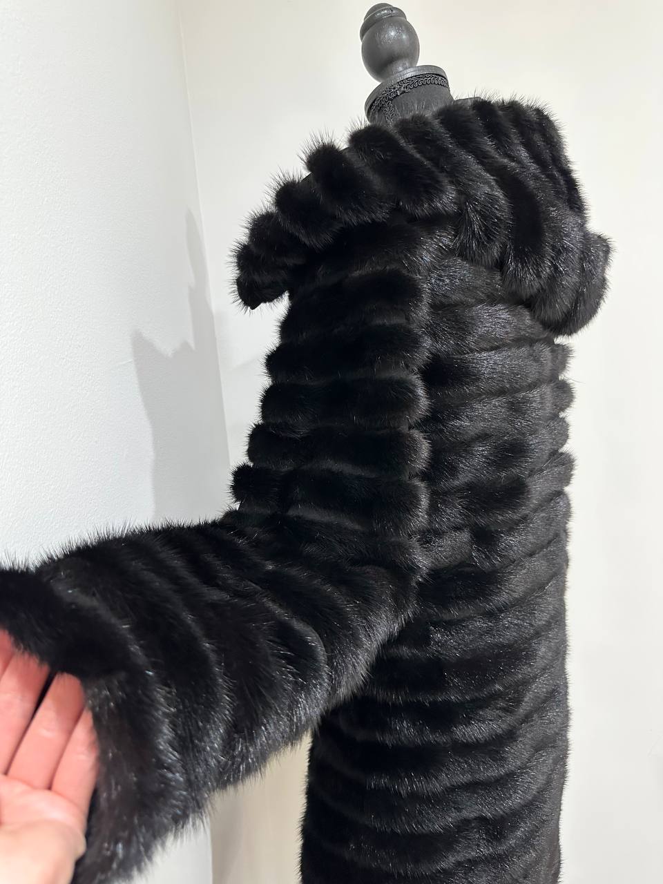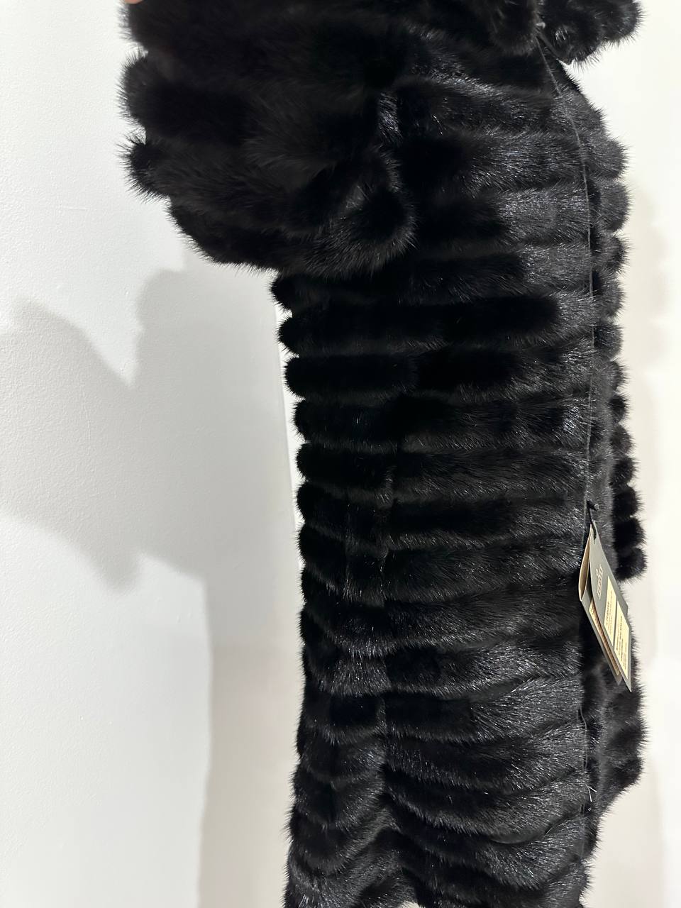 NEW REAL MINK FUR coat size 2XS 1201119 HORIZONTAL long sleeve jacket BLACK women