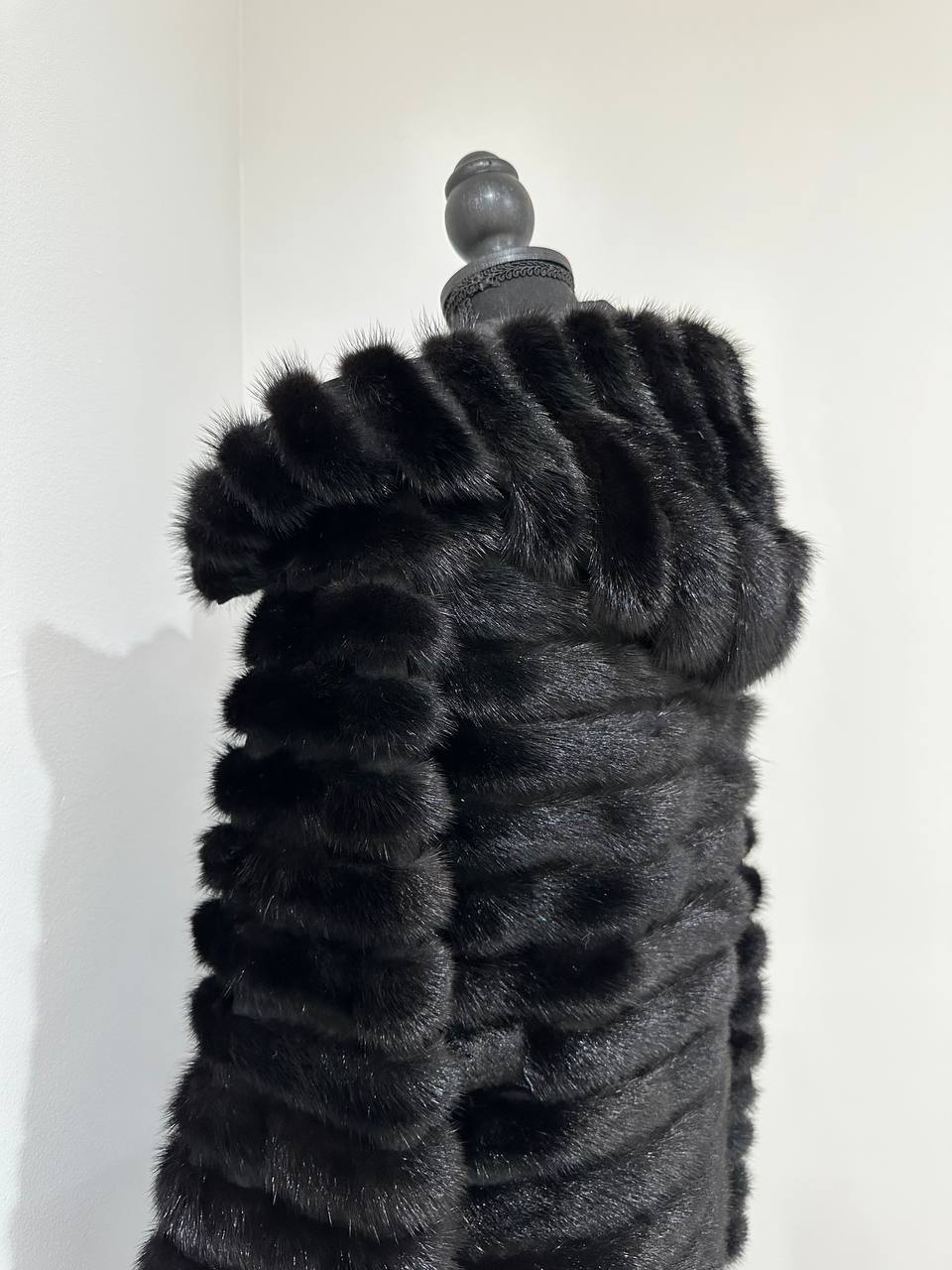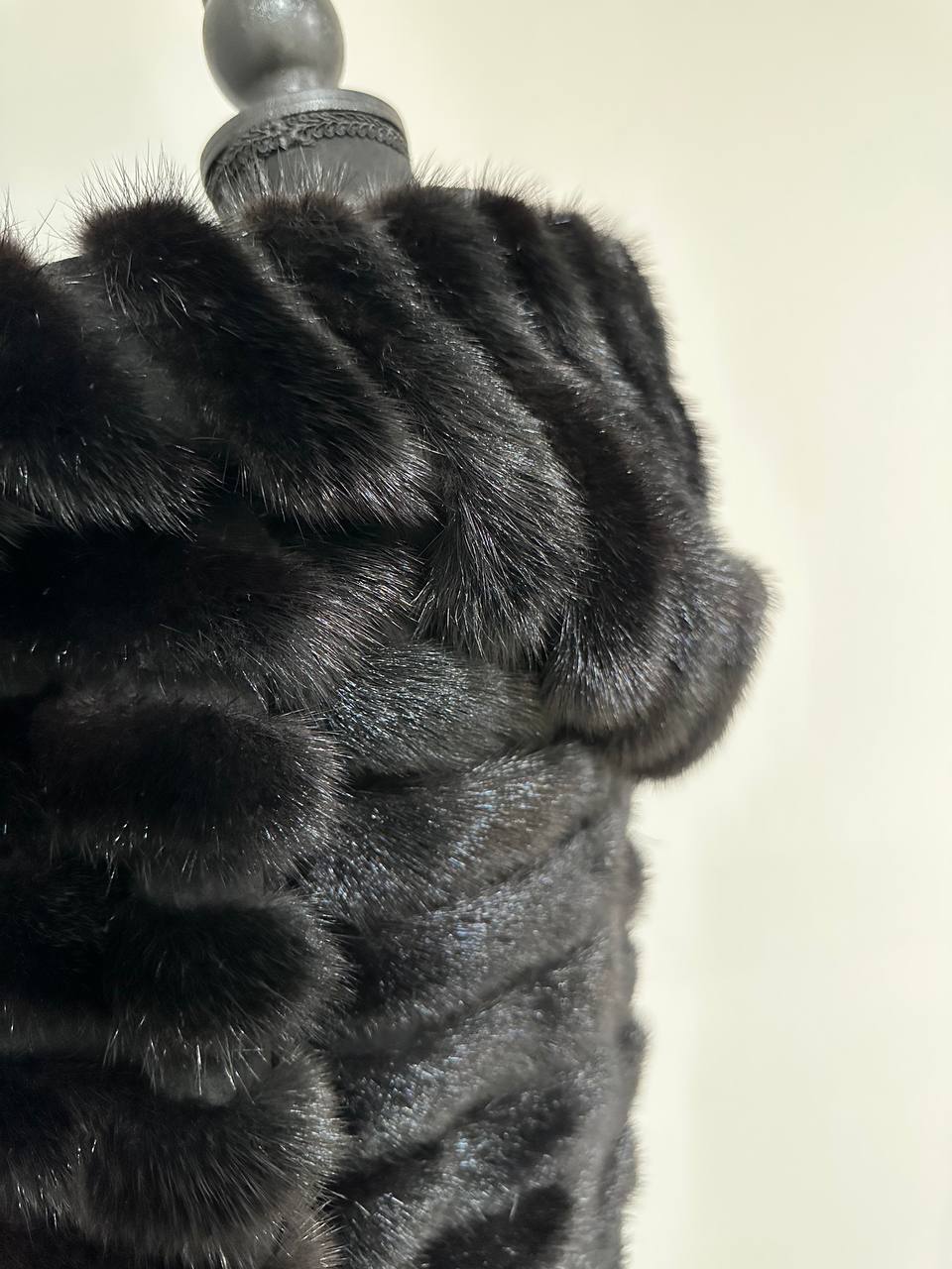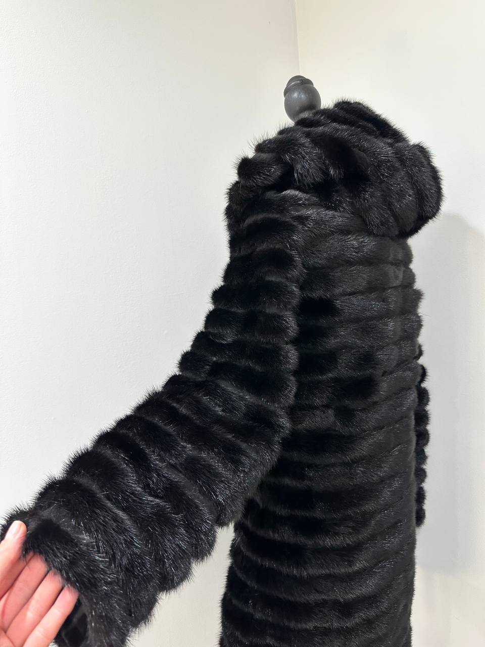 NEW REAL MINK FUR coat size 2XS 1201119 HORIZONTAL long sleeve jacket BLACK women