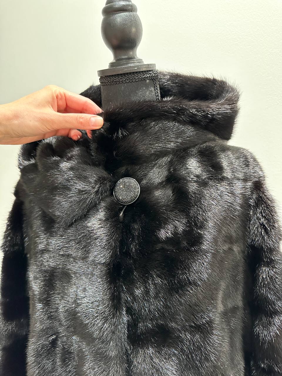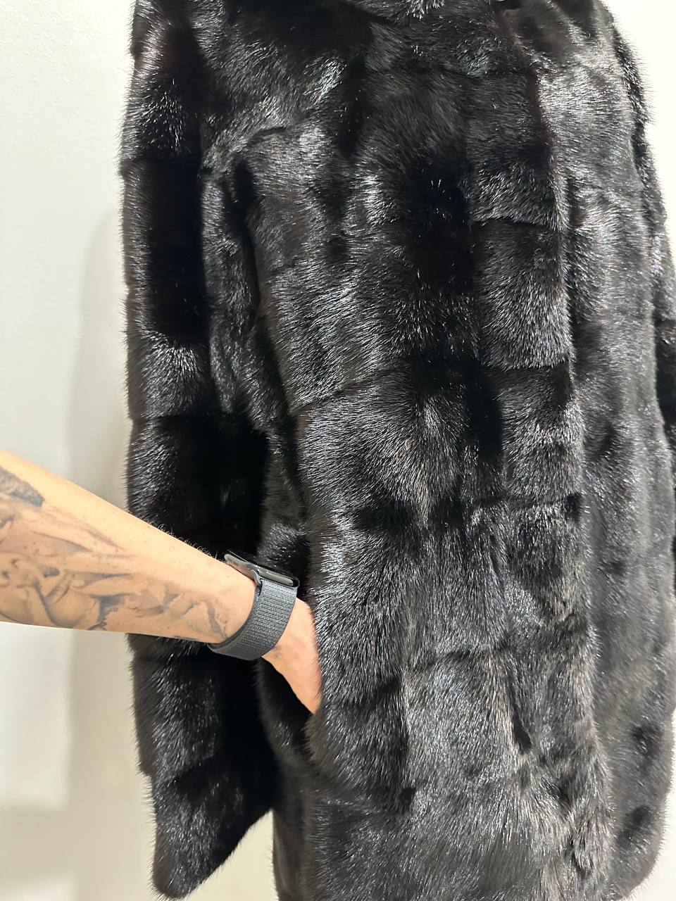 NEW REAL MINK FUR coat size L LARGE 1201116 HORIZONTAL long sleeve jacket BLACK