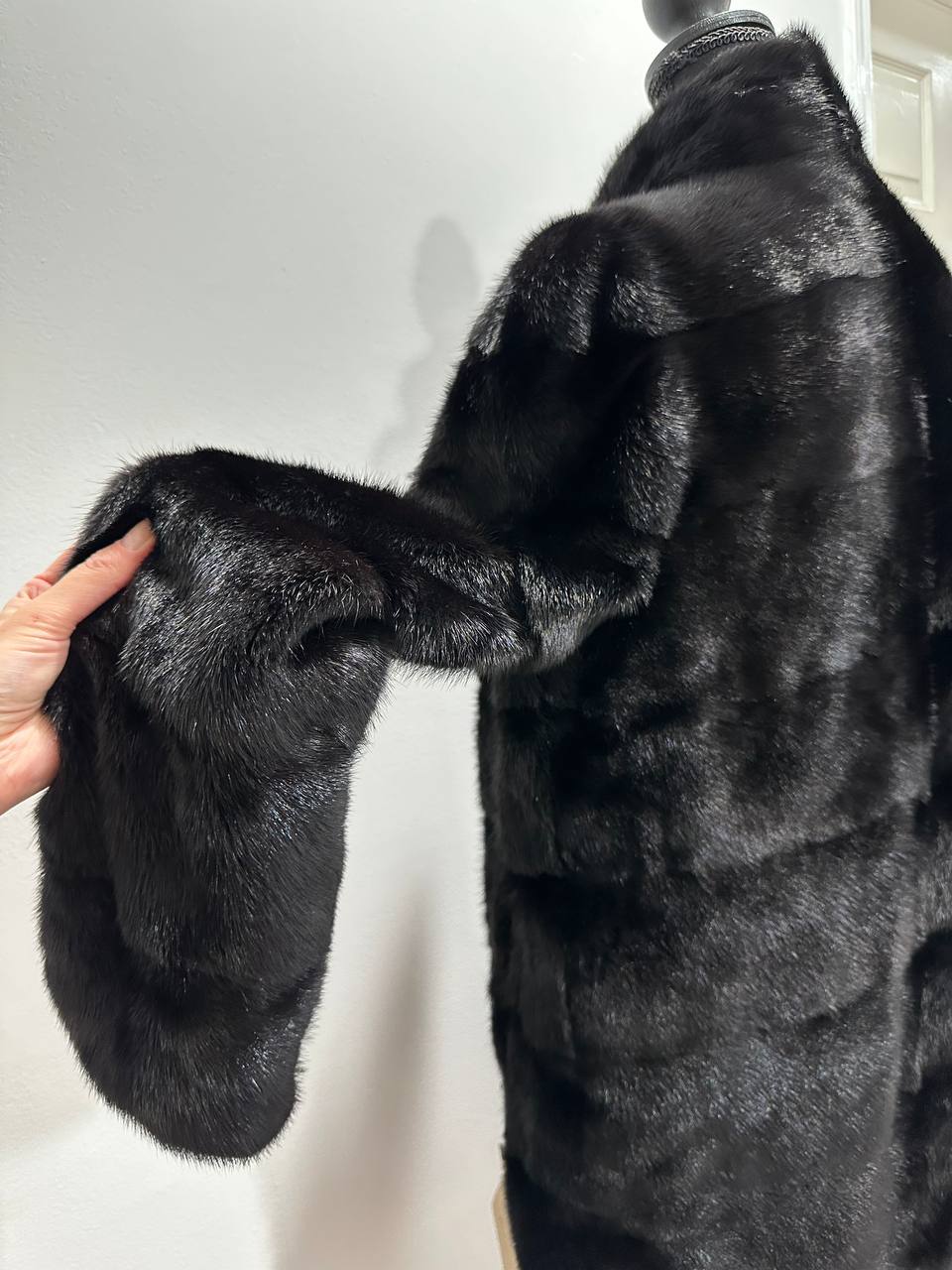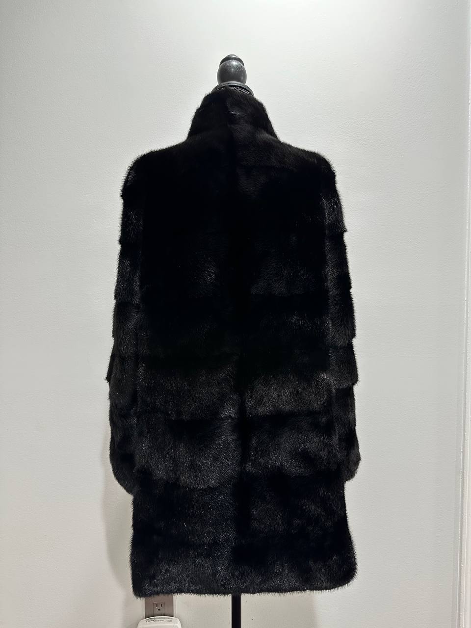 NEW REAL MINK FUR coat size M 1201121 HORIZONTAL long sleeve jacket BLACK