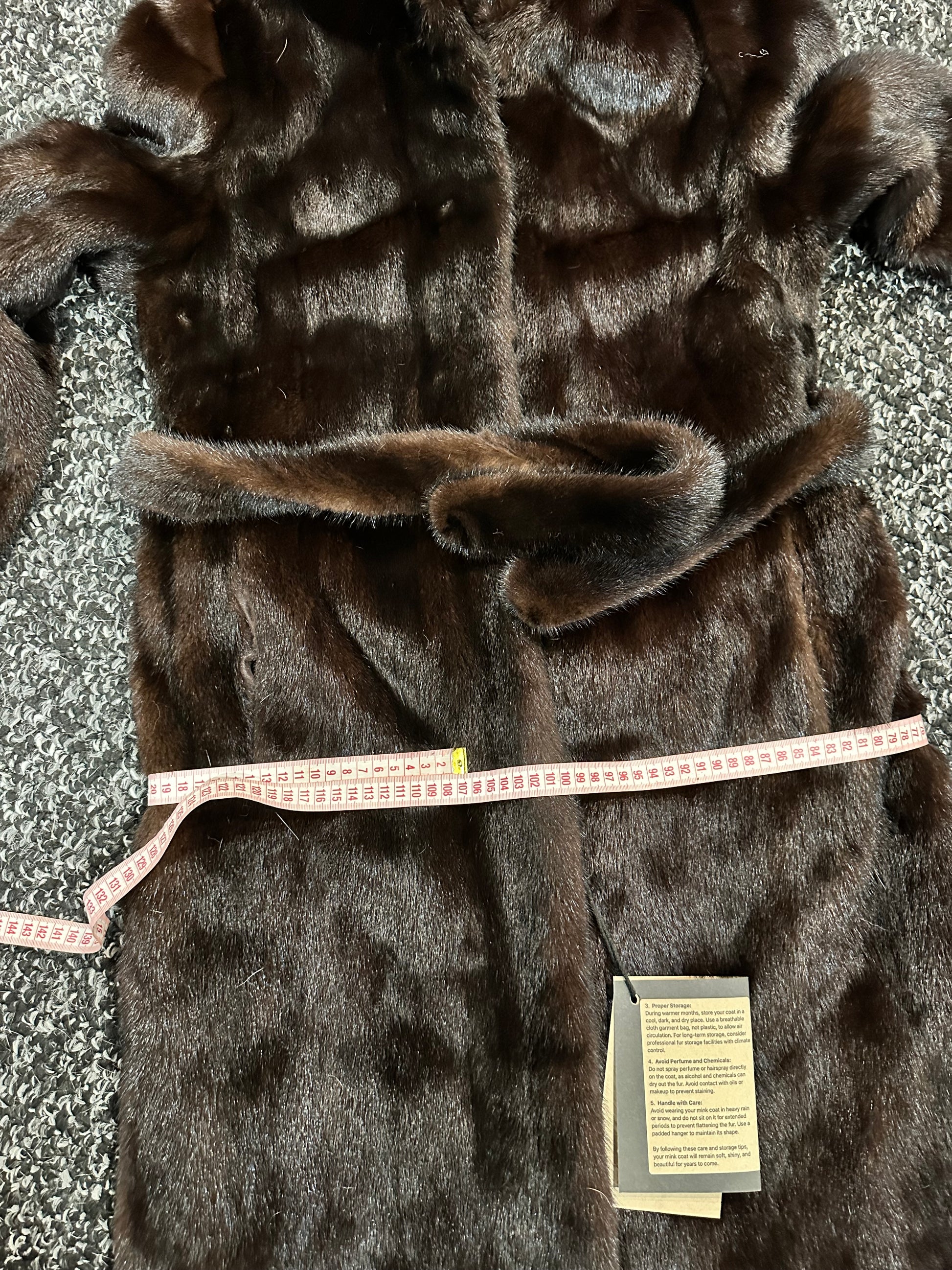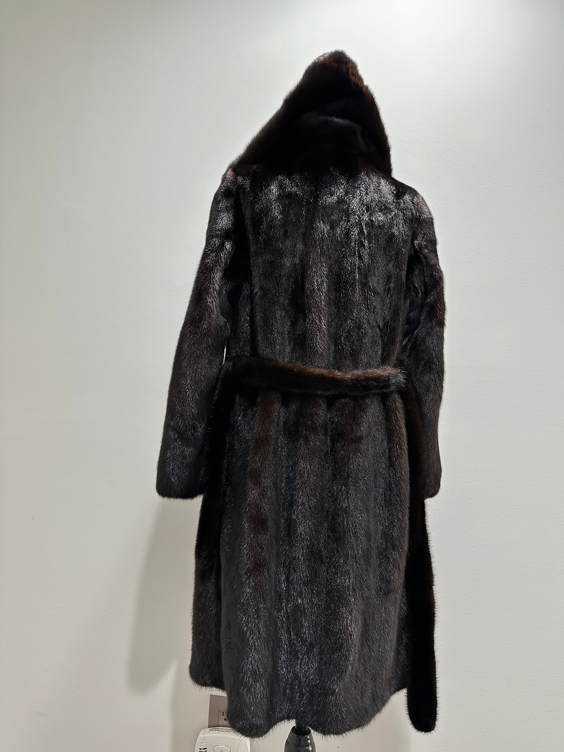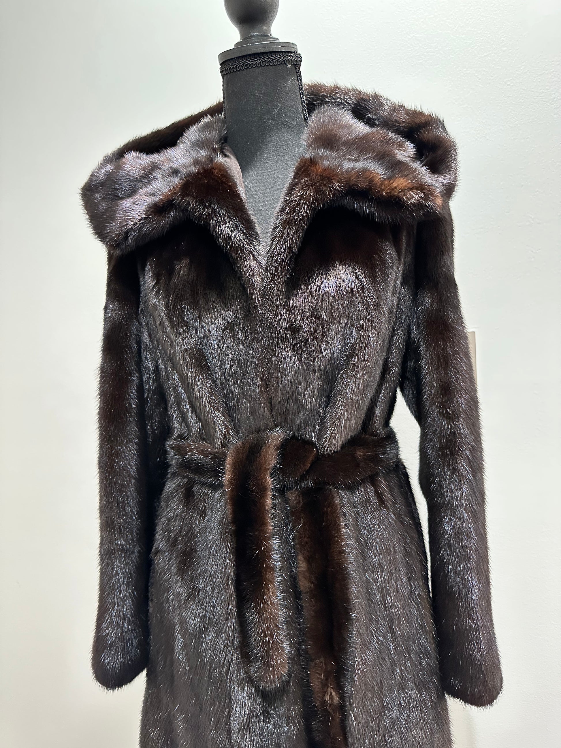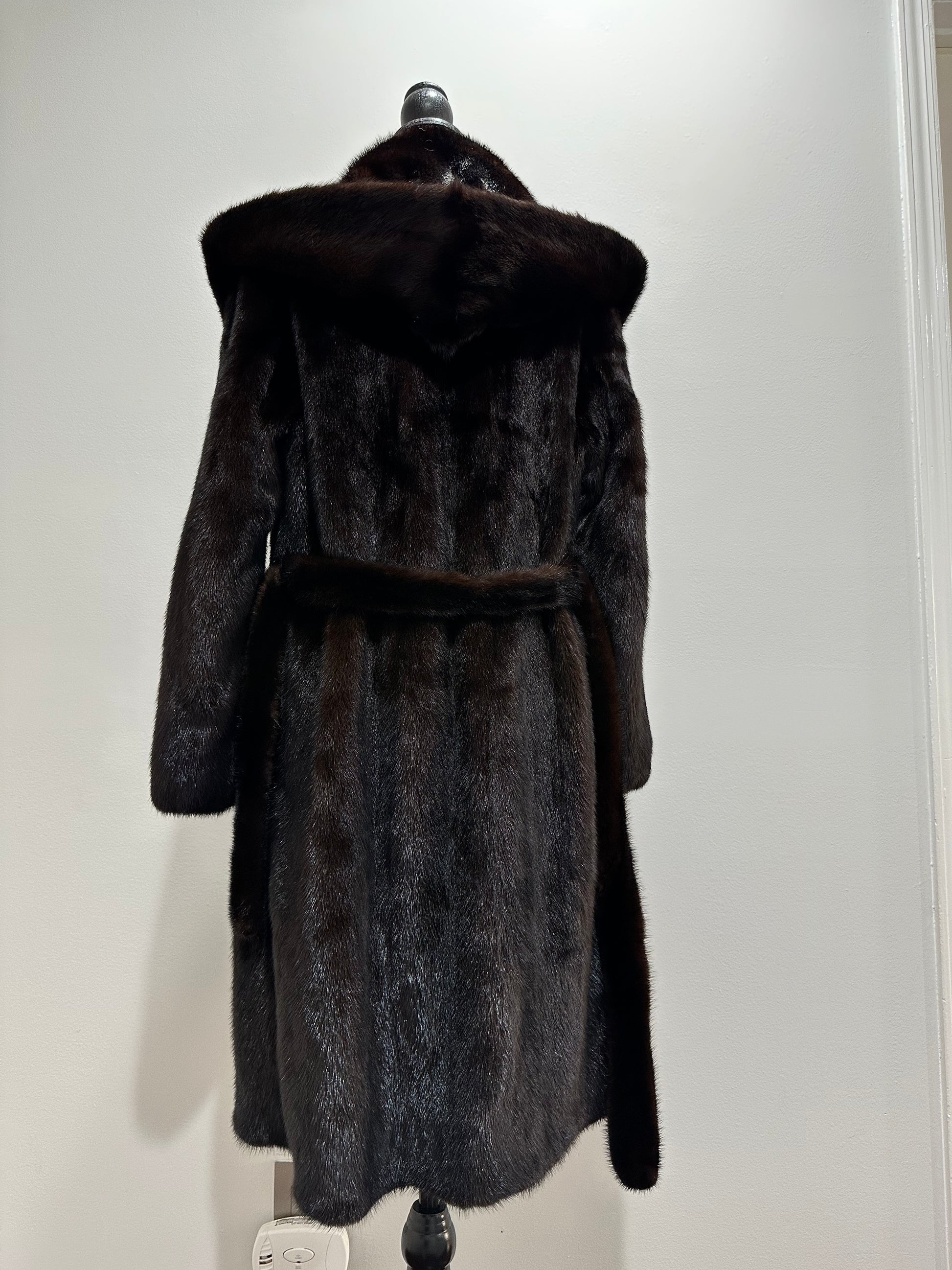 NEW REAL MINK FUR coat size M BELTED HOODED 1201104 long sleeve jacket BROWN